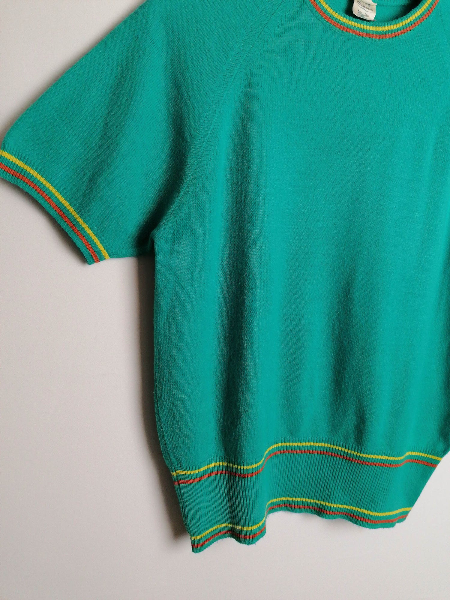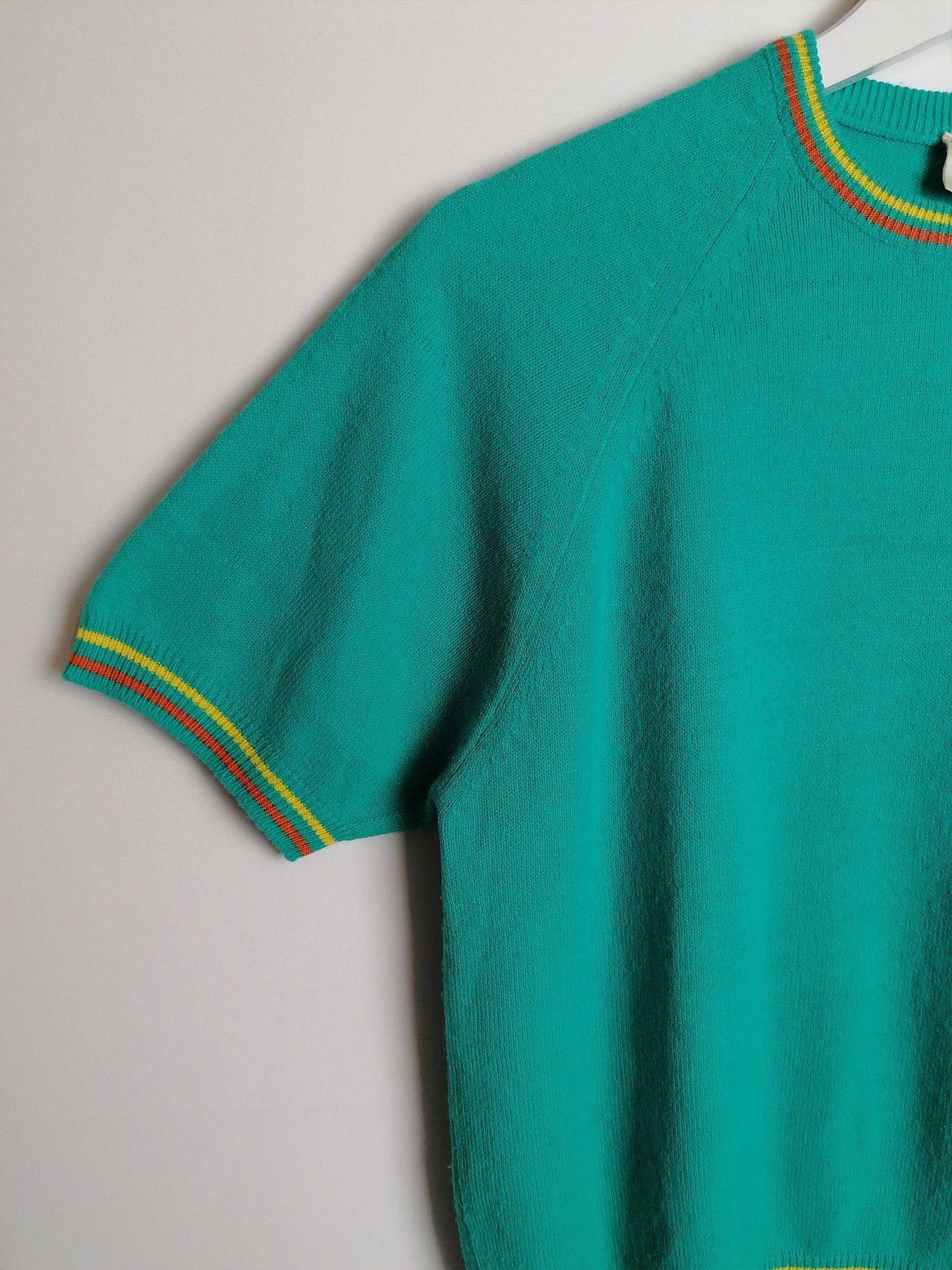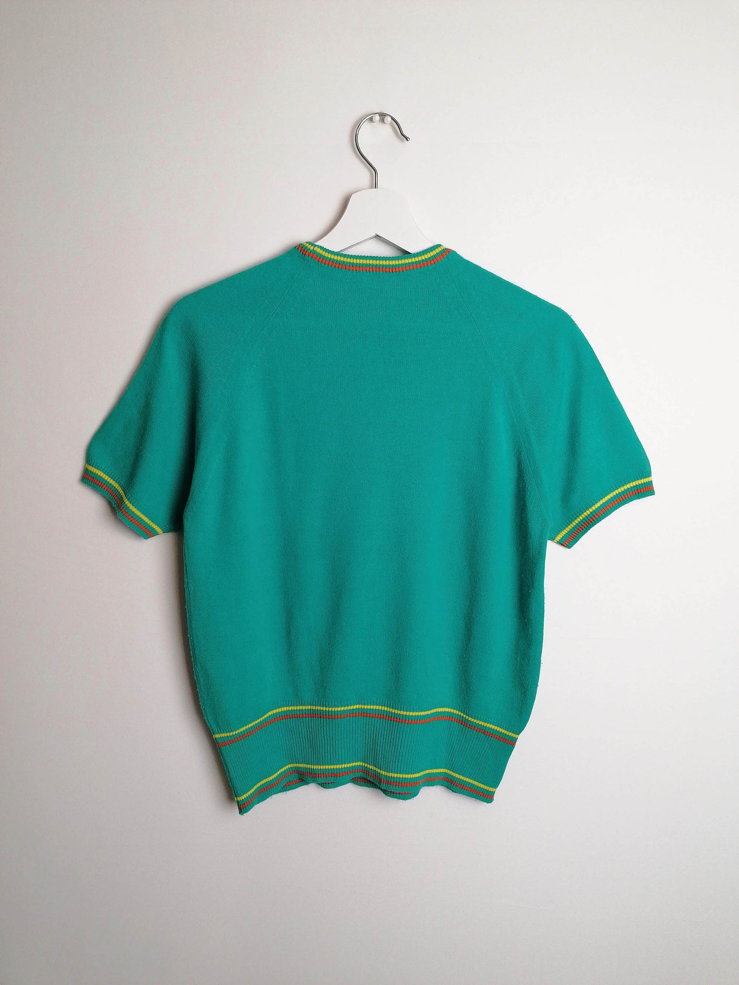 70's FILLEUR Soft Knit Top Retro Turquoise Green - size S-M