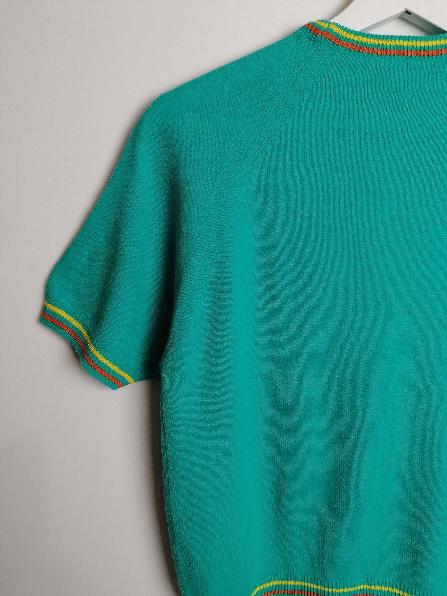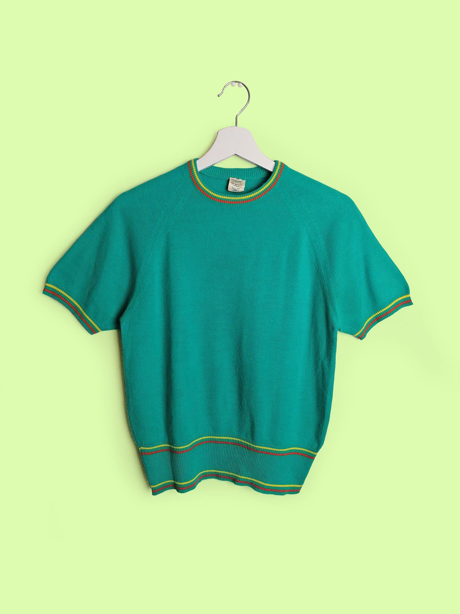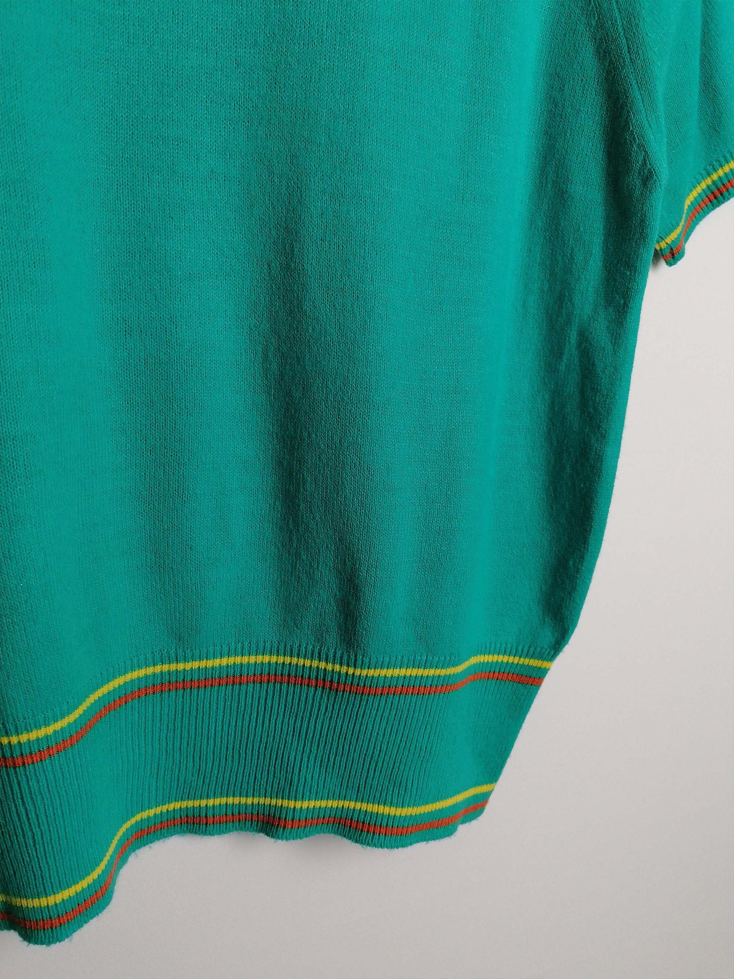 70's FILLEUR Soft Knit Top Retro Turquoise Green - size S-M