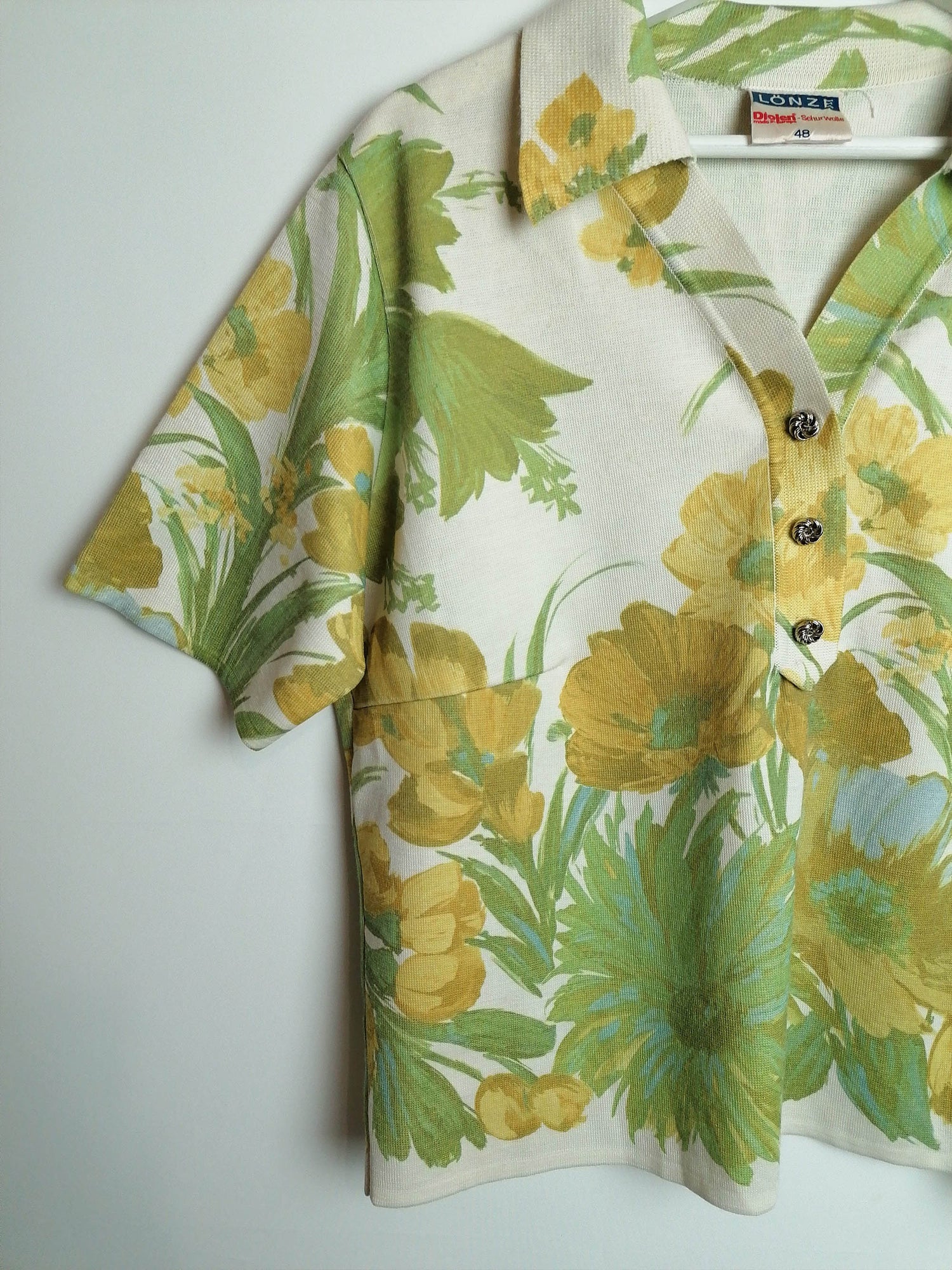 Exquisite vintage 70's soft knit top, polyester and wool blend. Brand Lonze.