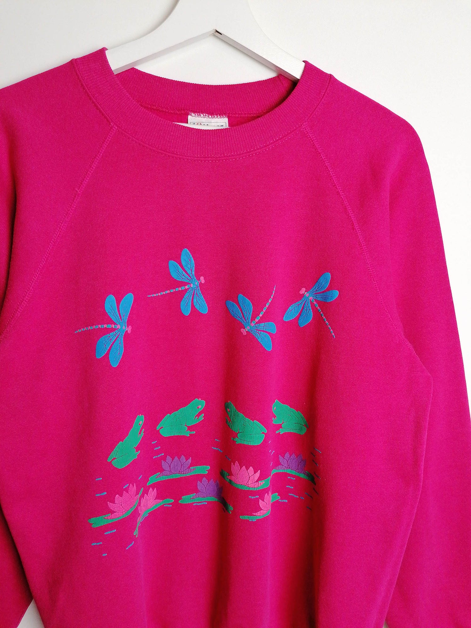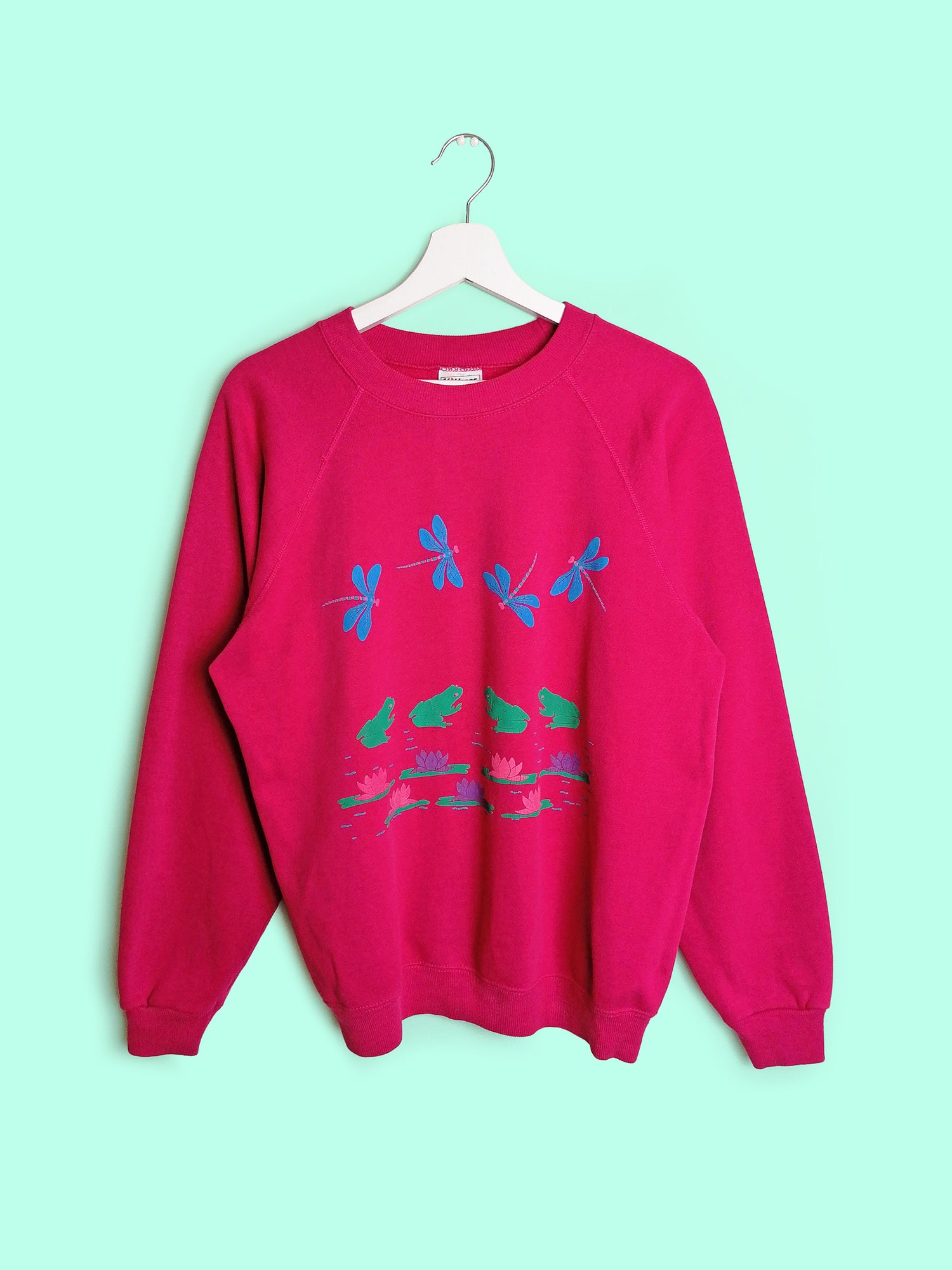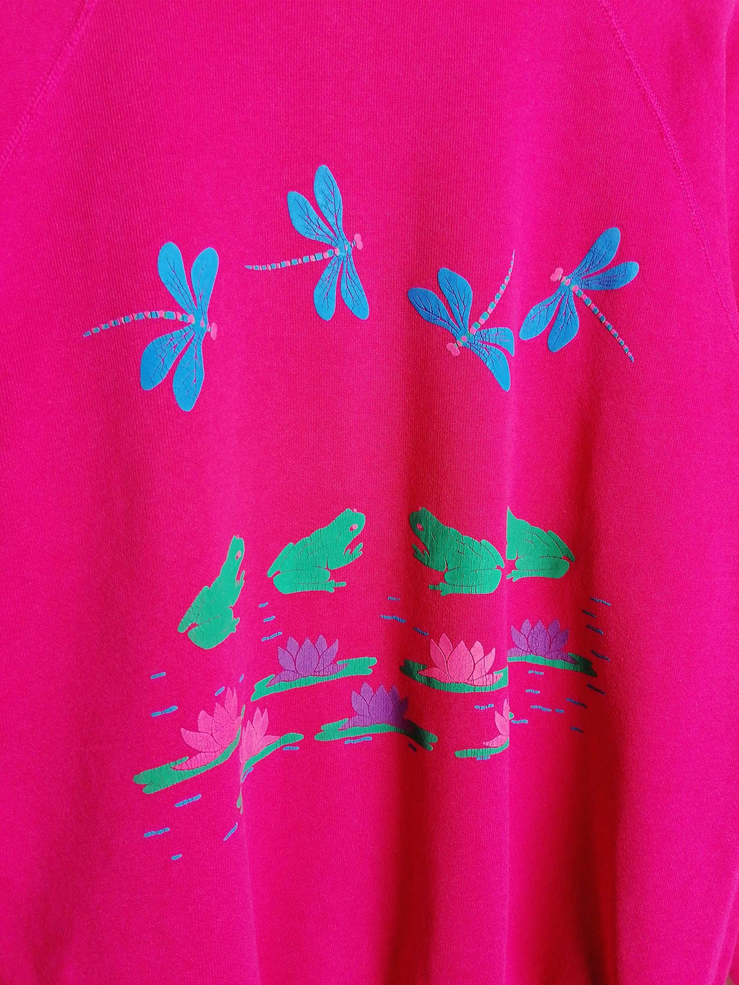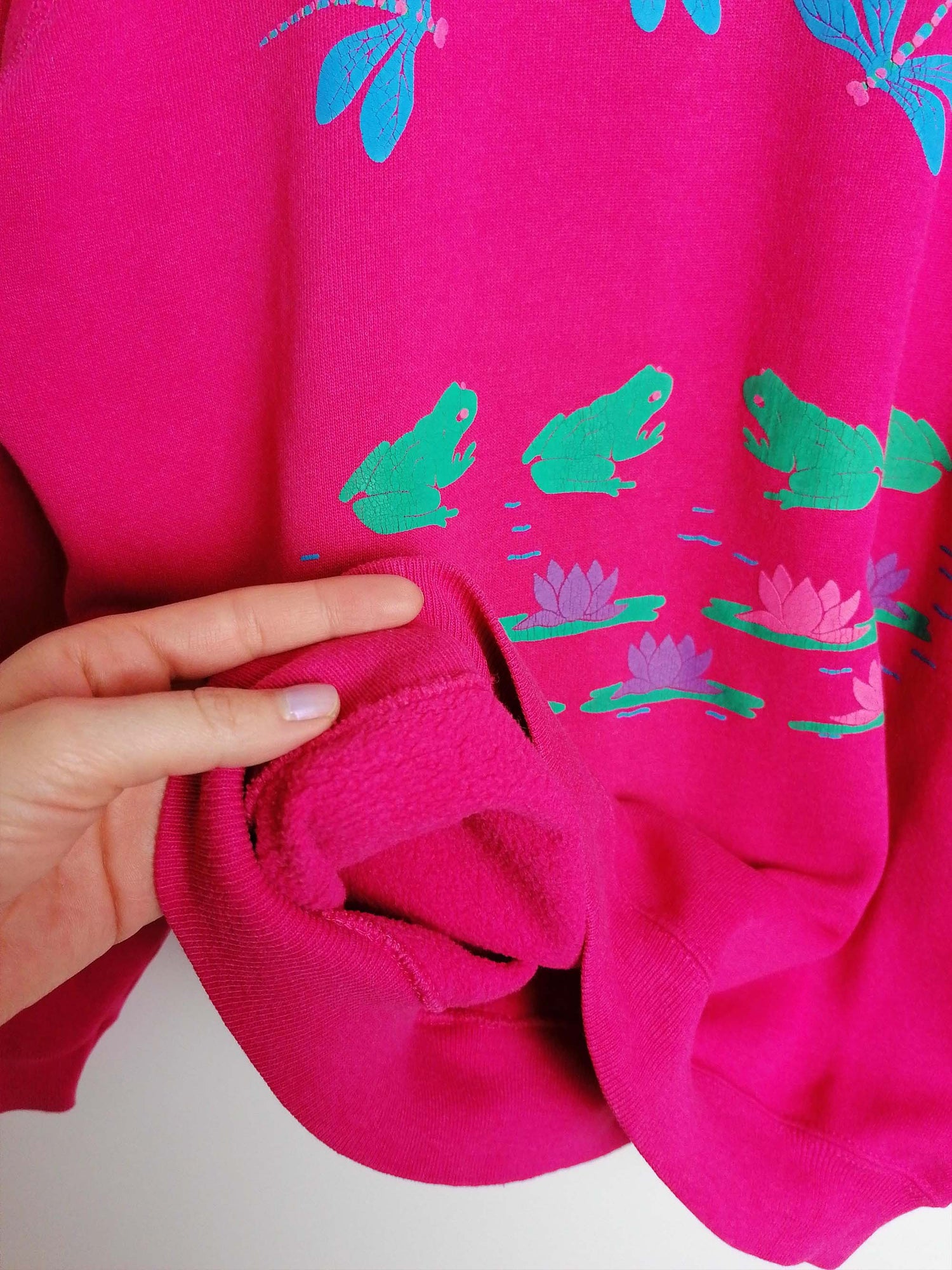 Beautiful 80's 90's Hanes lightweight sweatshirt, cute frogs puff-print. Made in USA.