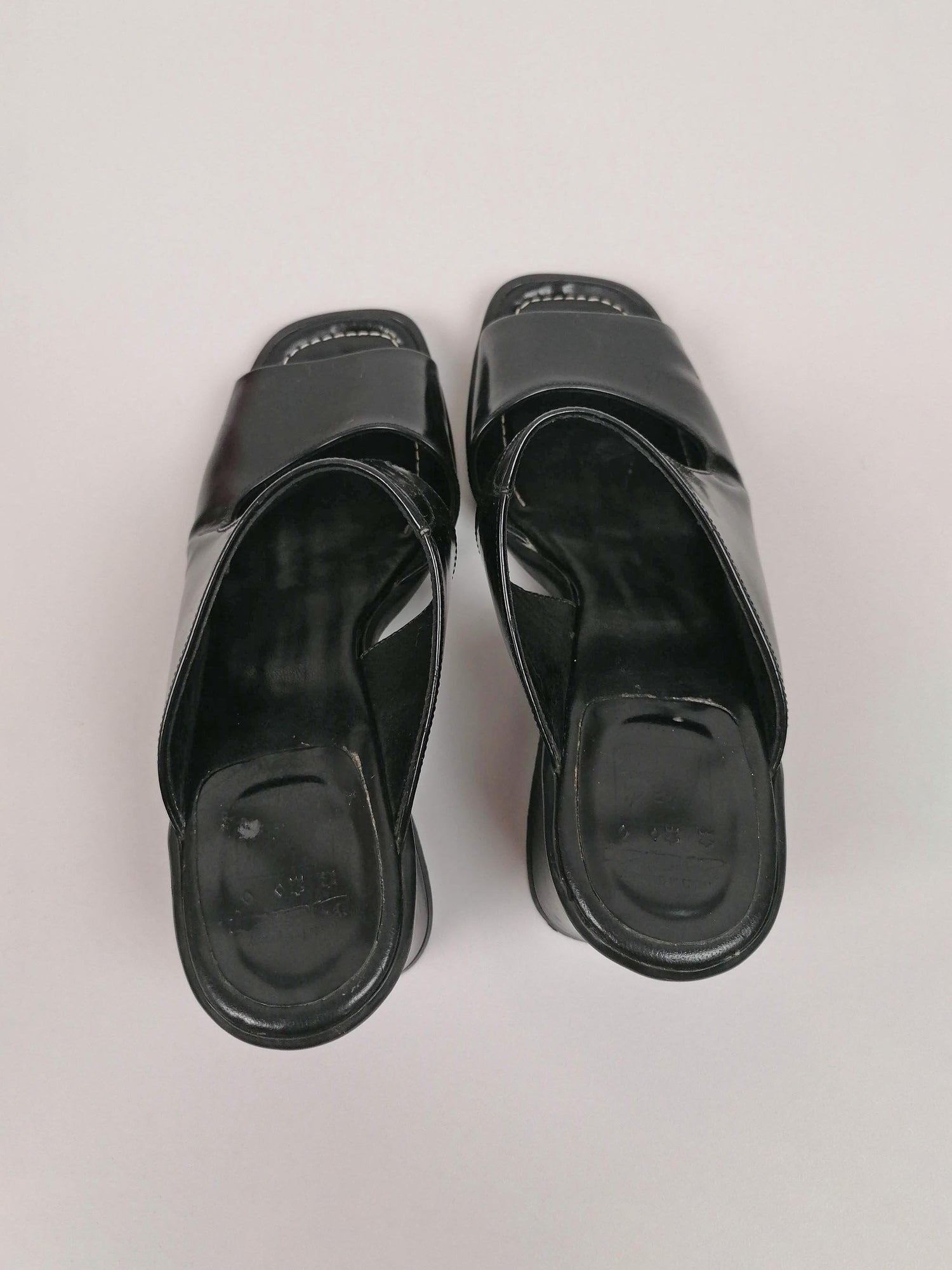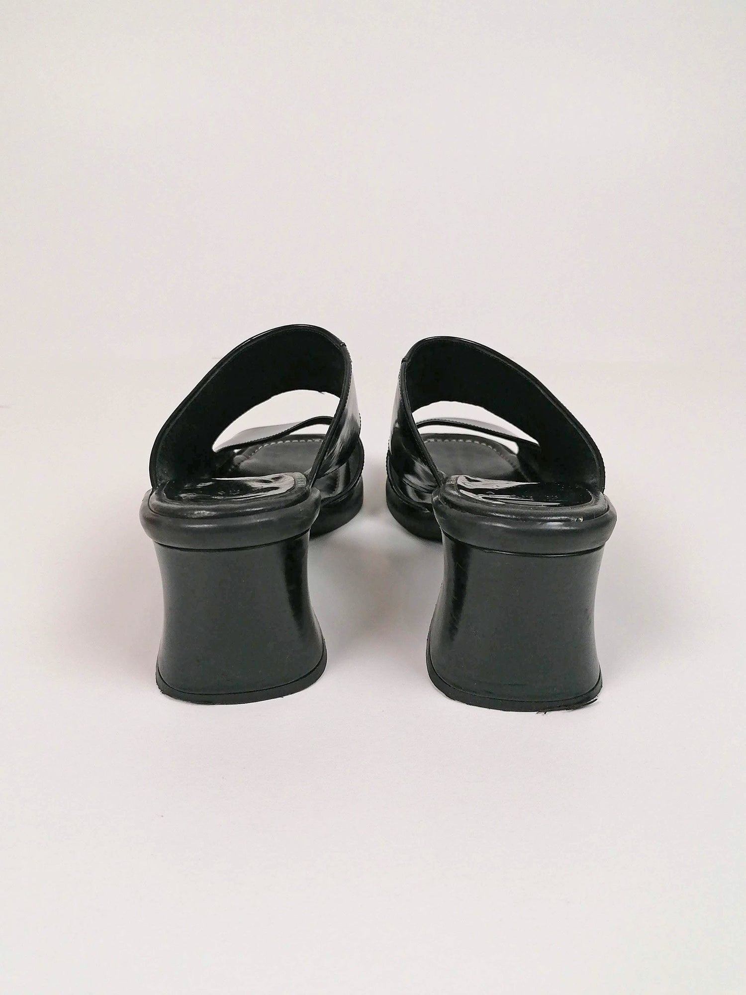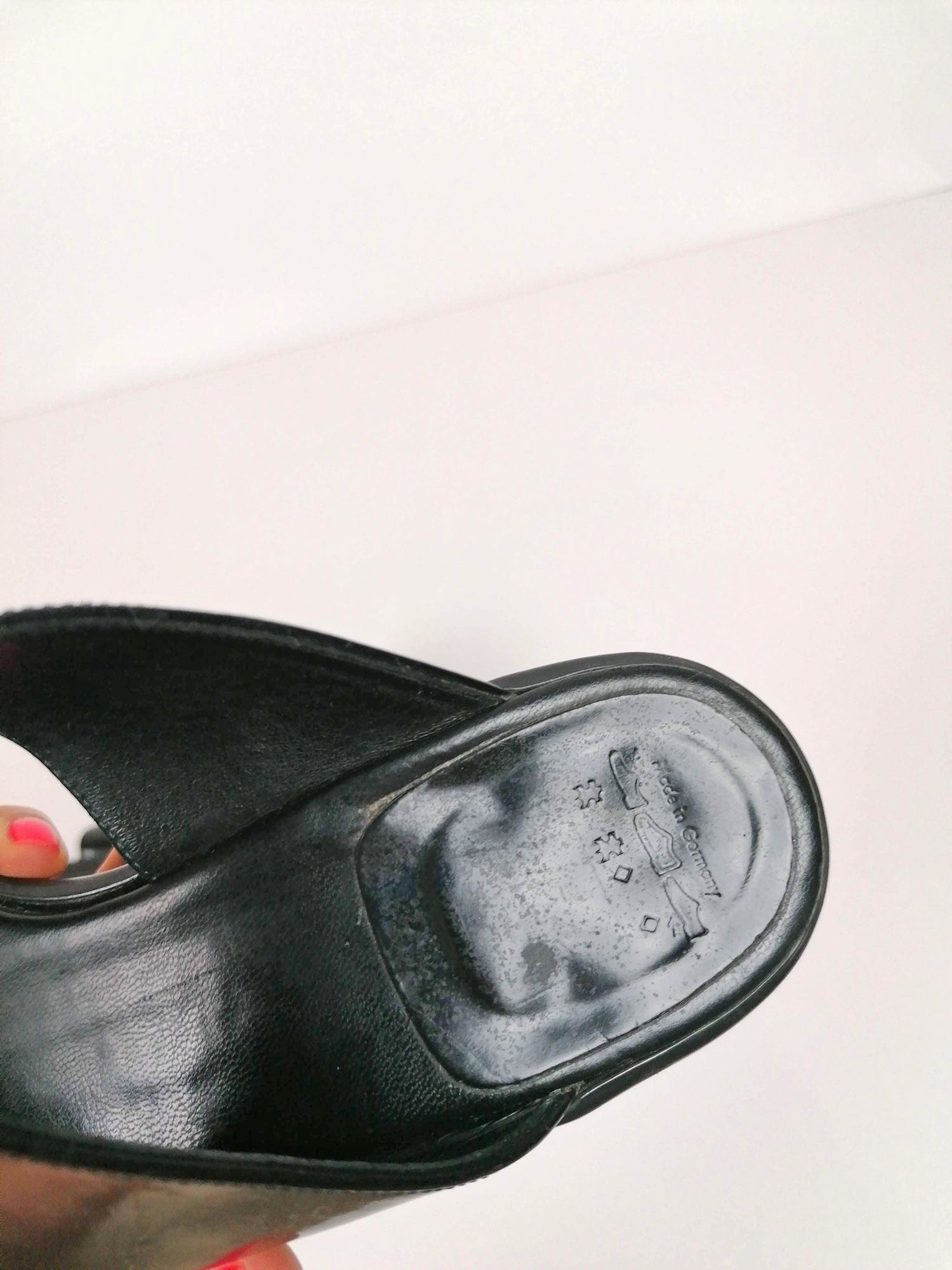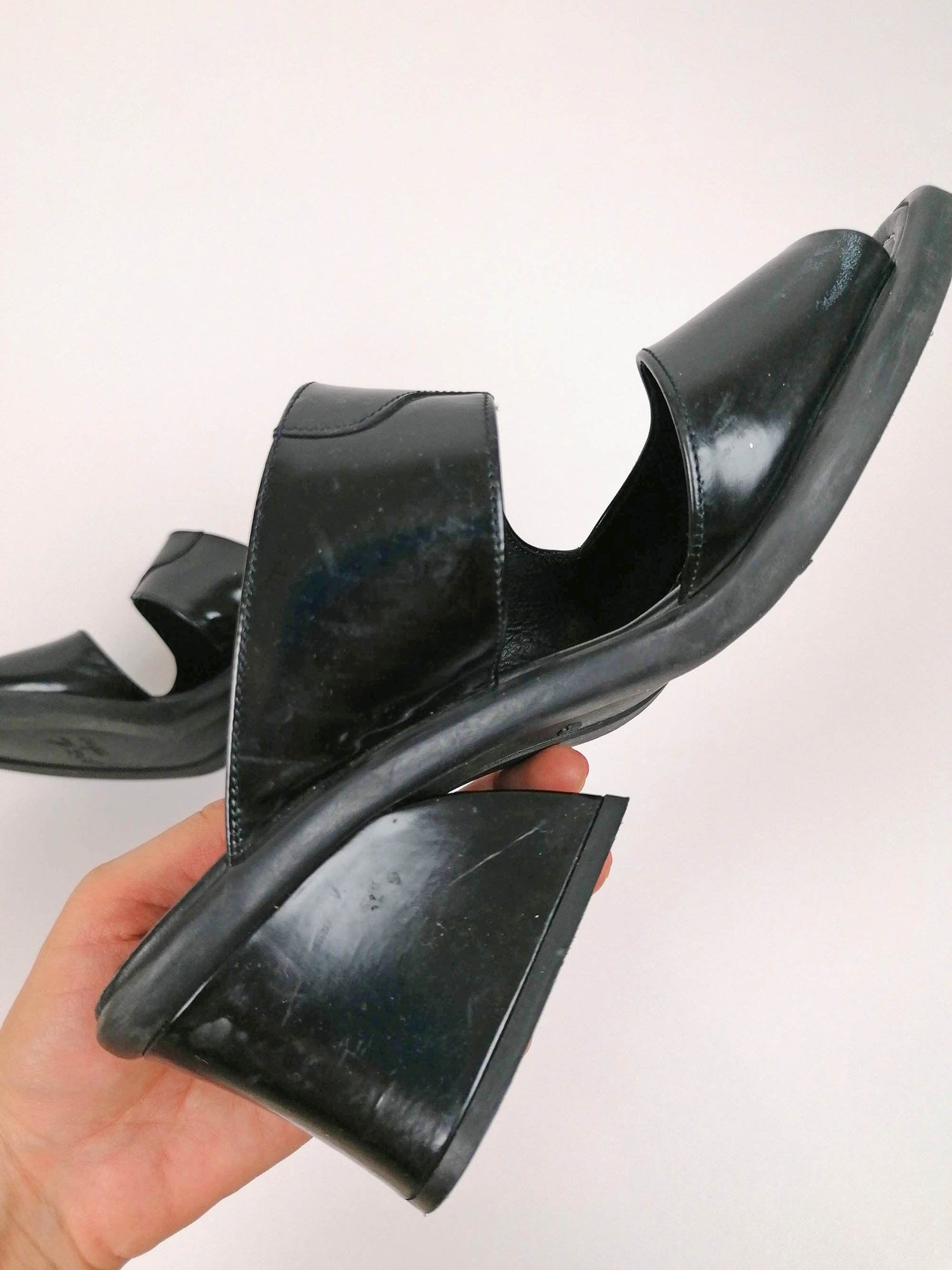 80's 90's PIU di SERVAS Laquer Mules Block Heel - size EU 37.5 / uk 4.5