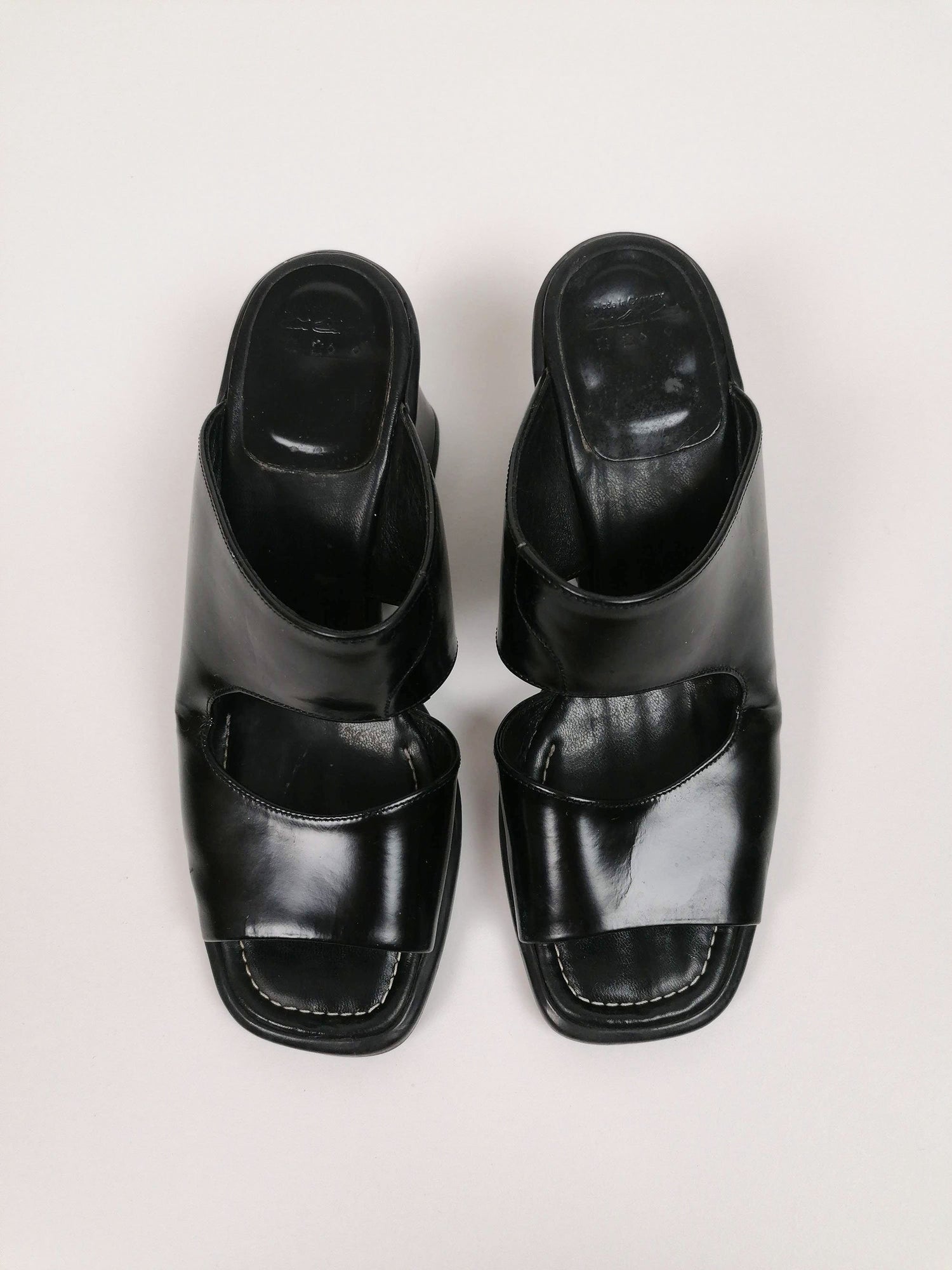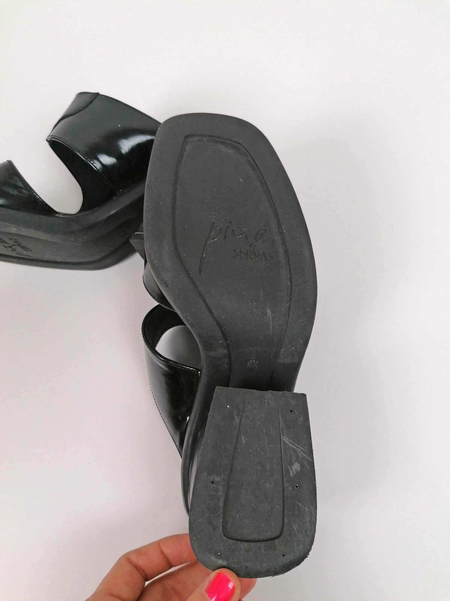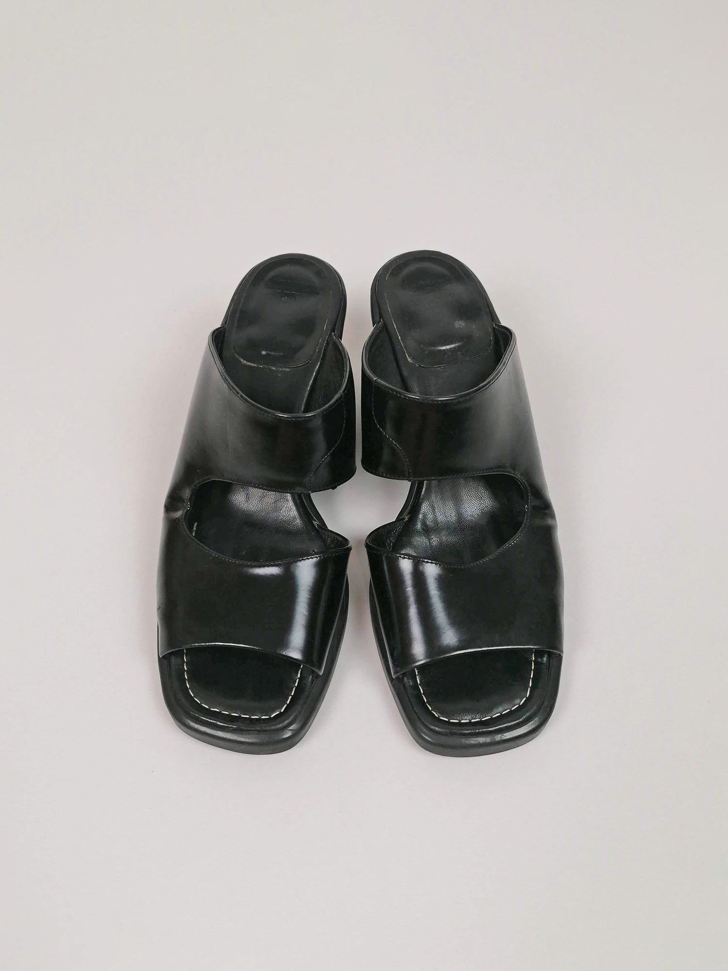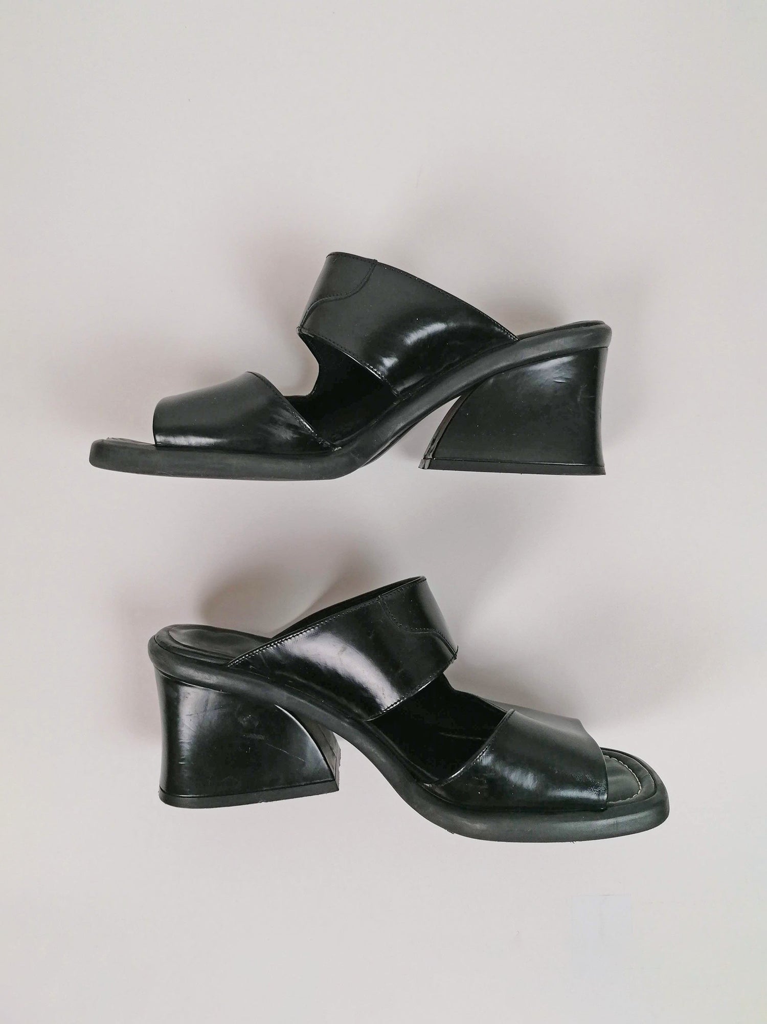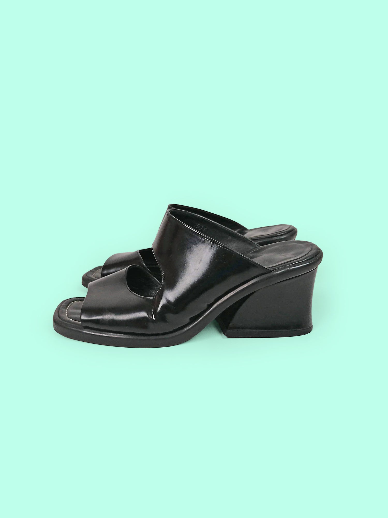 80's 90's PIU di SERVAS Laquer Mules Block Heel - size EU 37.5 / uk 4.5