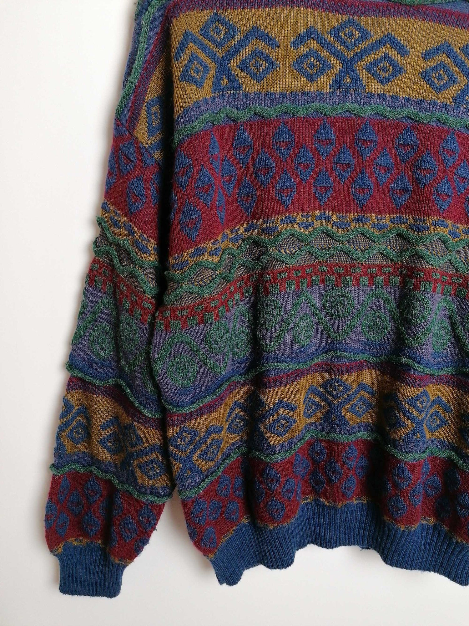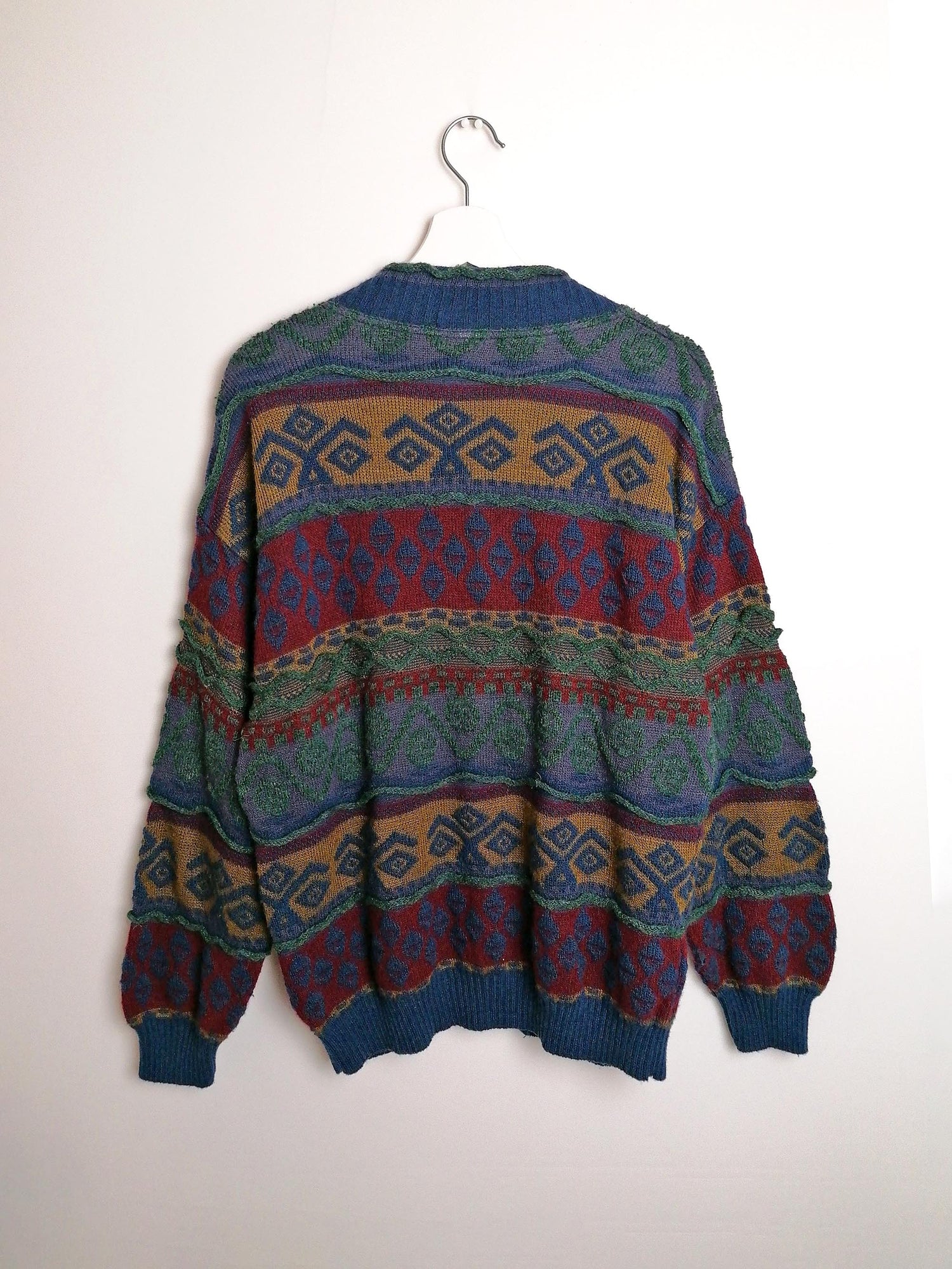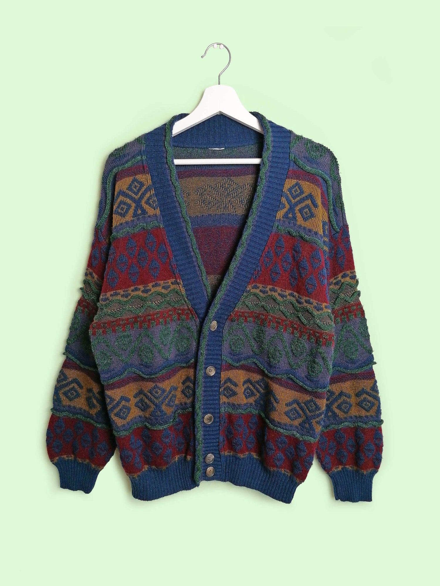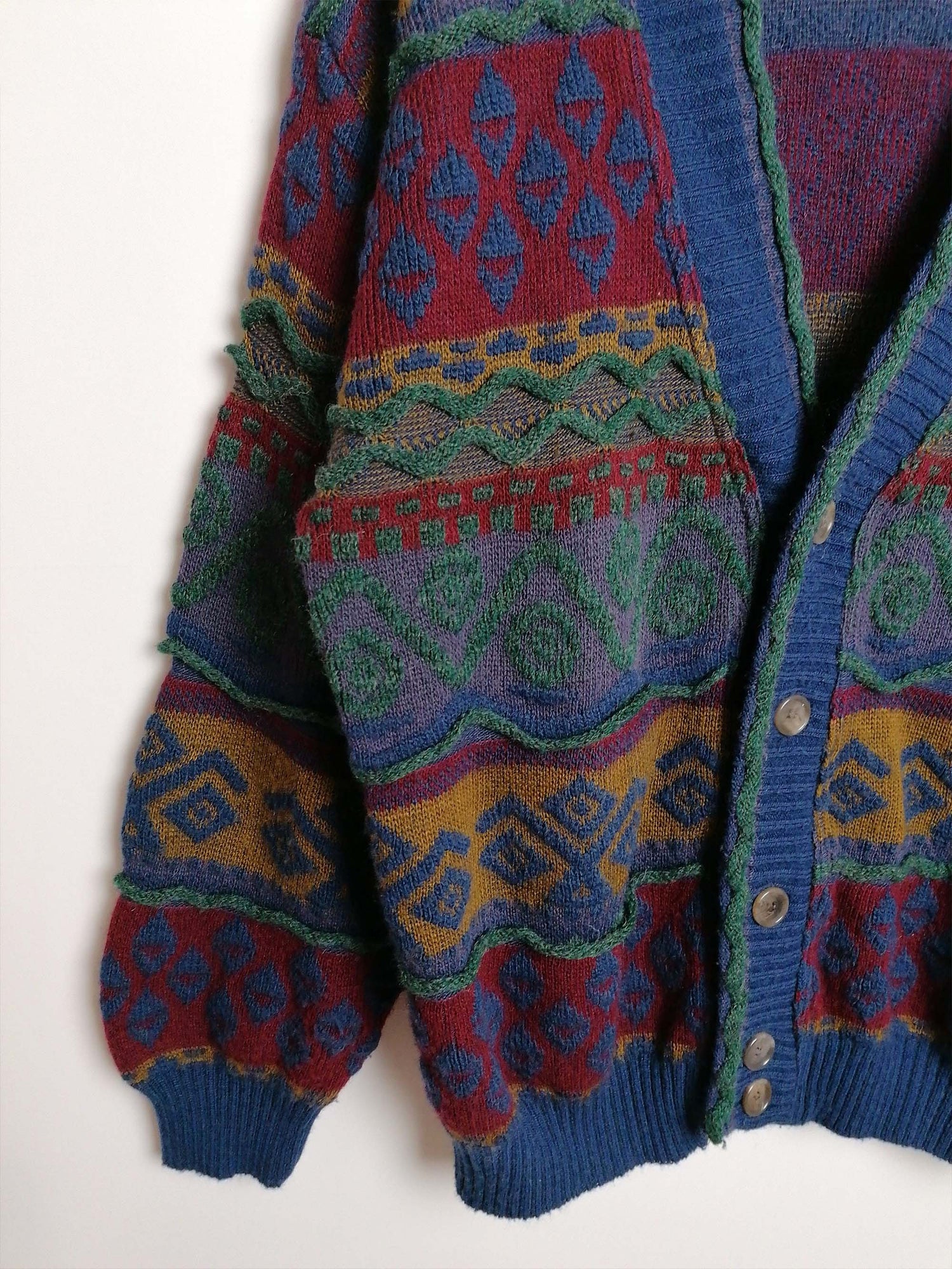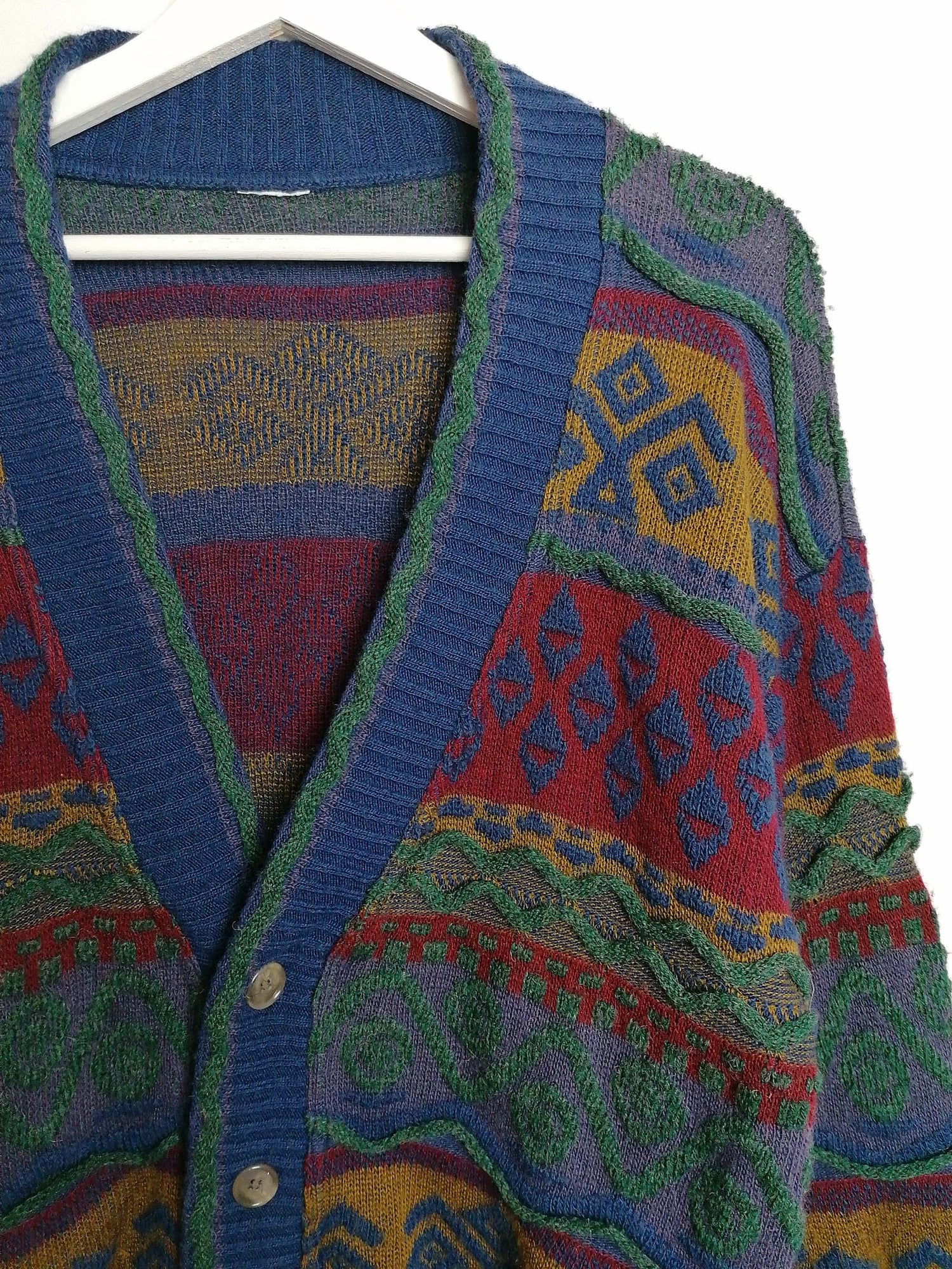 80's 90's Retro Pattern Unisex Grandpa Cardigan - size L / 48