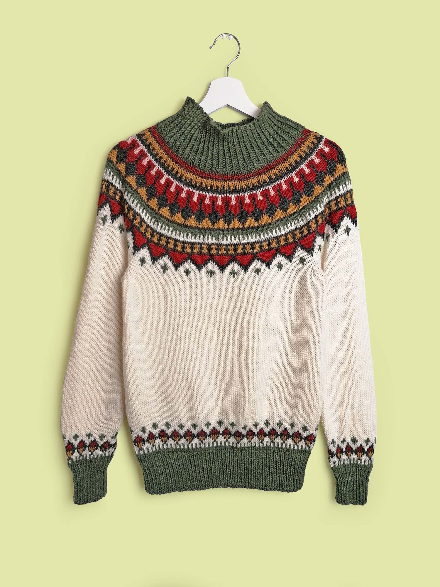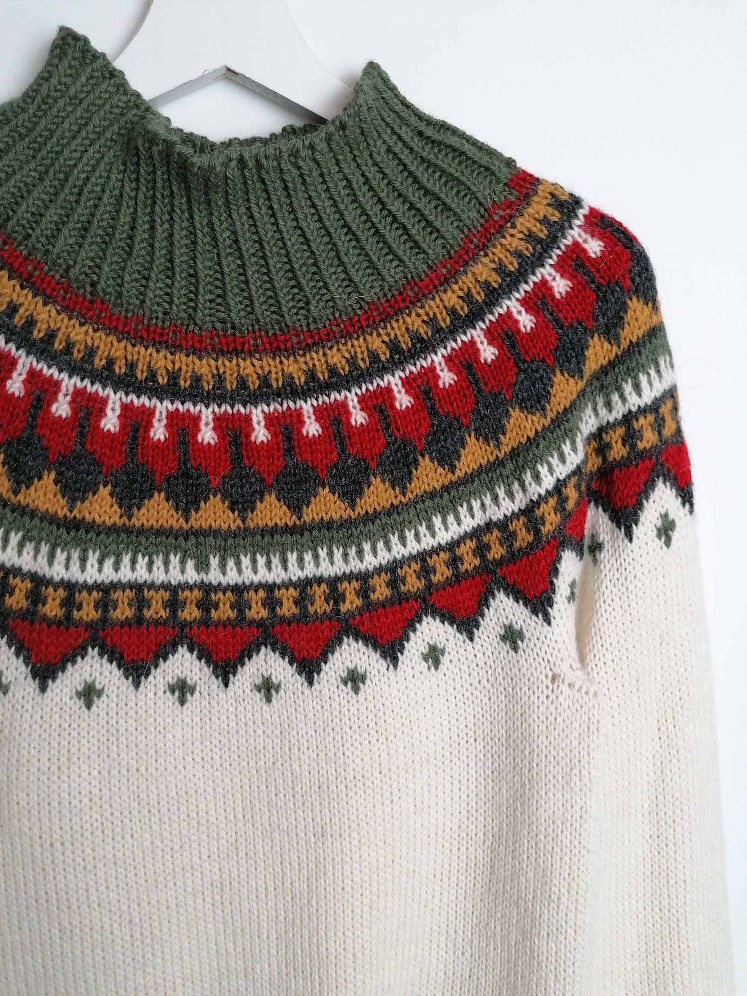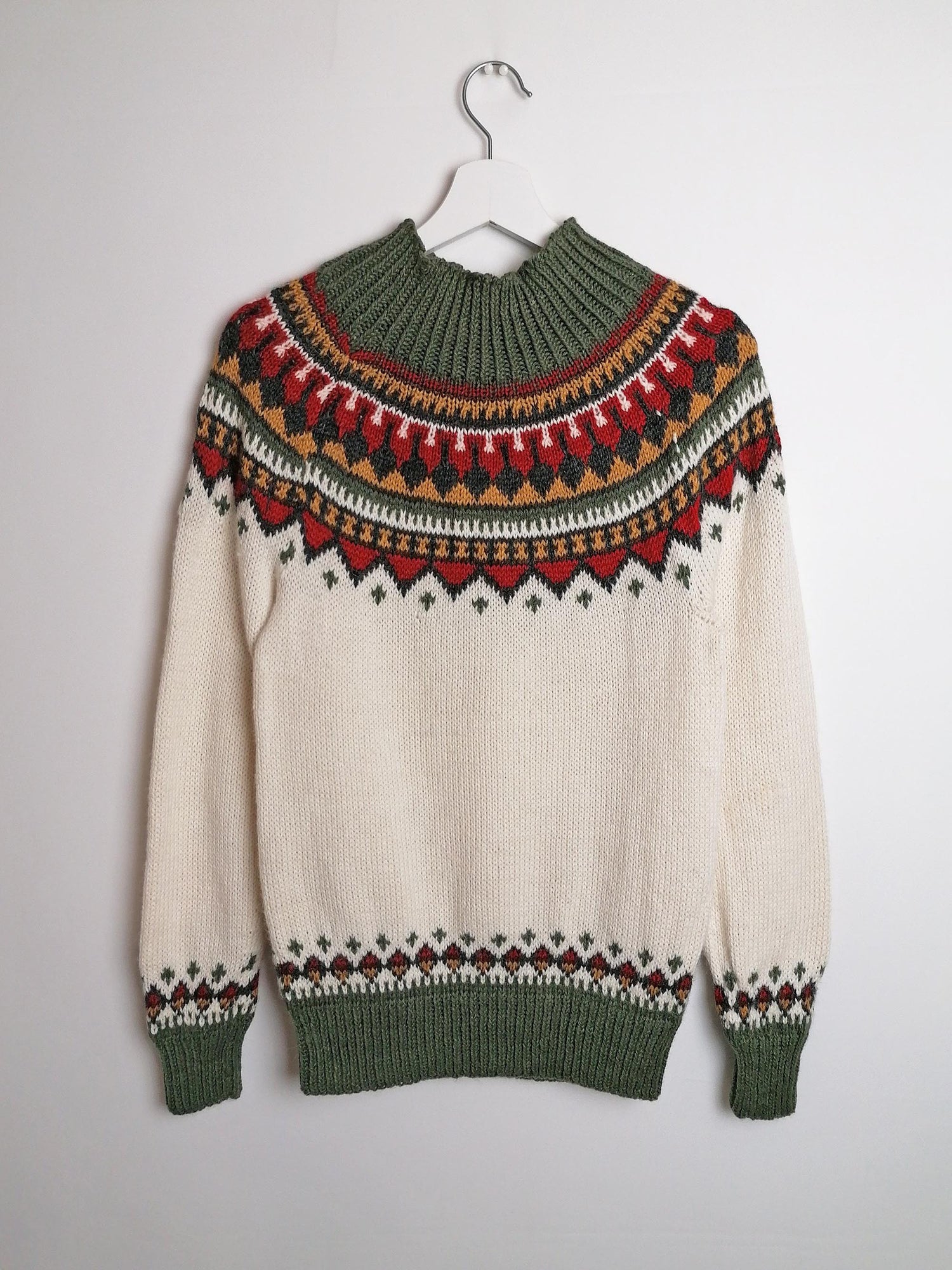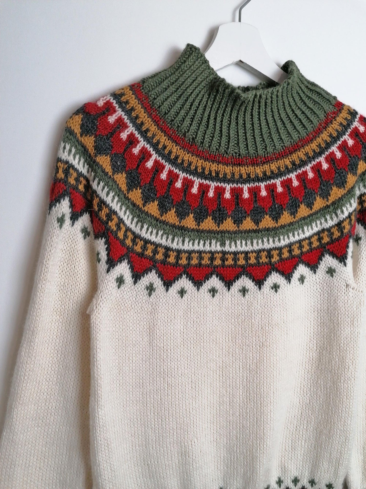 Vintage 80's Scandinavian wool sweater, high neck, handmade.