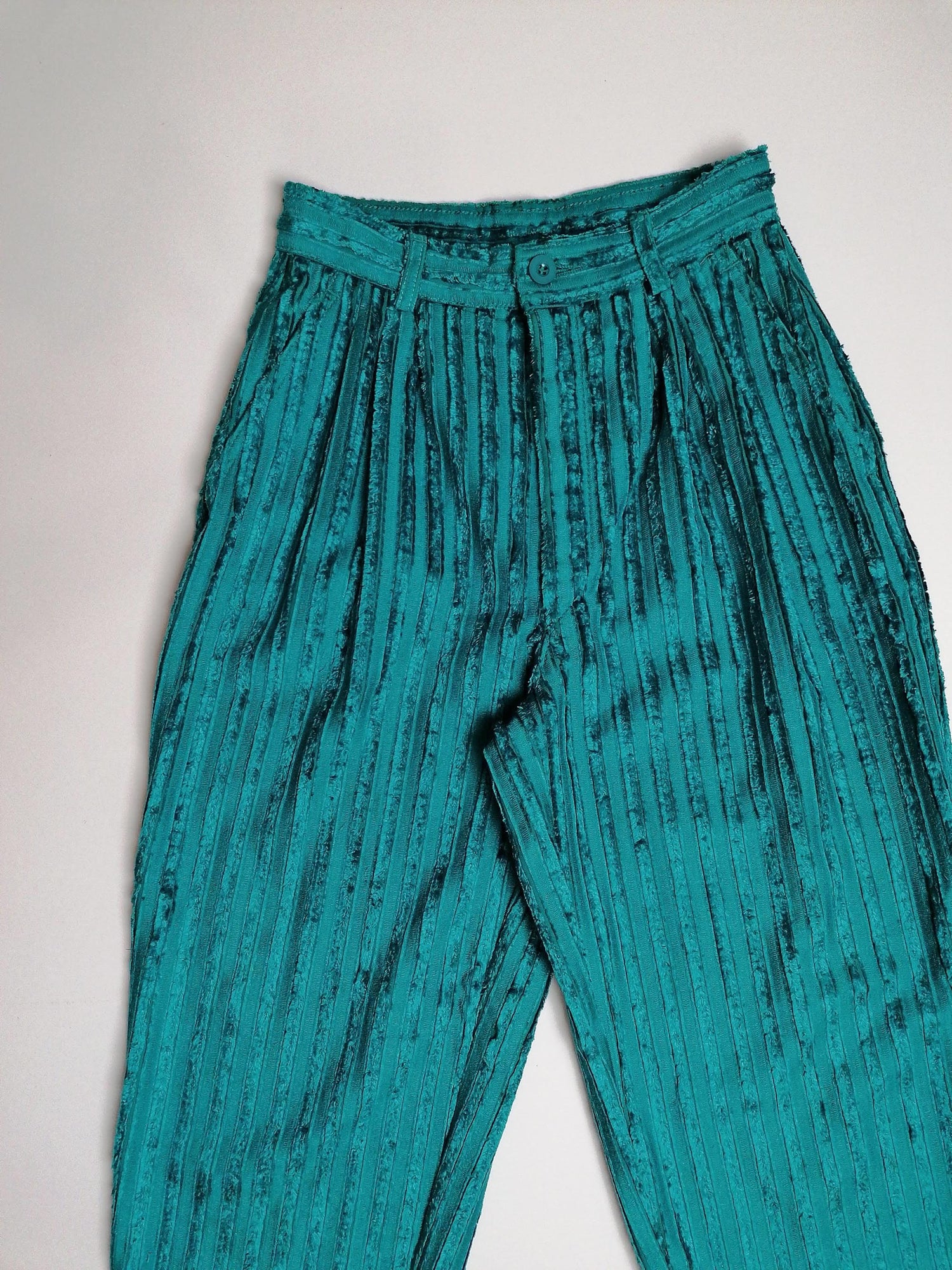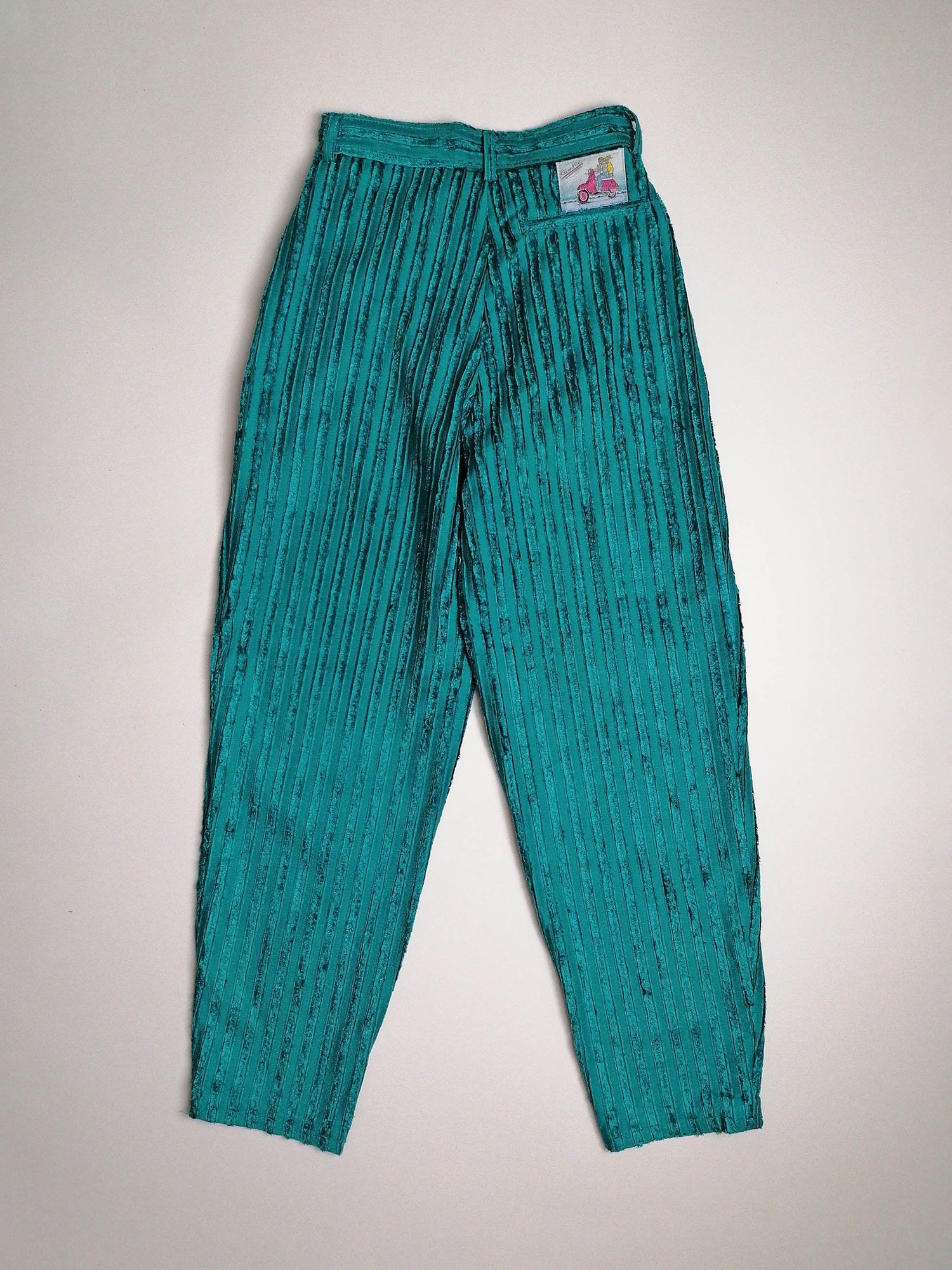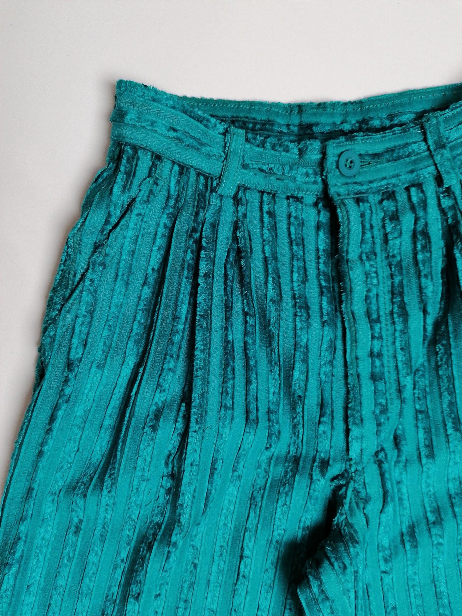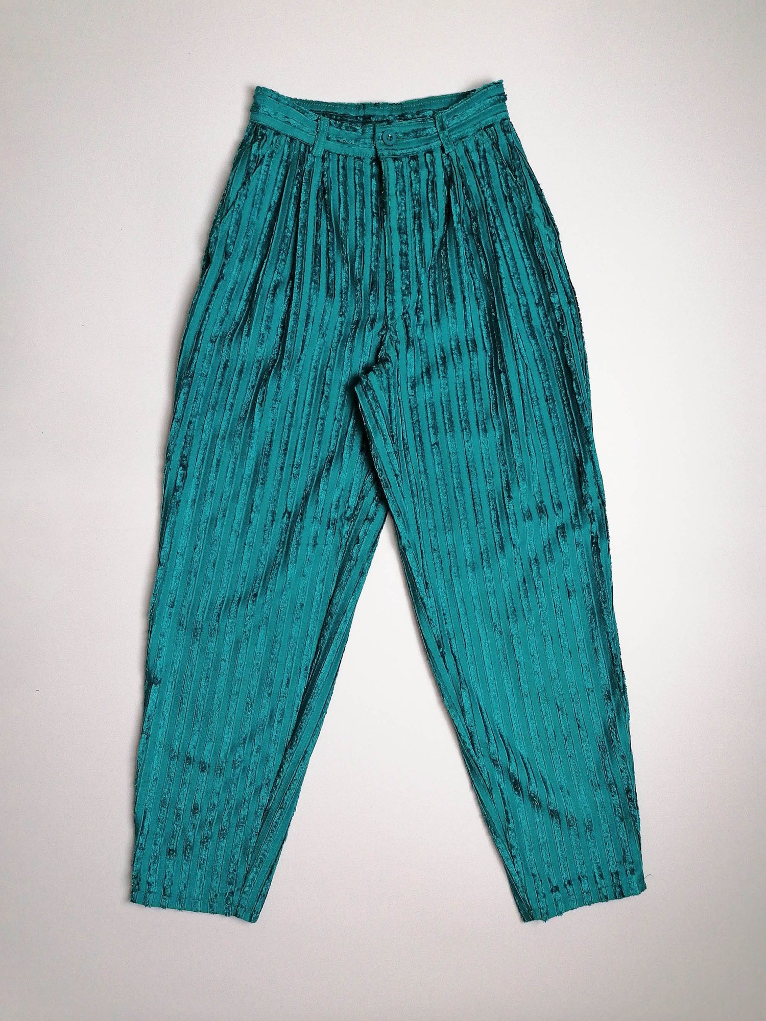 Gorgeous emerald green 80's high waist soft corduroy mom jeans, shiny, plush texture.