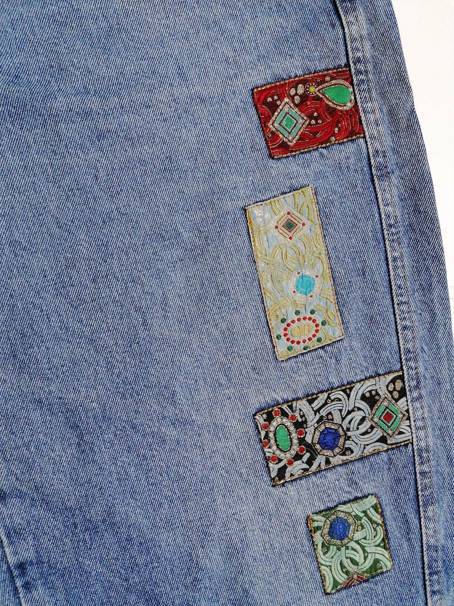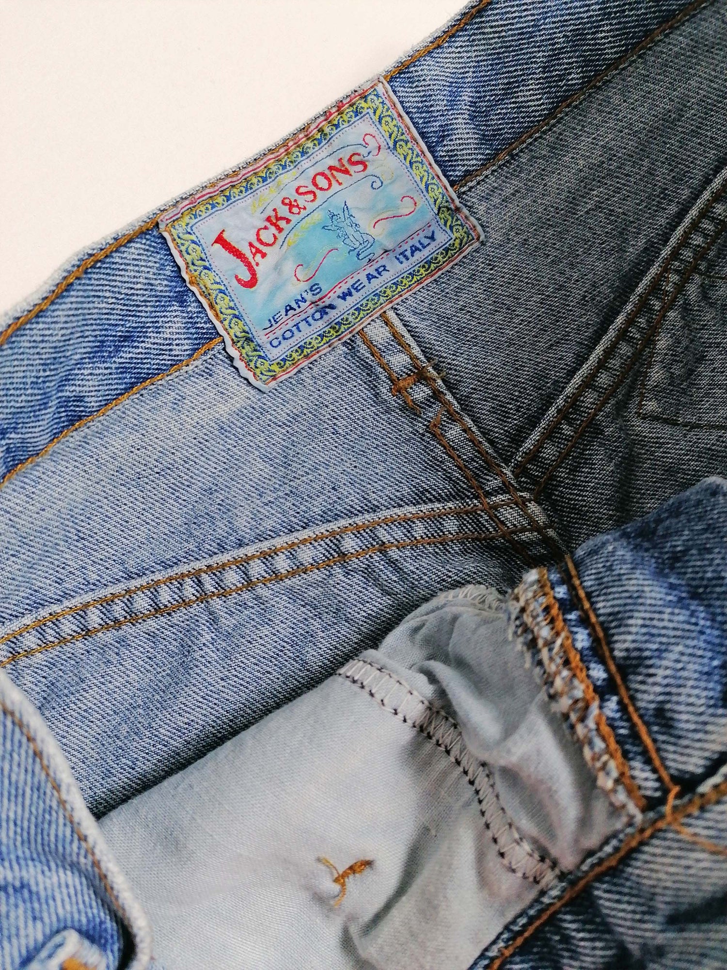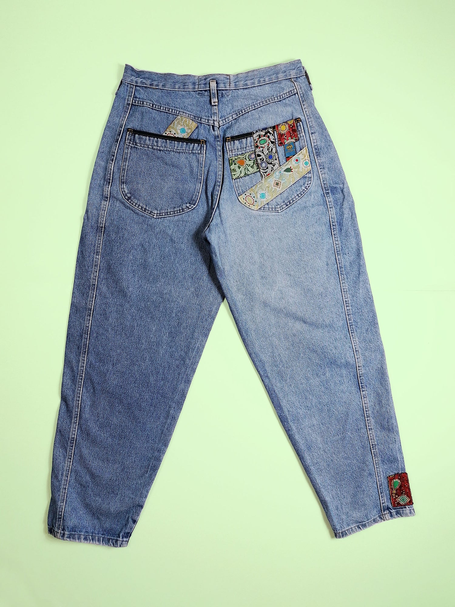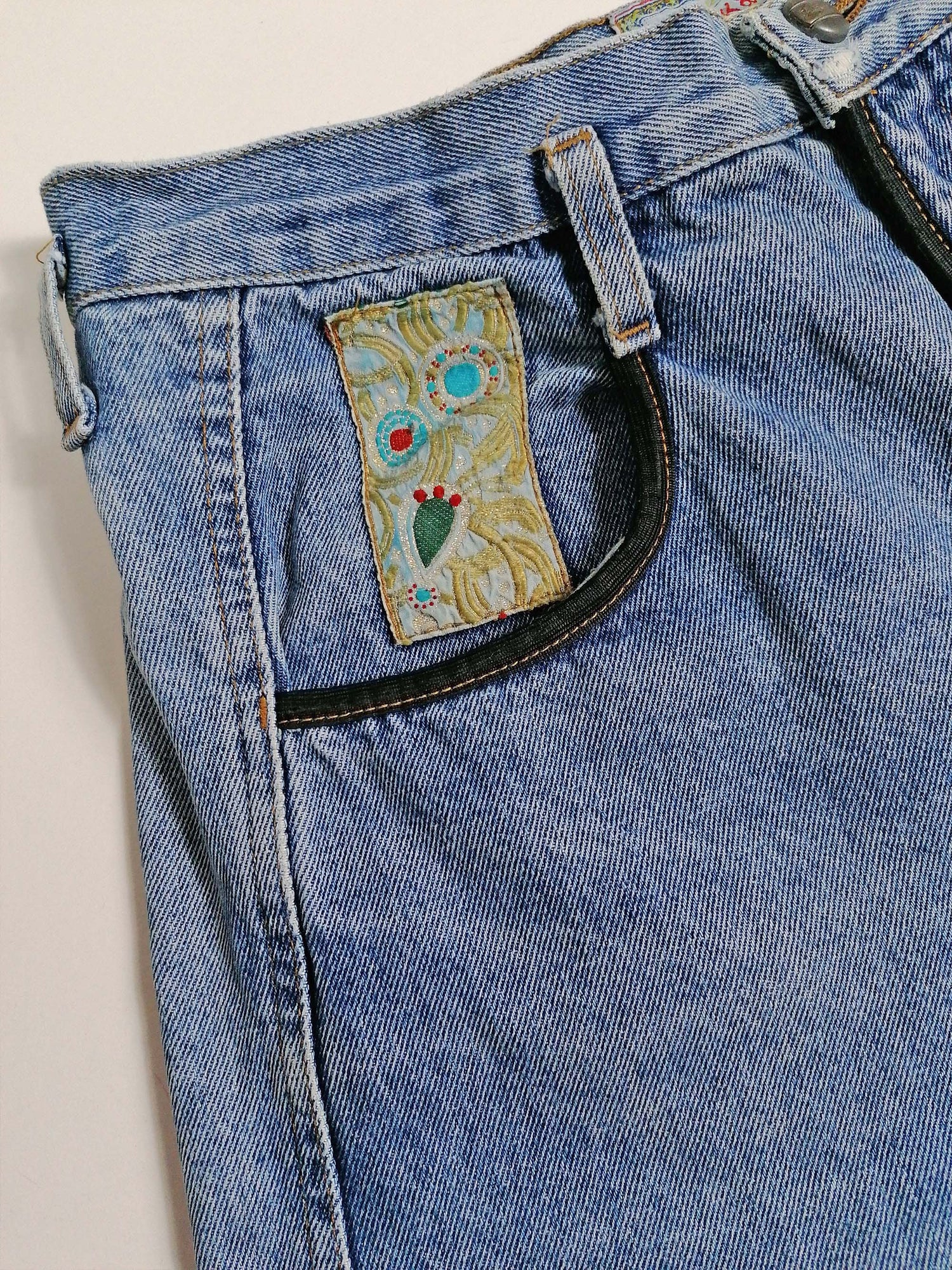 Stunning vintage 80's Jack and Sons high waist jeans, baggy fit. Patchwork details on pockets and thigh. Made in Italy.