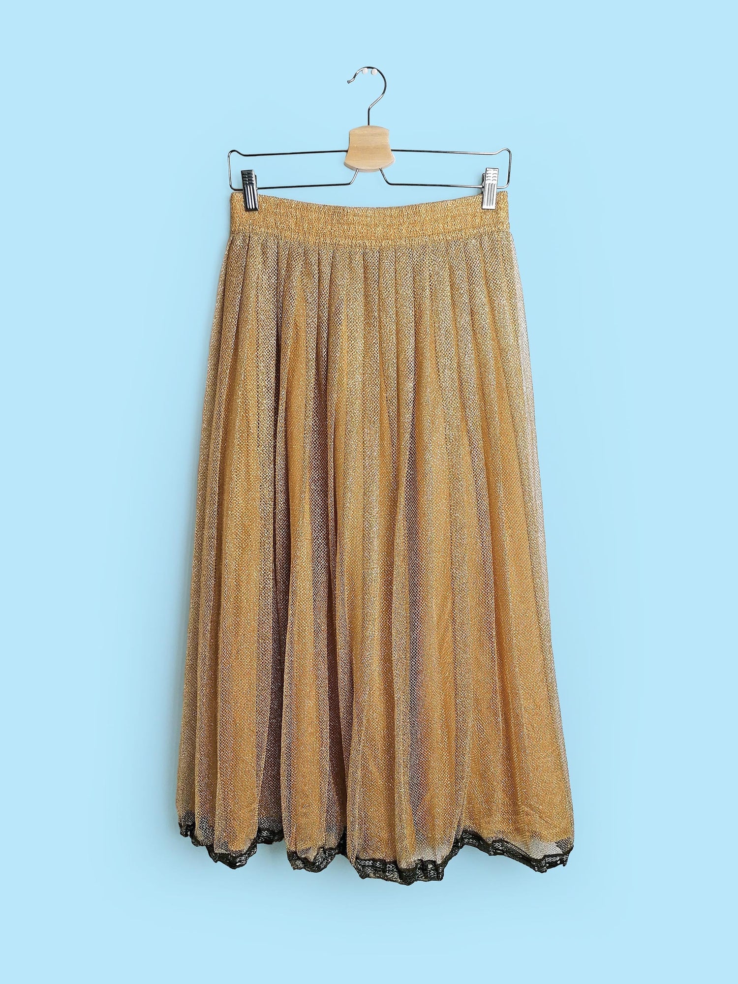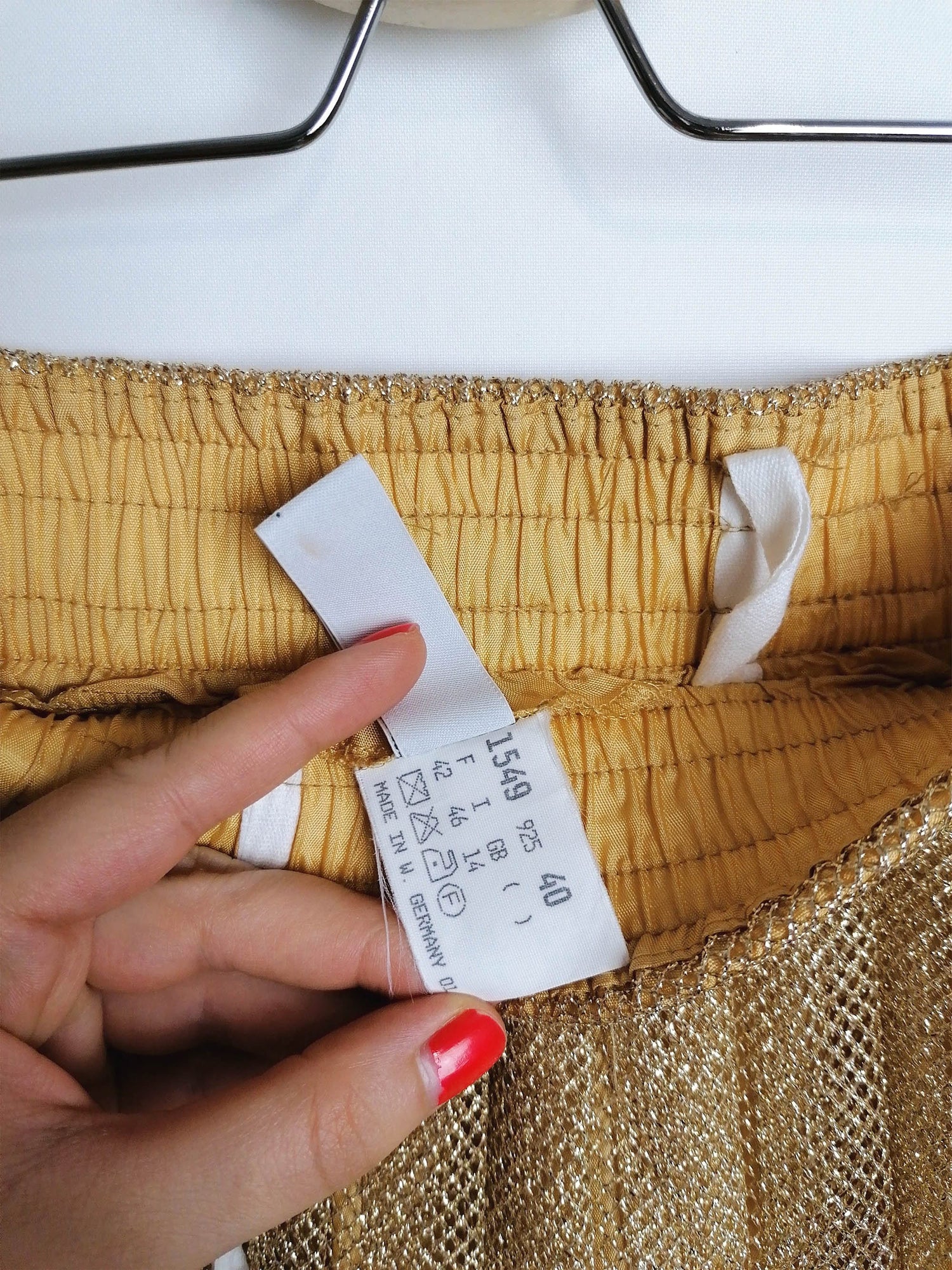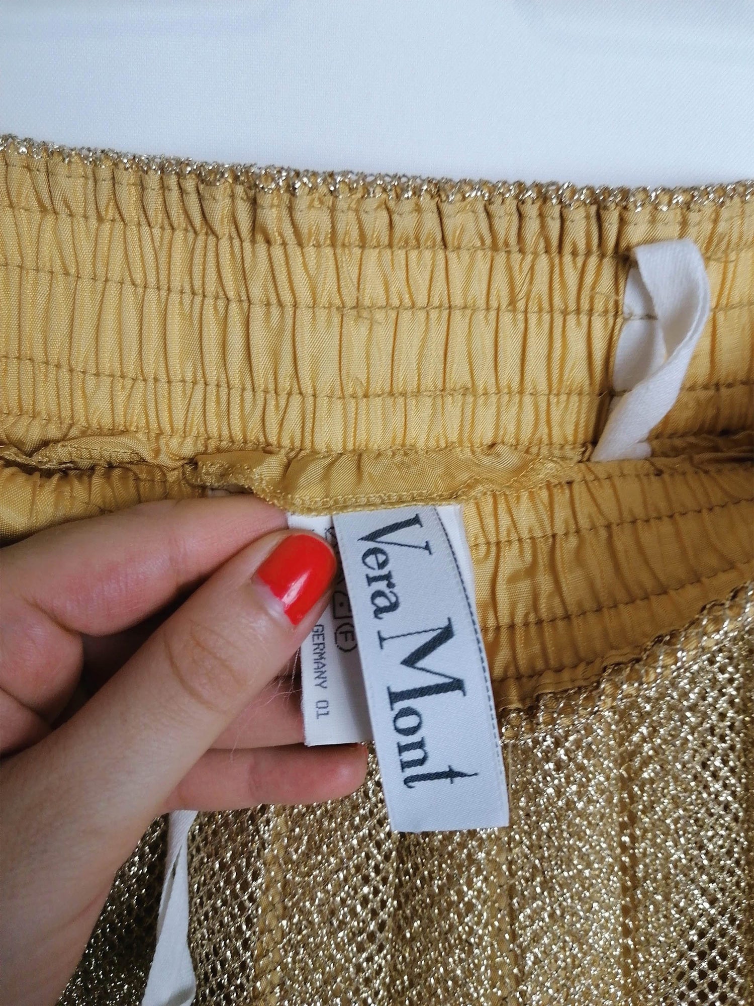 80's VERA MONT Gold Mesh Full Skirt - size M-L / UK 14 / F 42