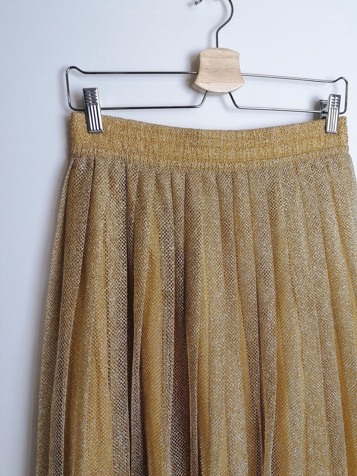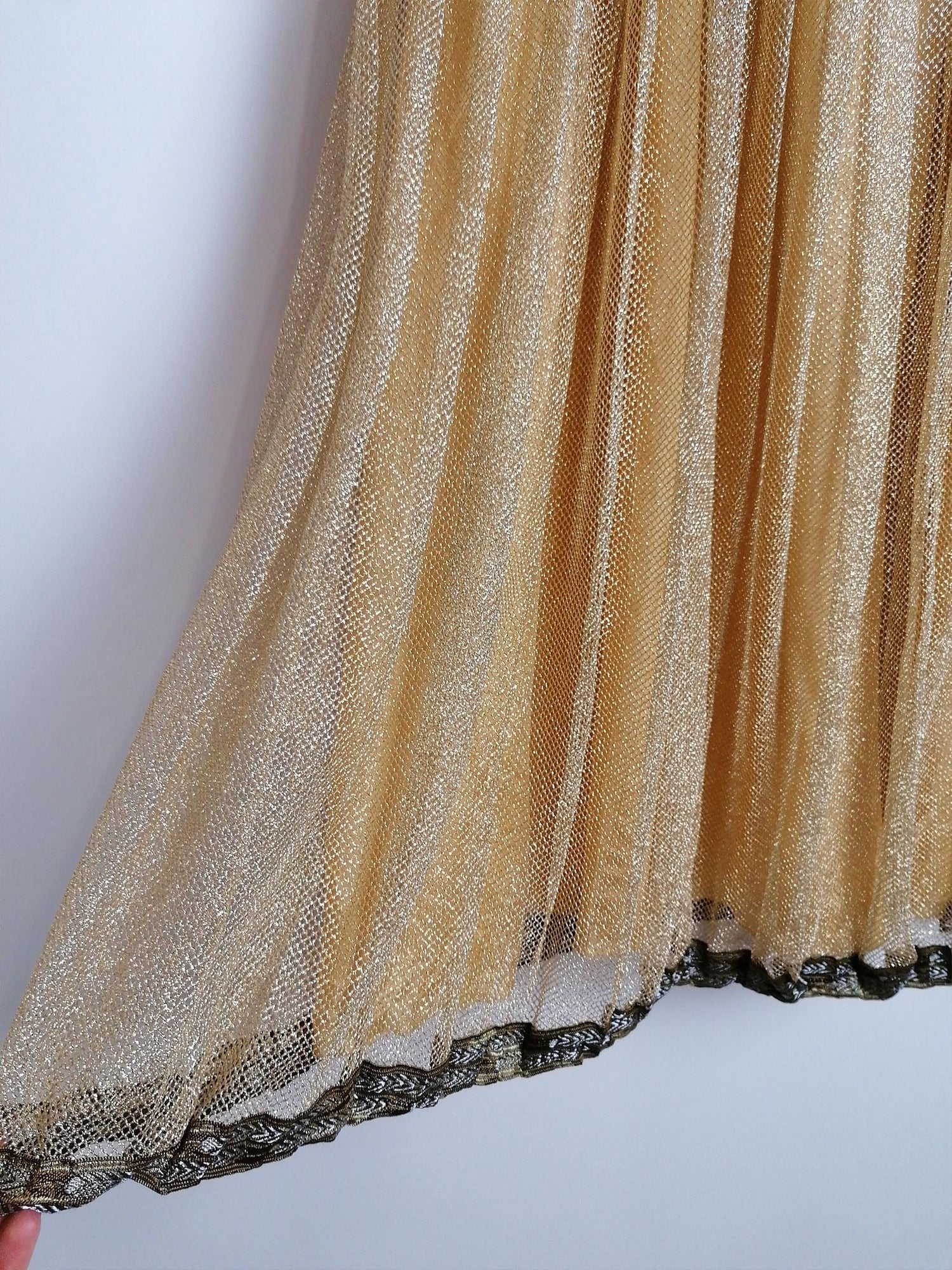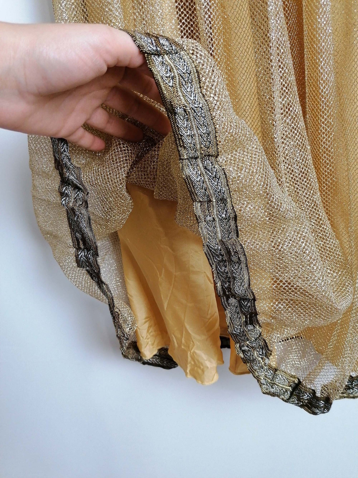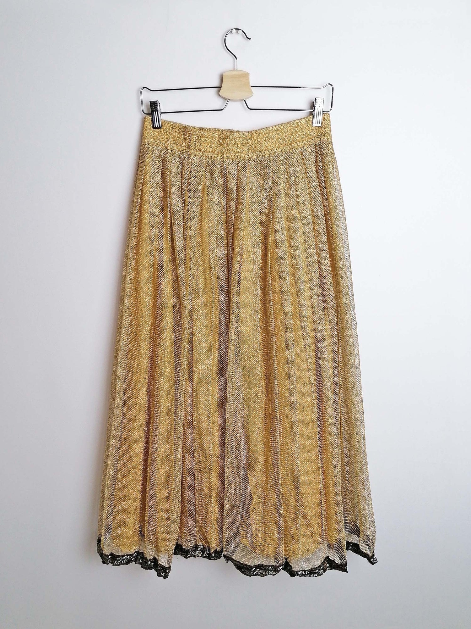 80's VERA MONT Gold Mesh Full Skirt - size M-L / UK 14 / F 42