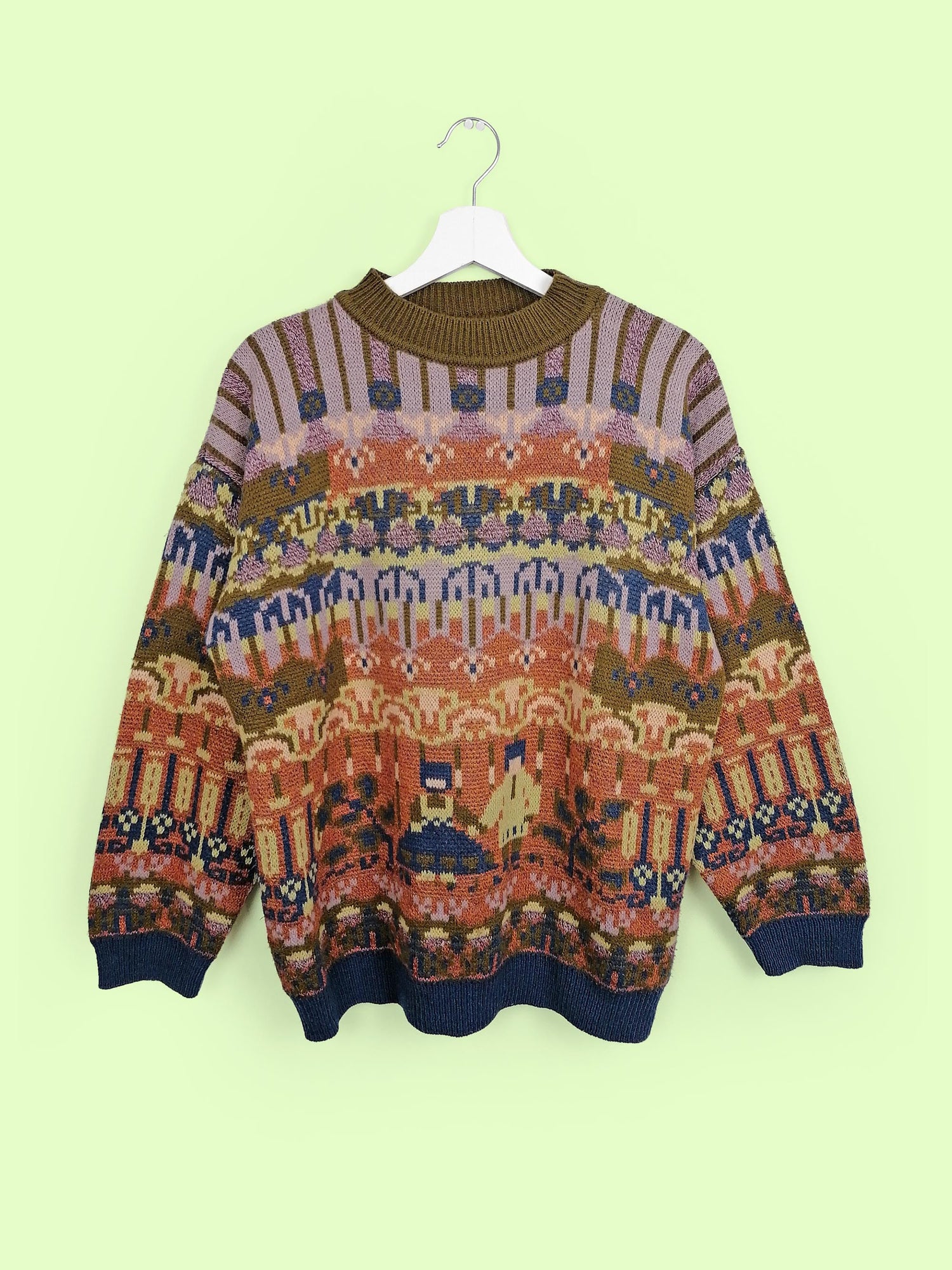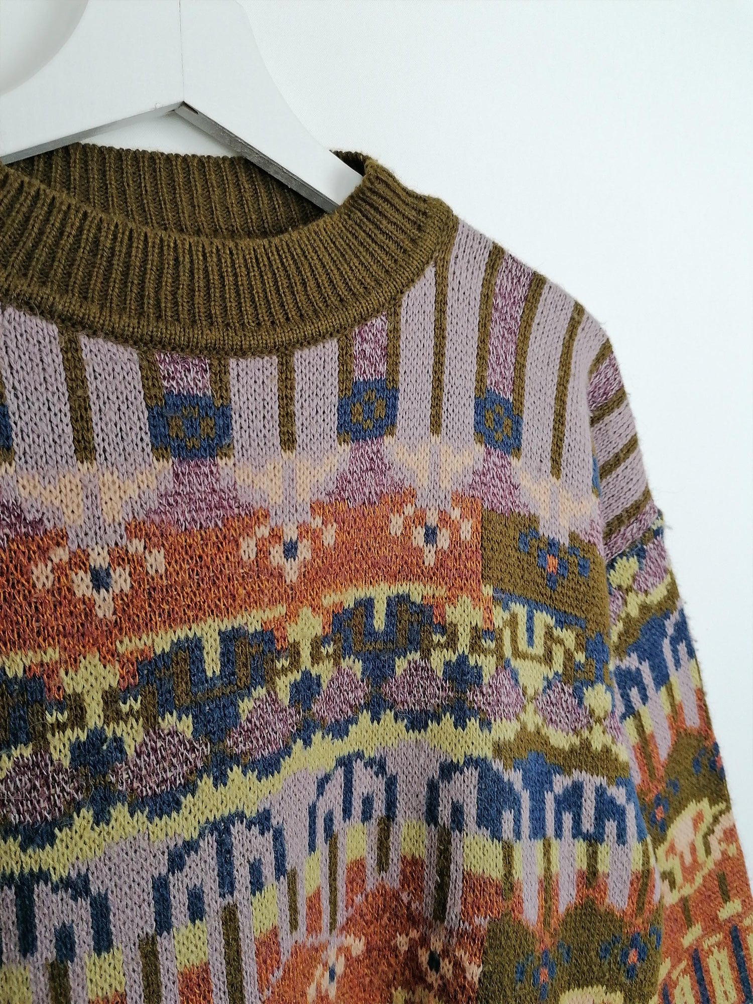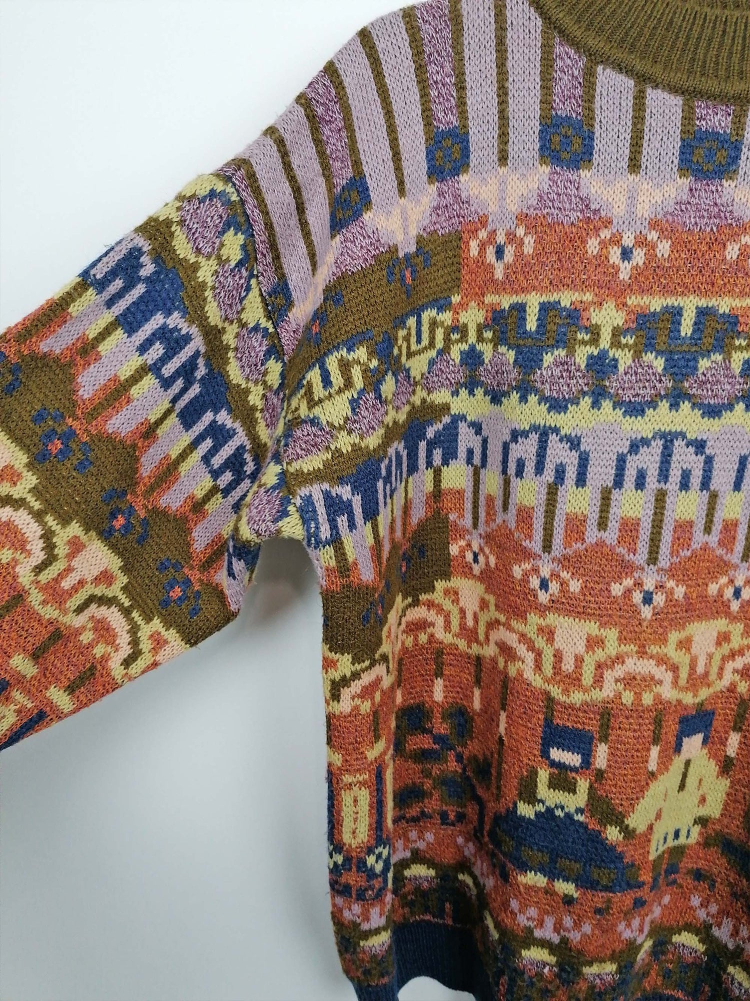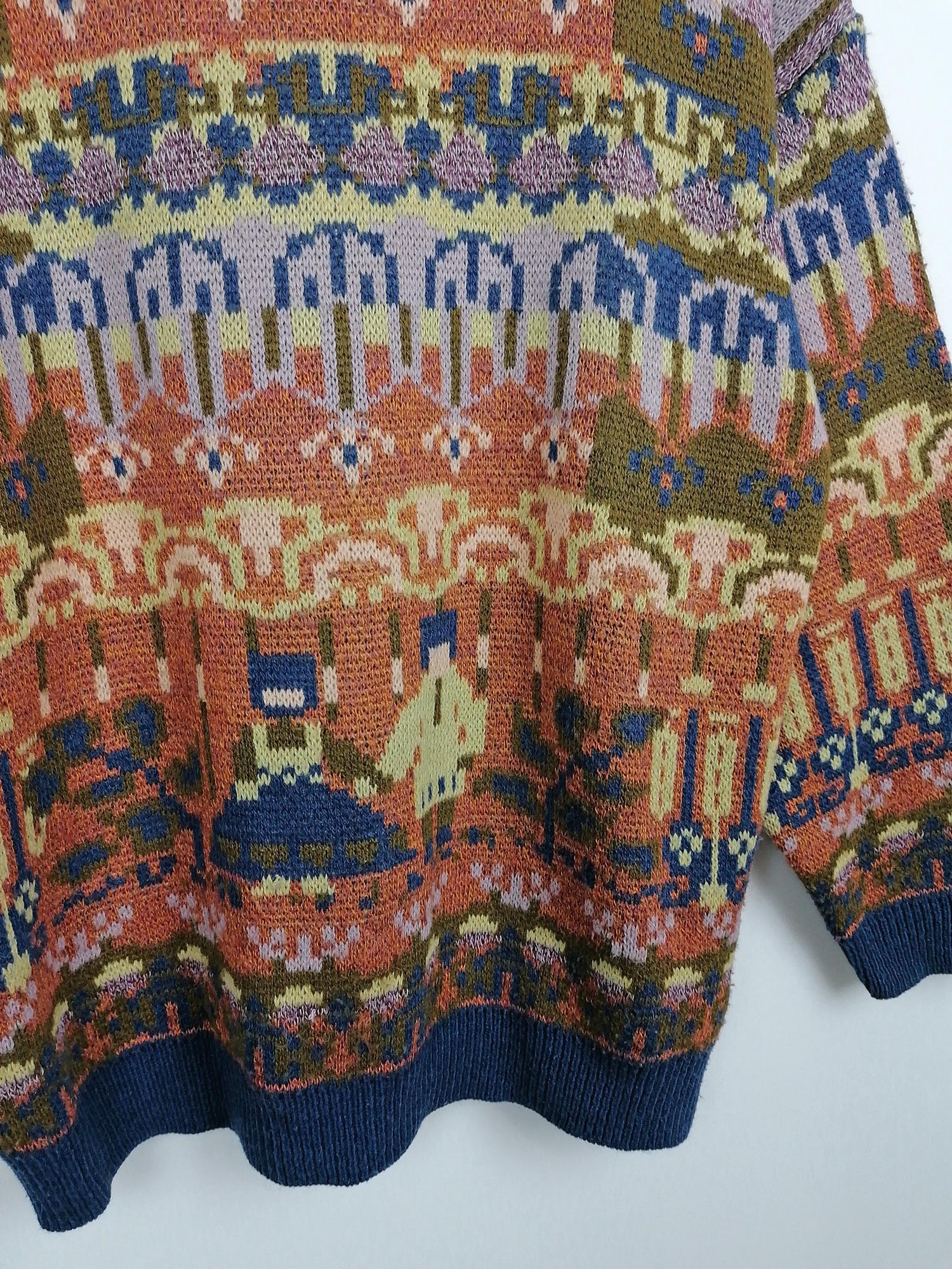 90's ANN LLEWELYN Esq. Folk Pattern Sweater - size S