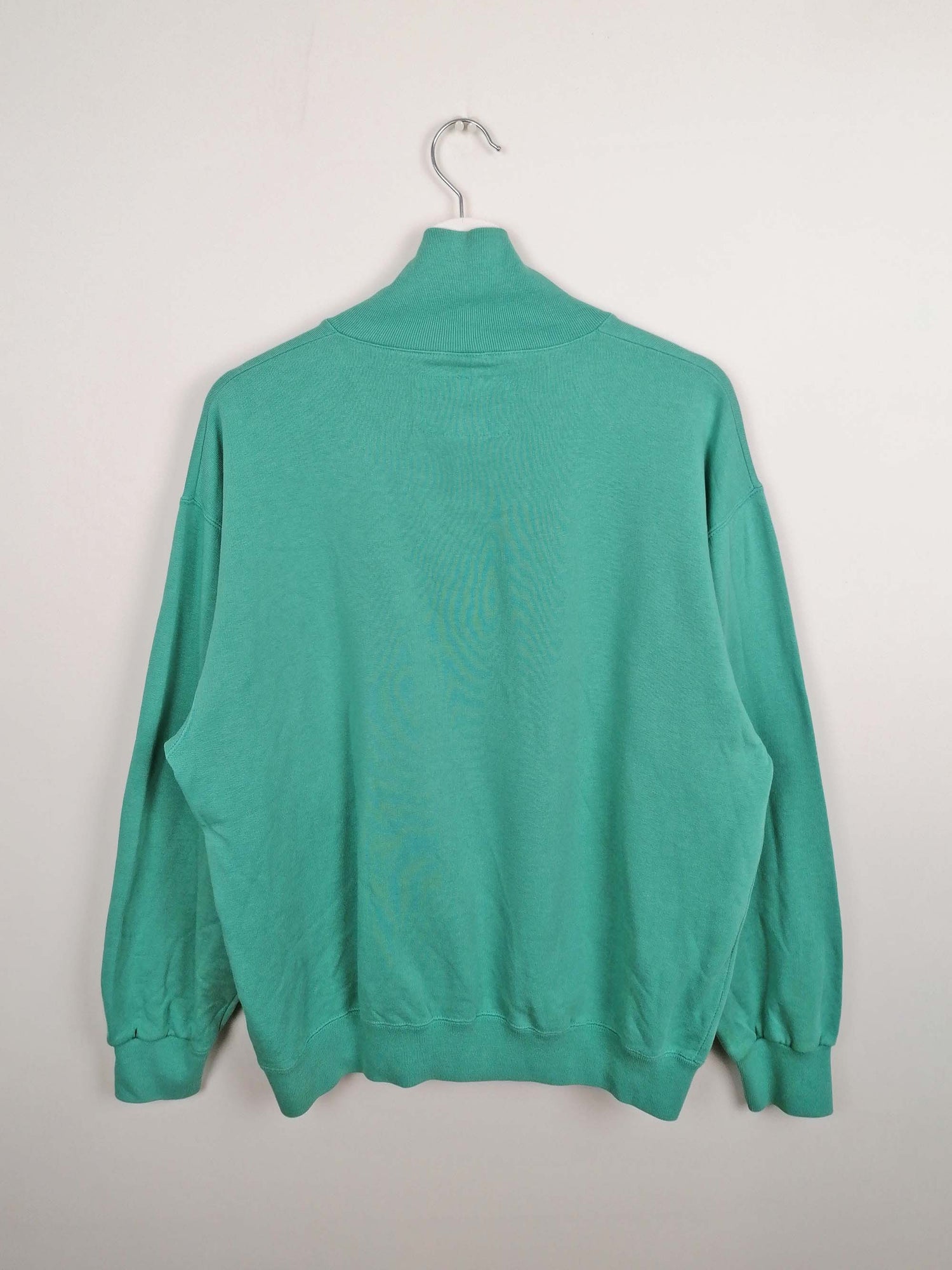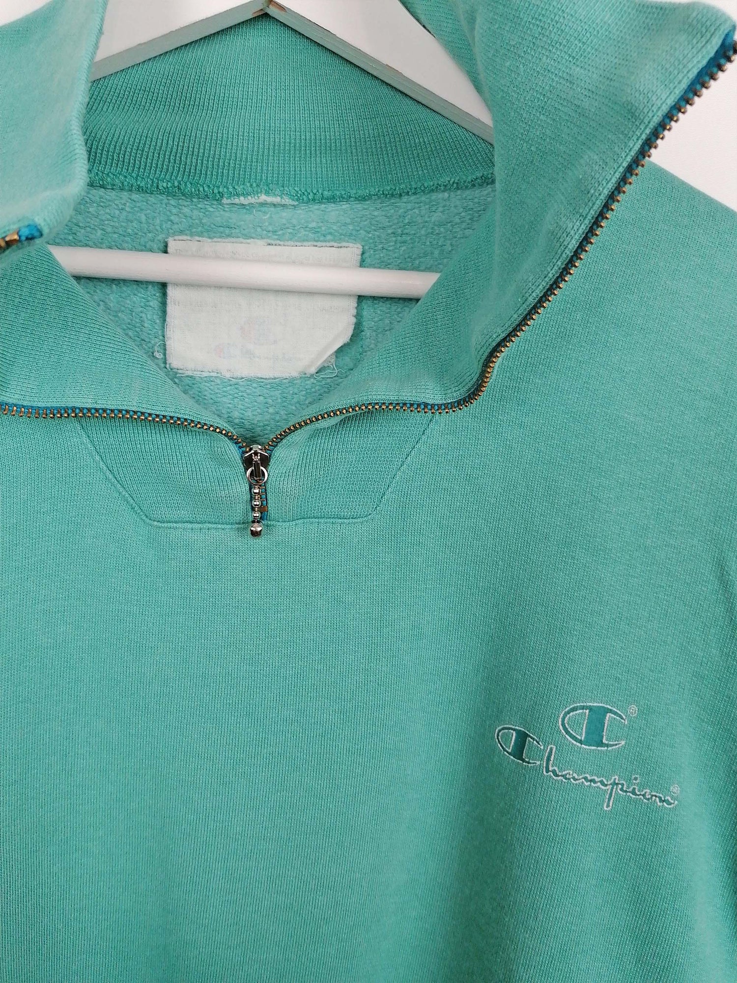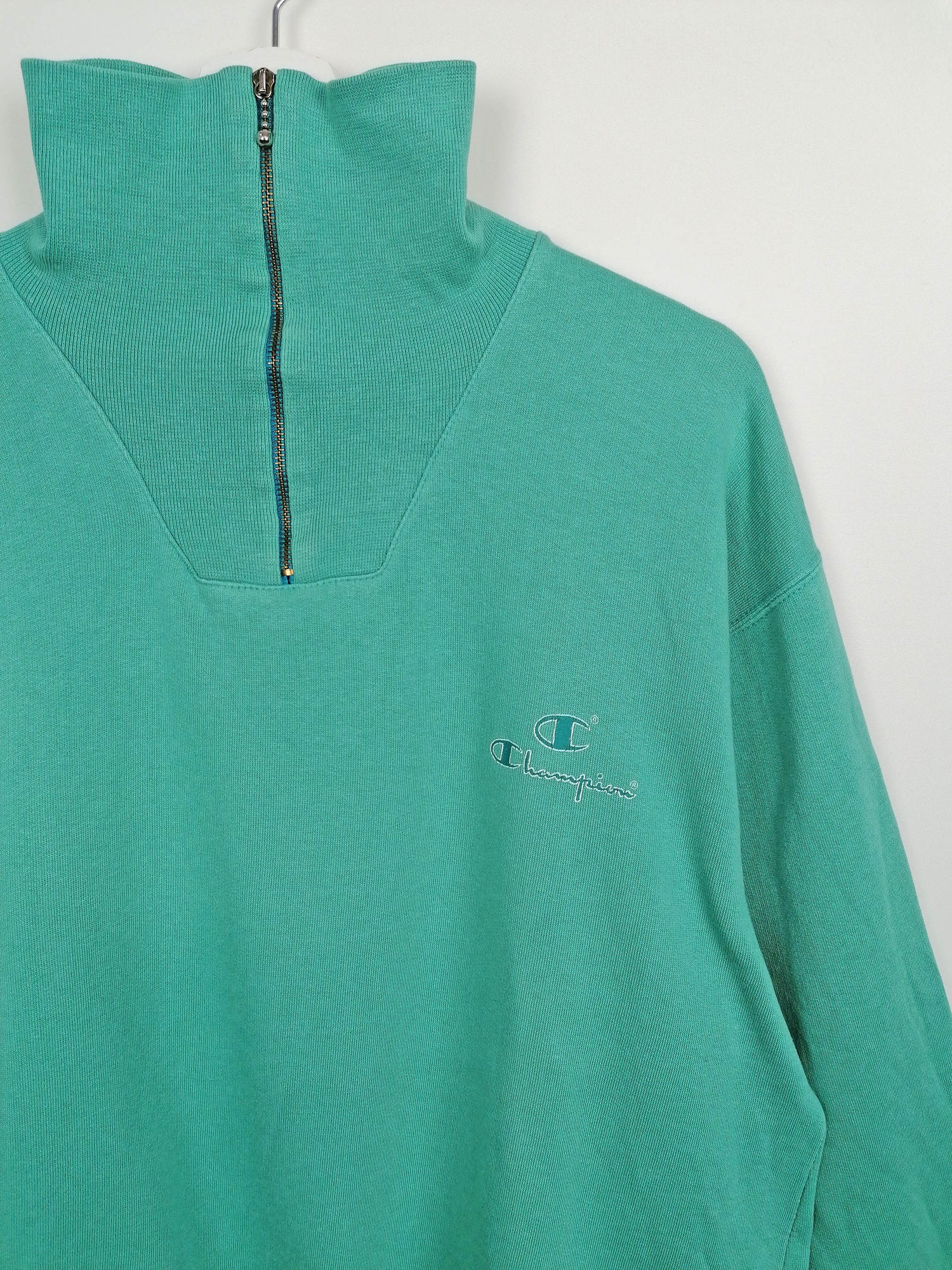 Vintage 80's 90's light-weight CHAMPION sweatshirt, 1/4 zipper, logo on breast. Gorgeous aqua green colour.
