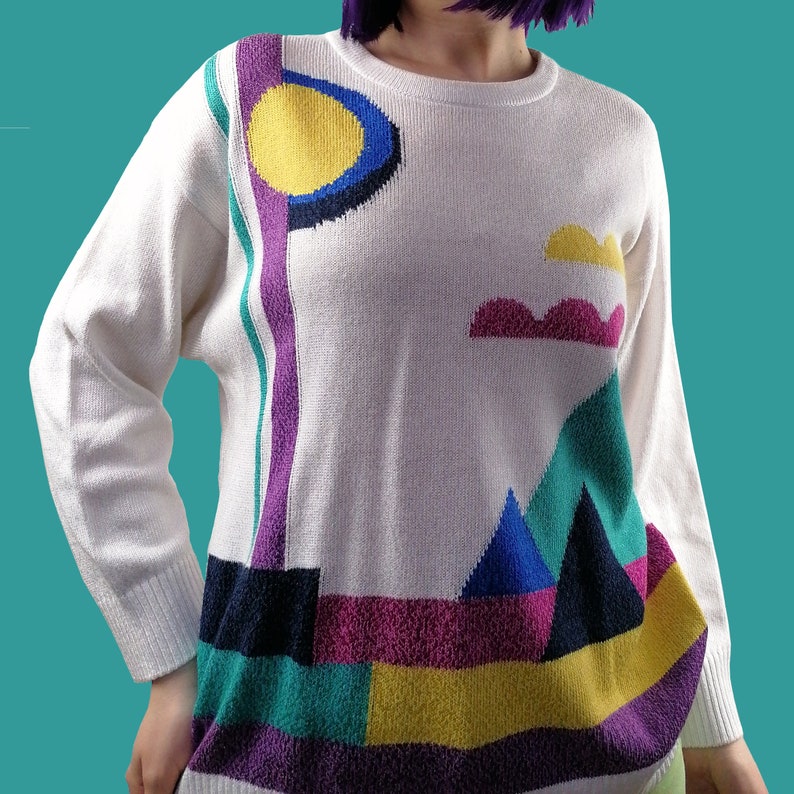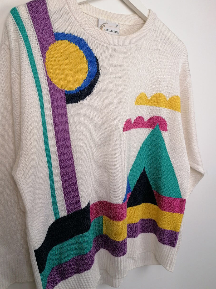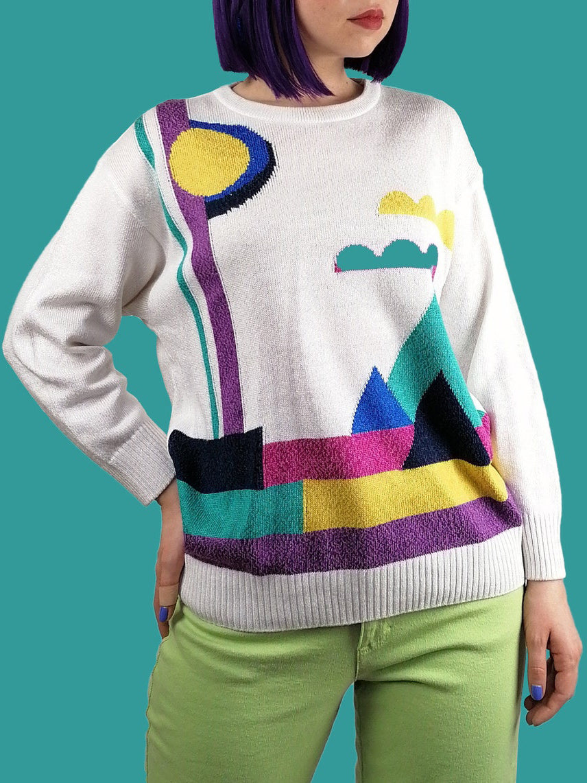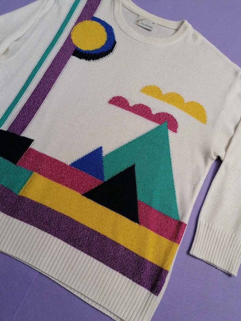 Gorgeous vintage 90's abstract patter knit sweater, super soft and comfortable, slightly sheer.