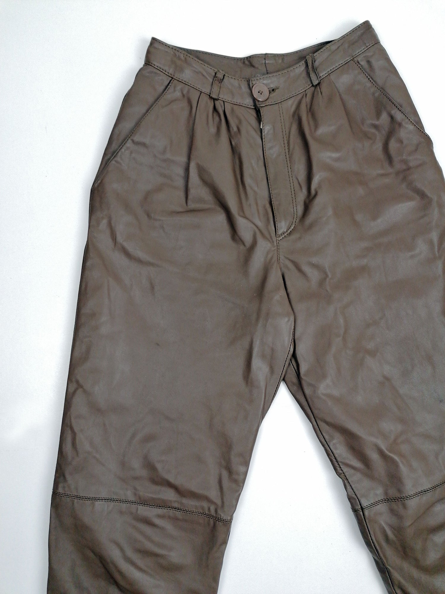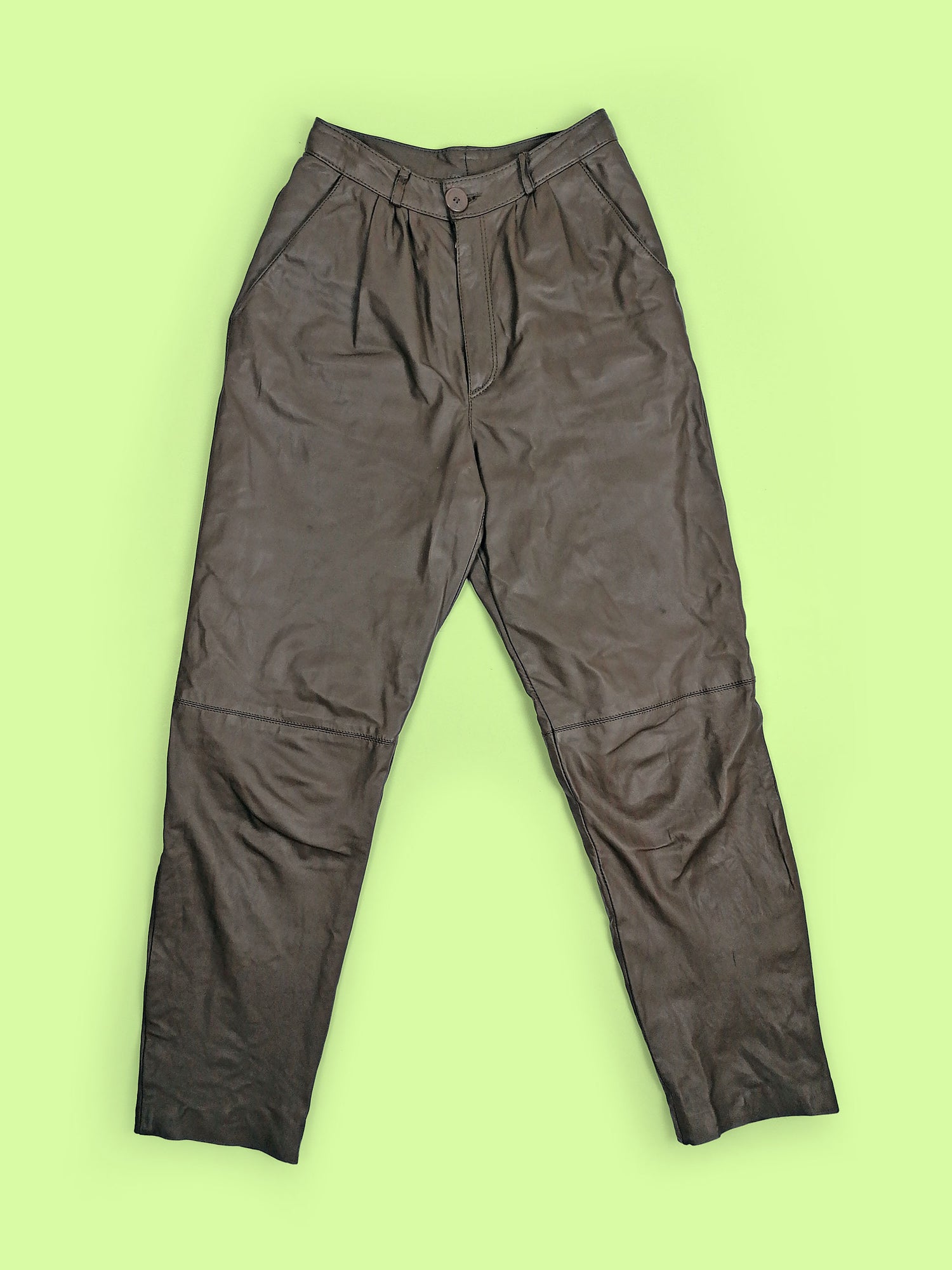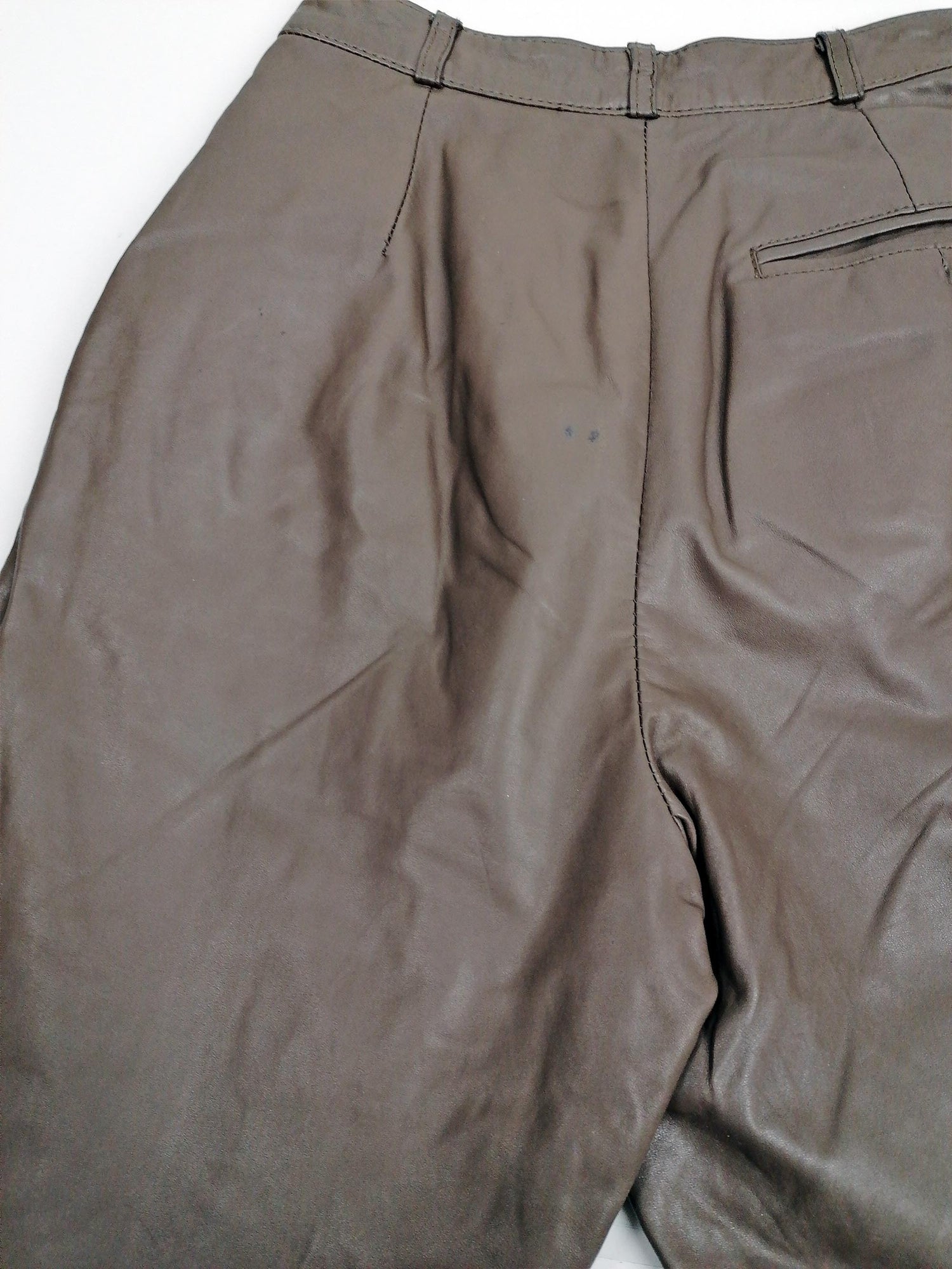 Vintage faux leather trousers, muted brown, high waist. Made in Uruguay.