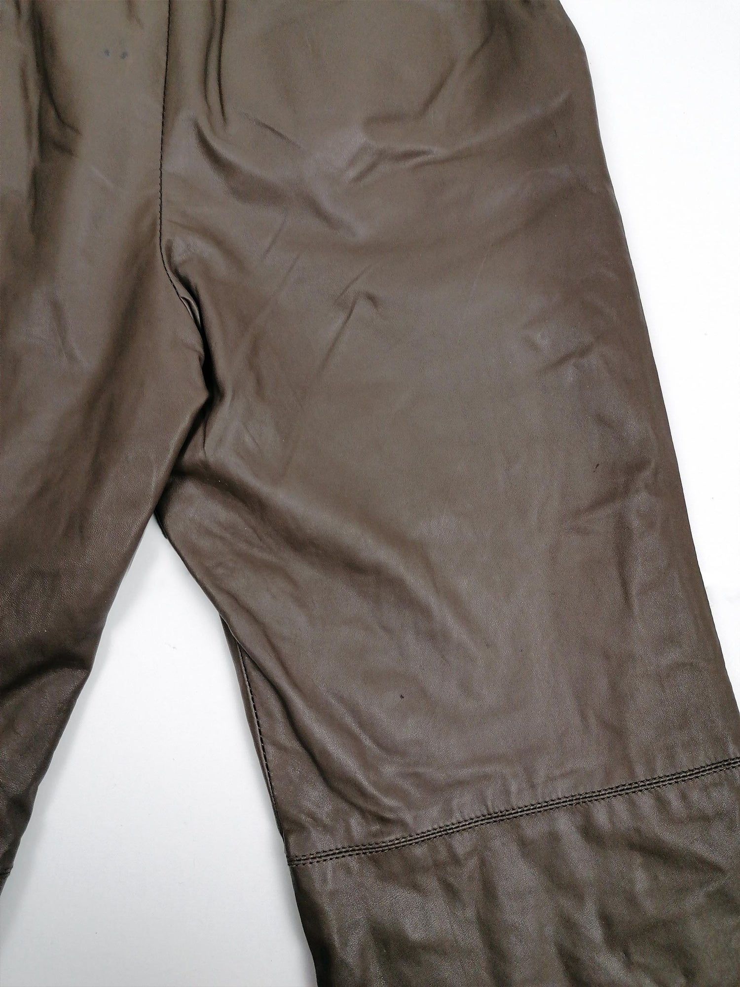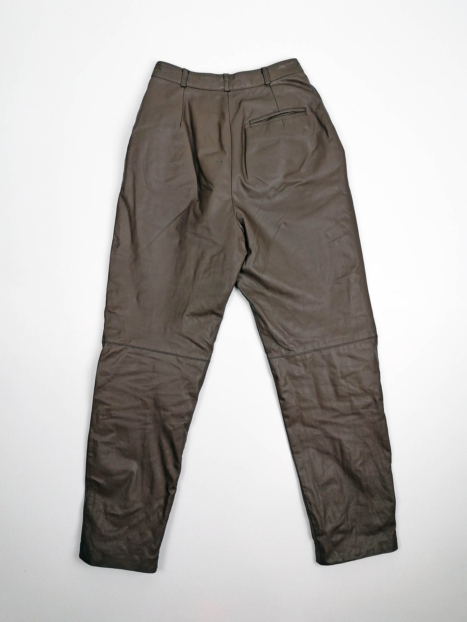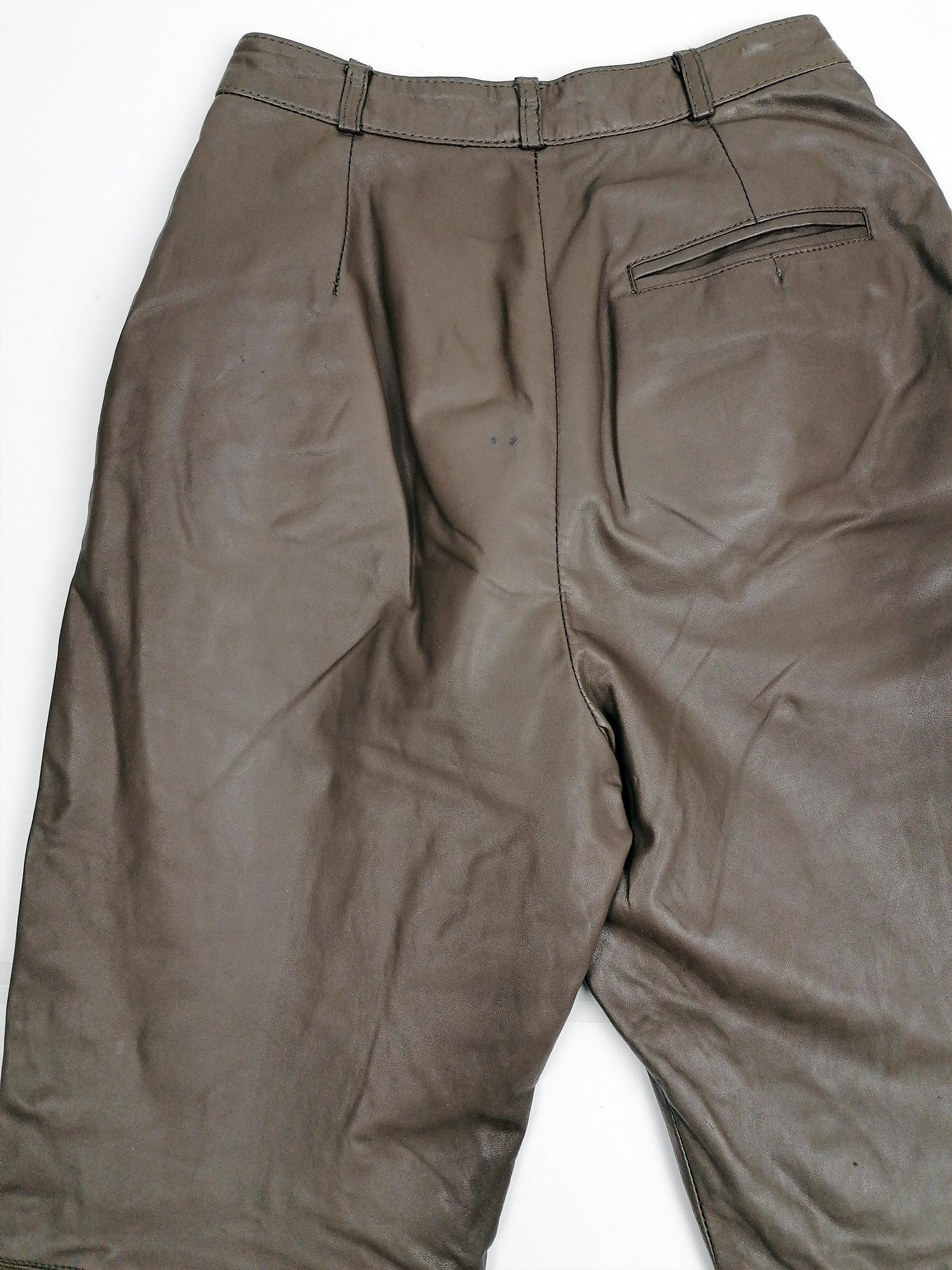 Vintage faux leather trousers, muted brown, high waist. Made in Uruguay.