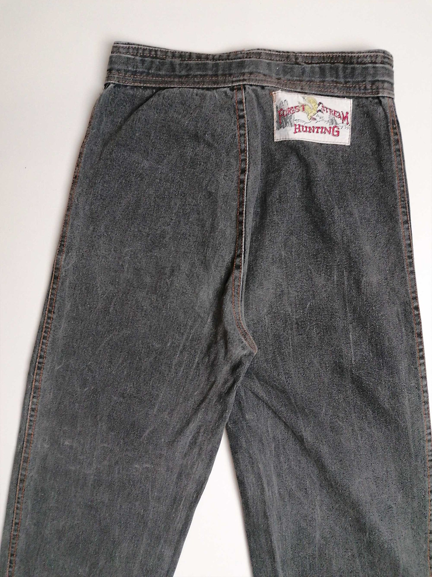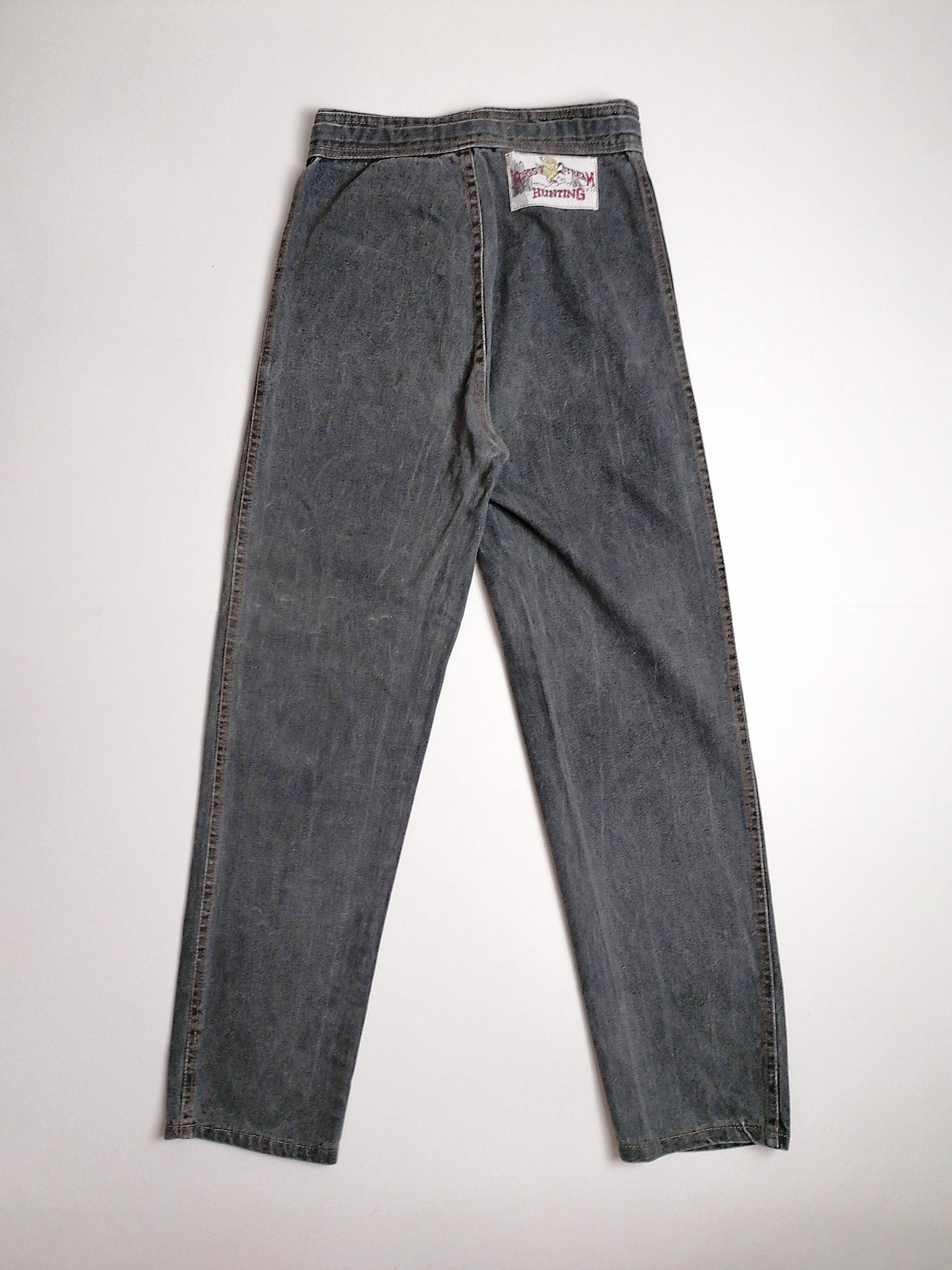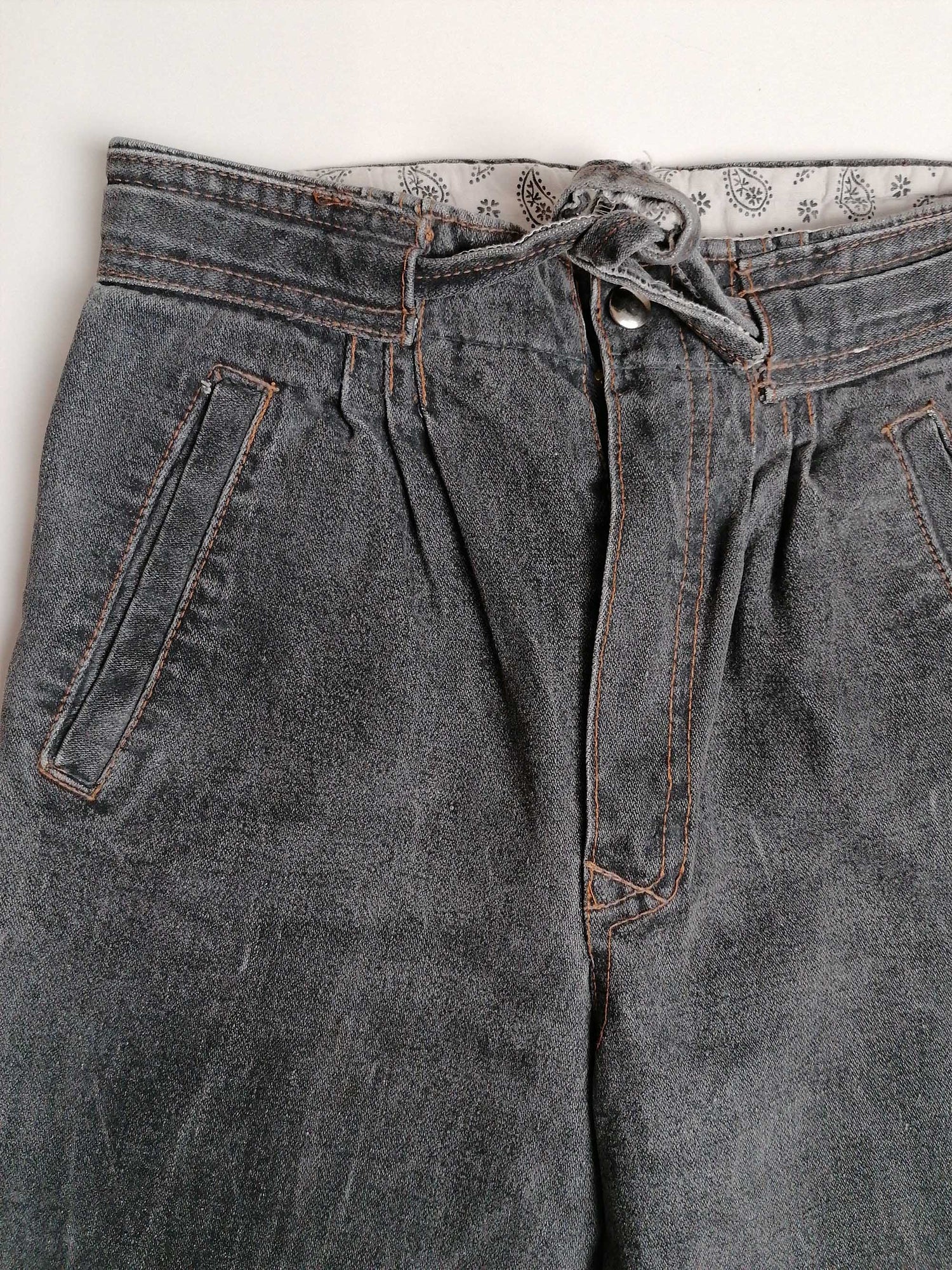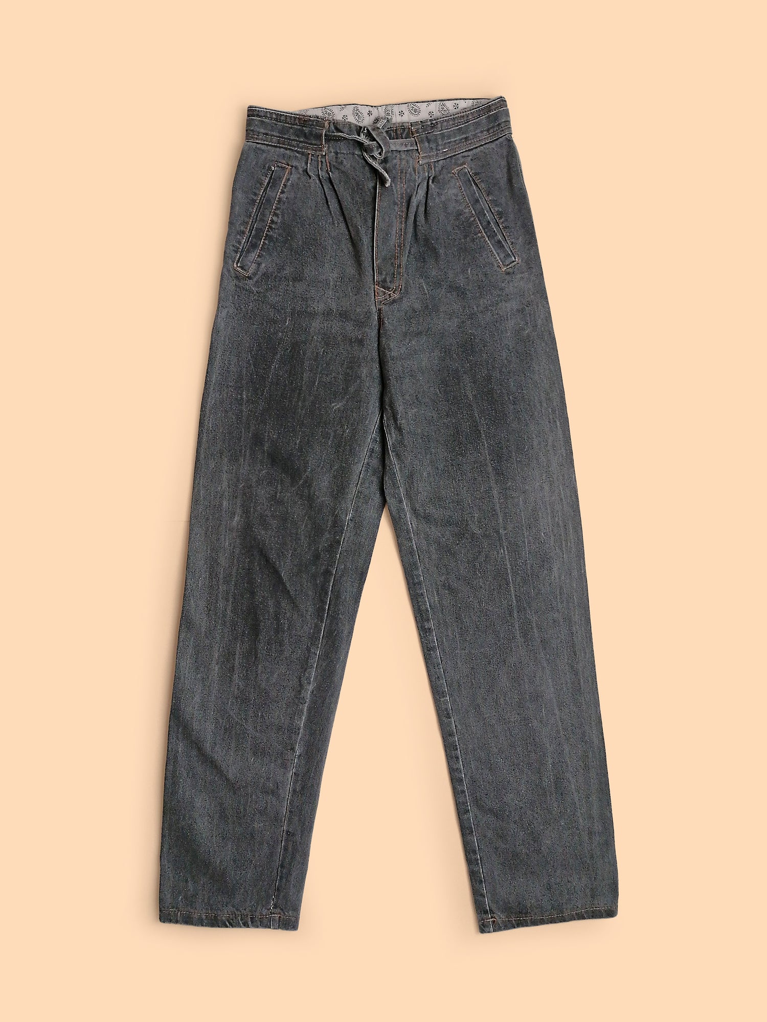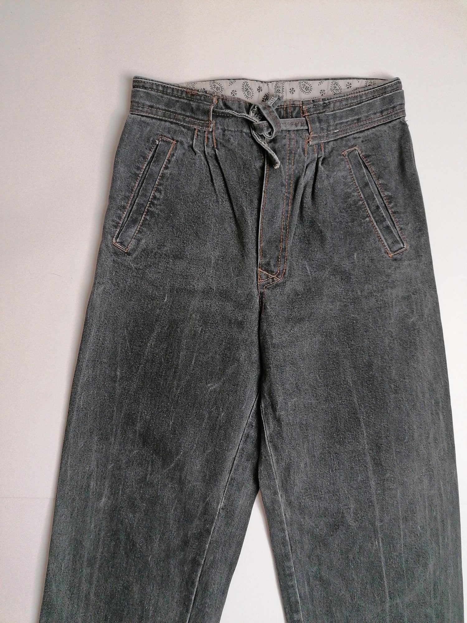 Vintage 80's 90's high waist jeans, marbled charcoal grey look, waist pleats detail, drawstring.