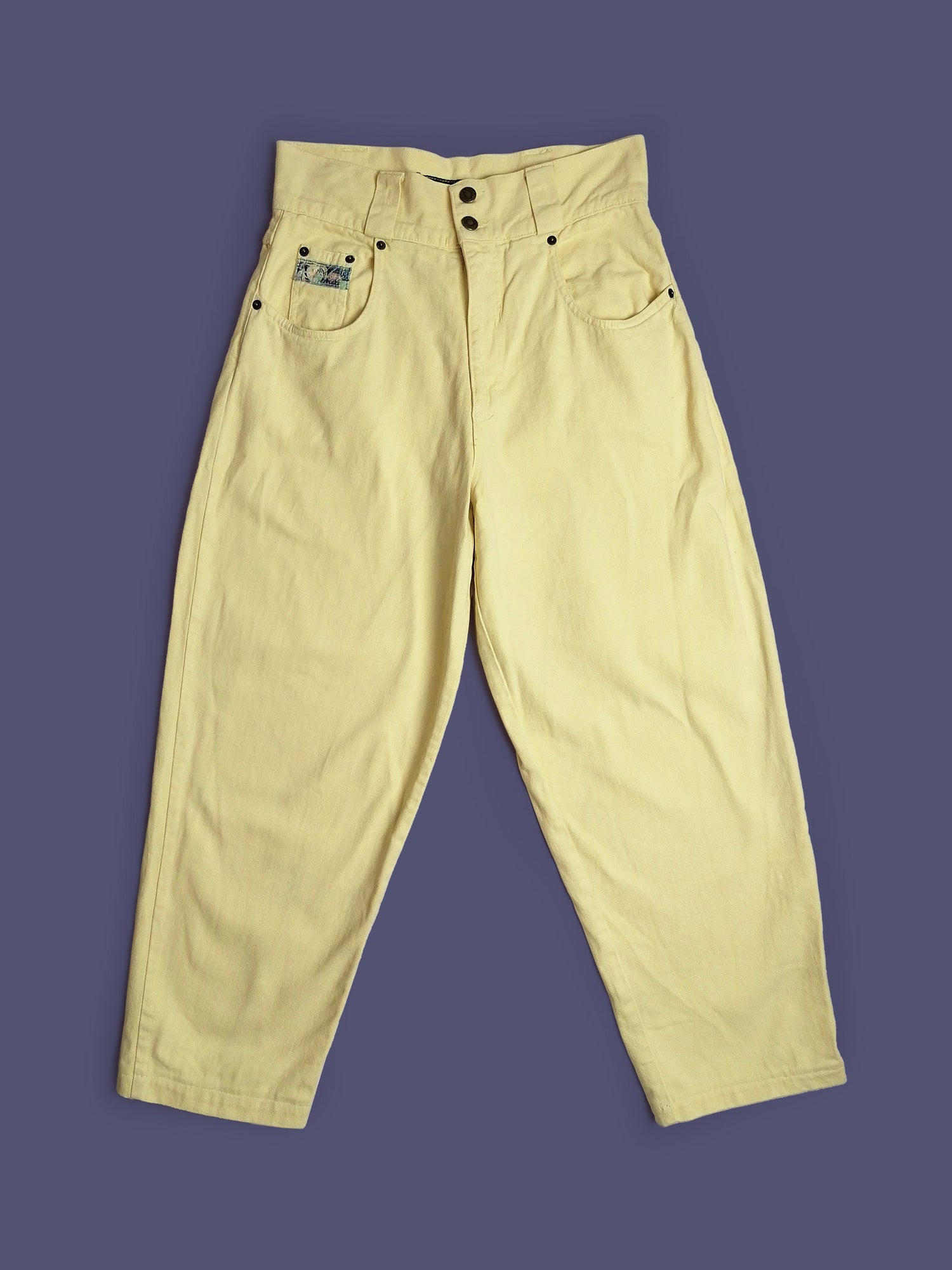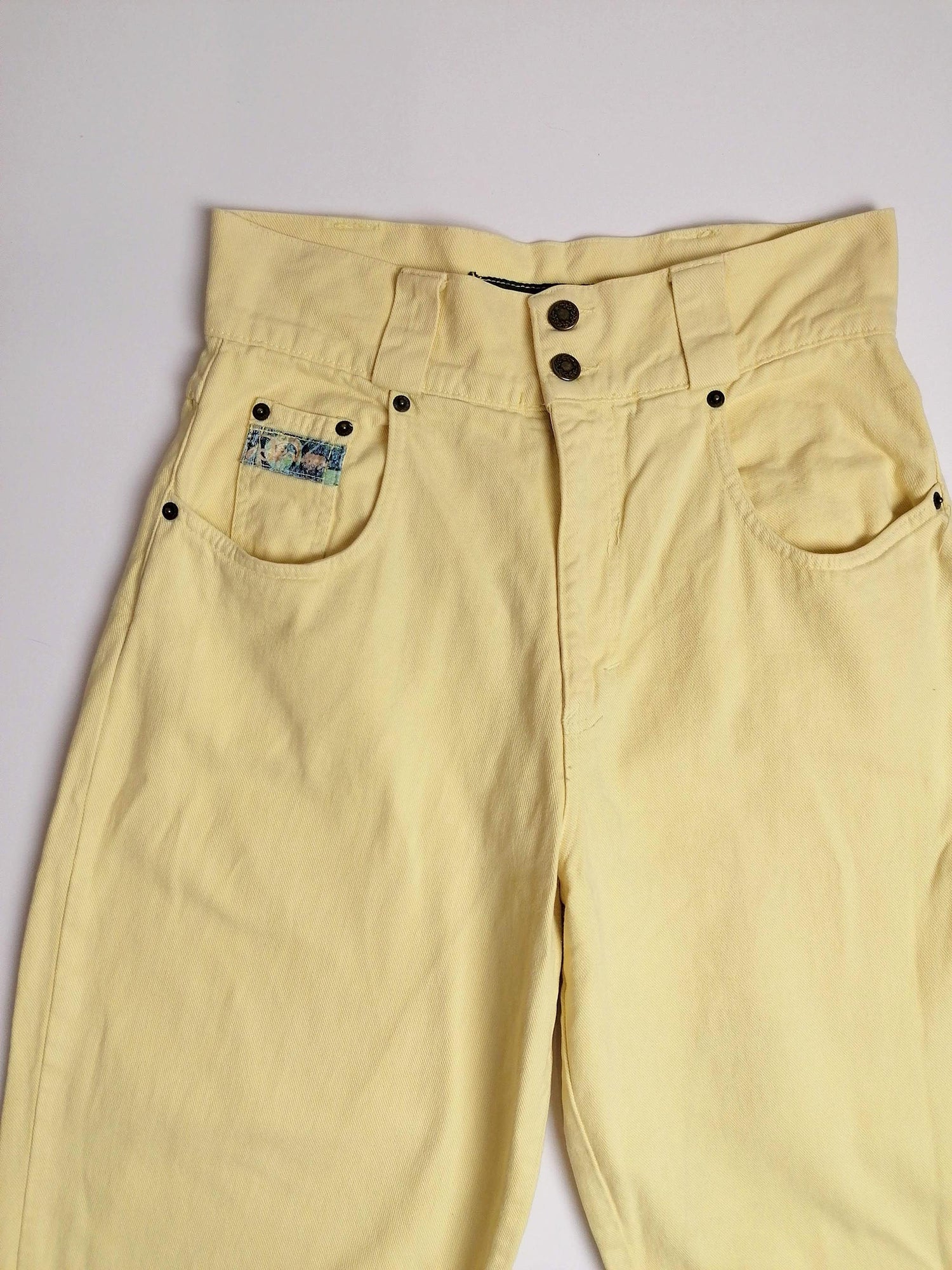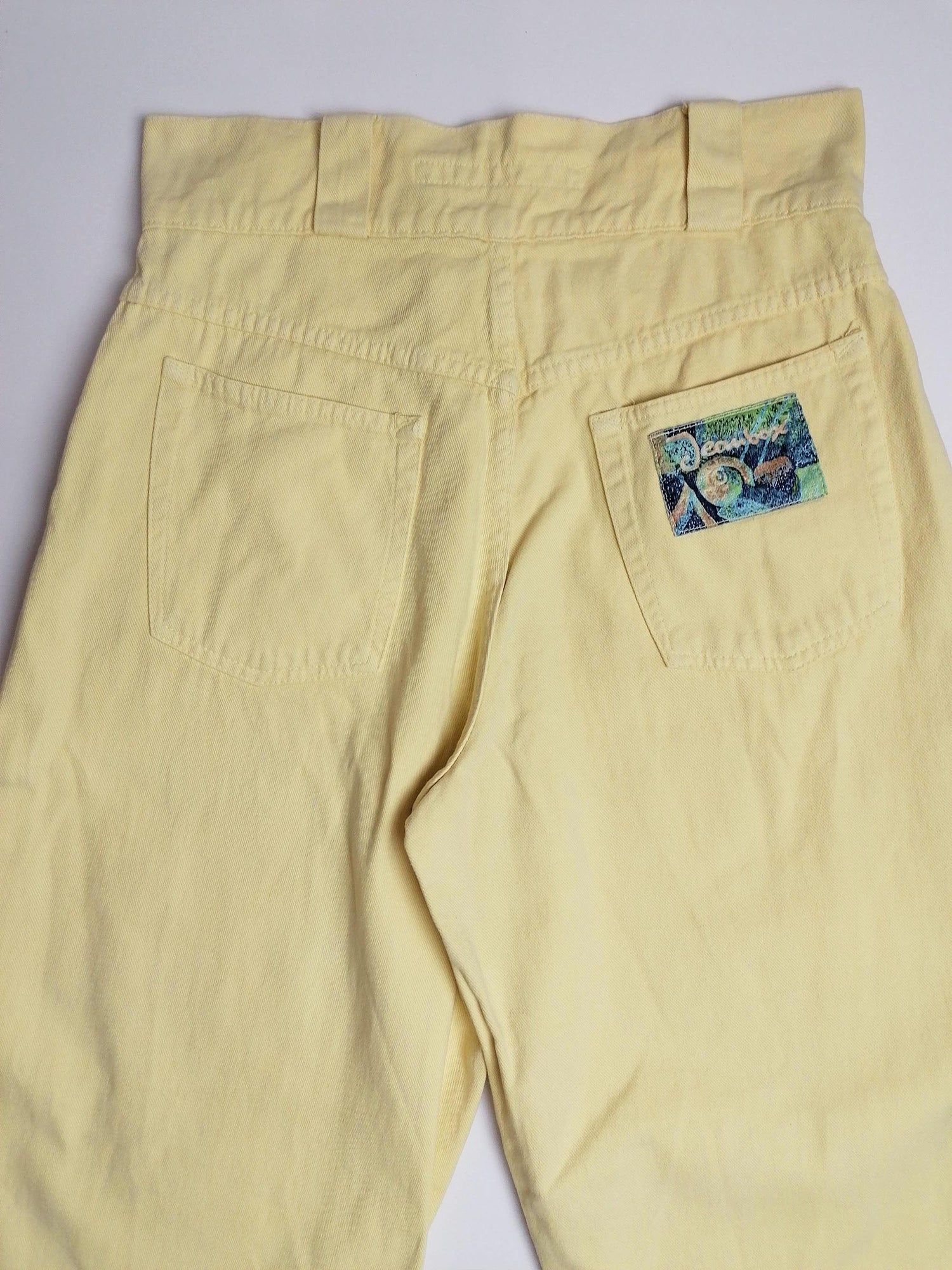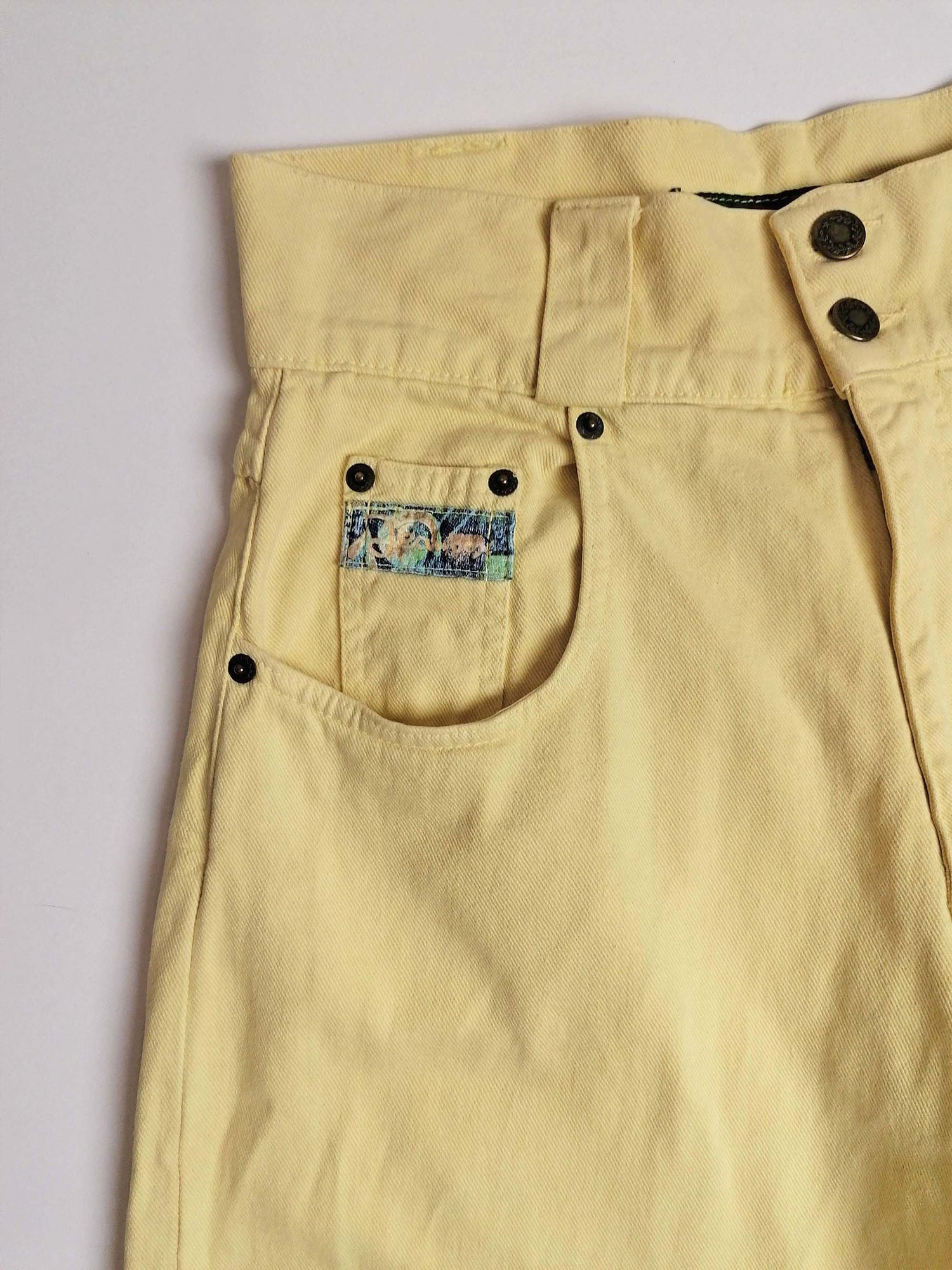Vintage 80's 90's Jeanbox high waist jeans, baggy fit, pastel yellow.