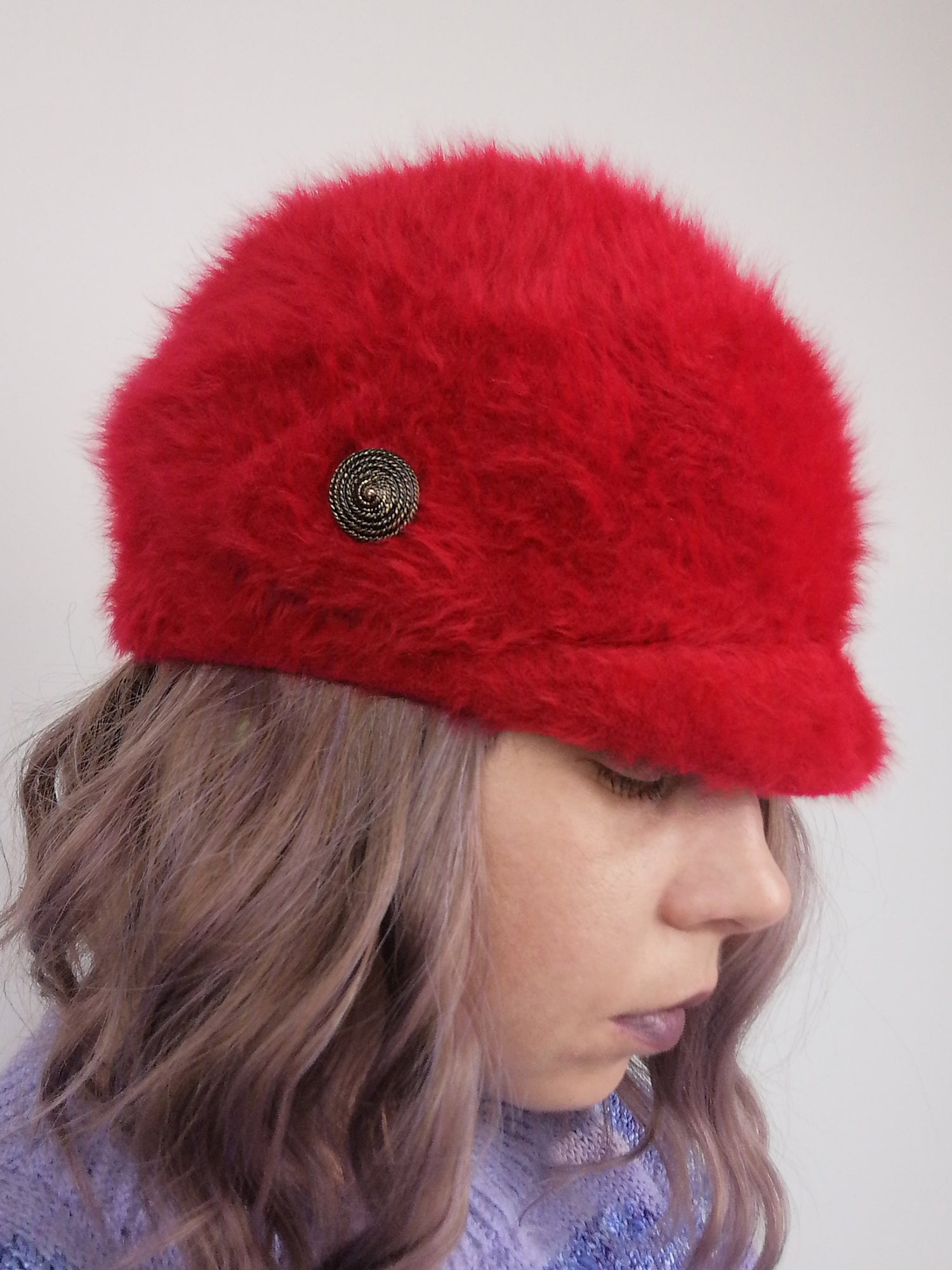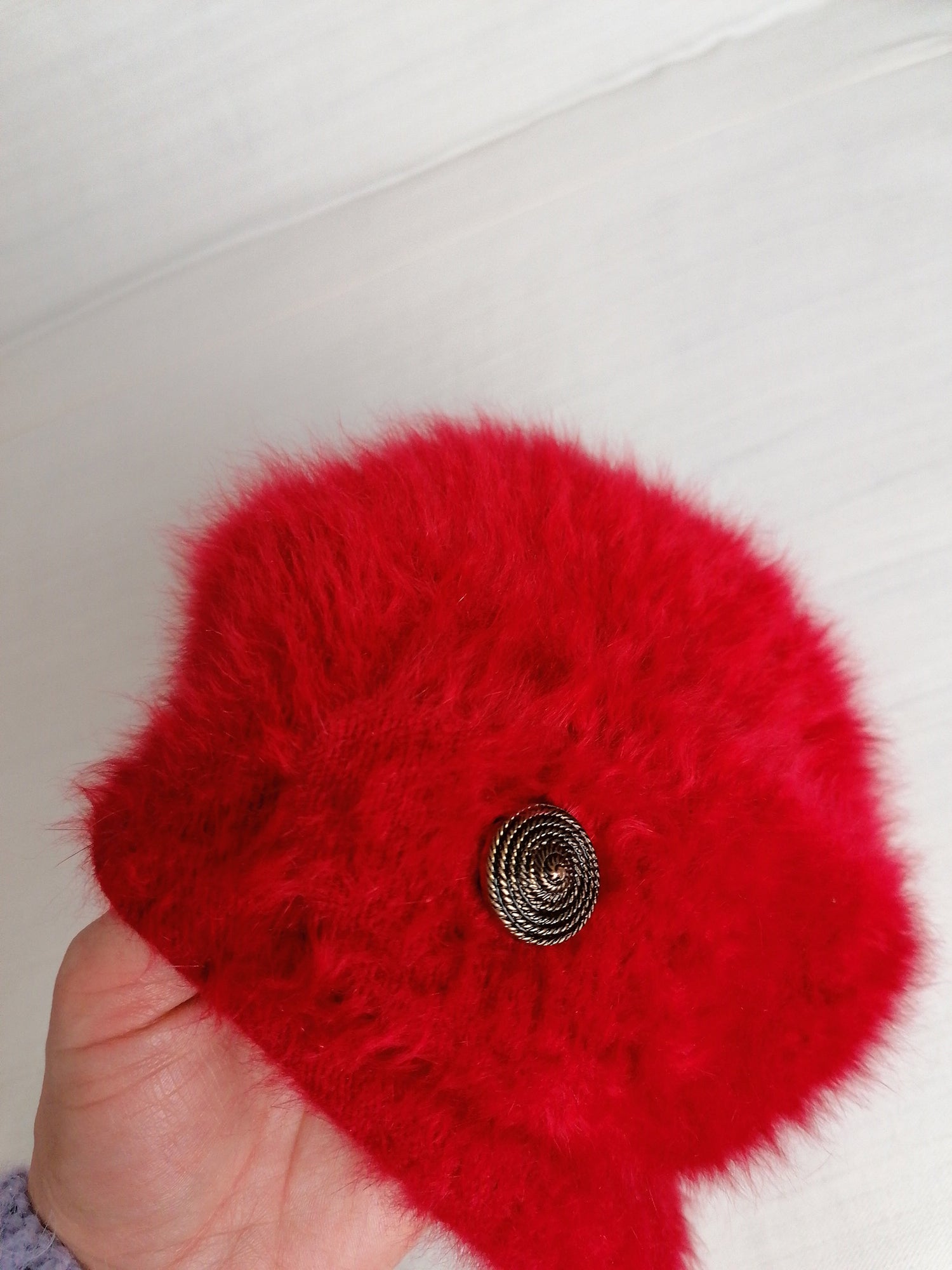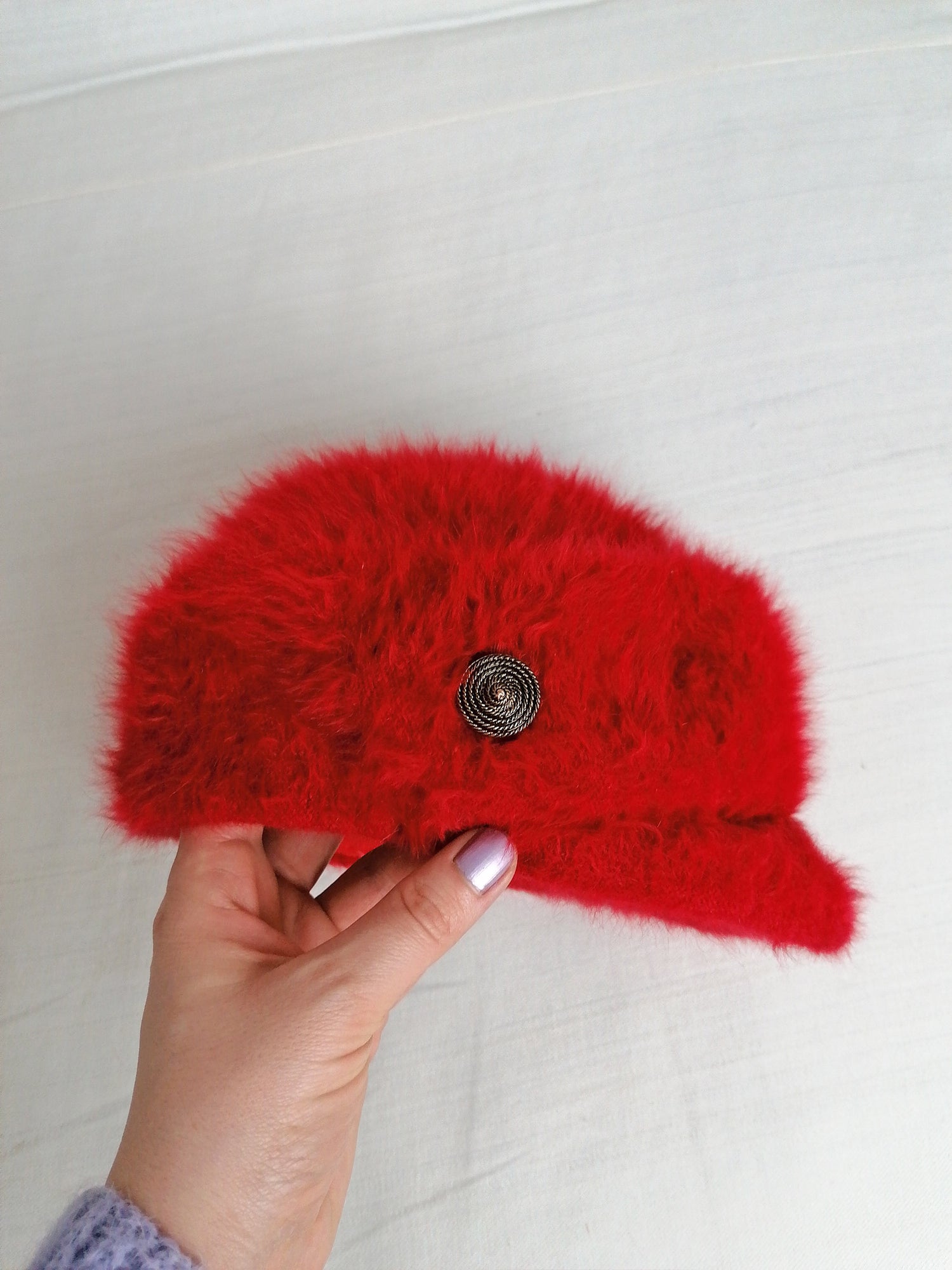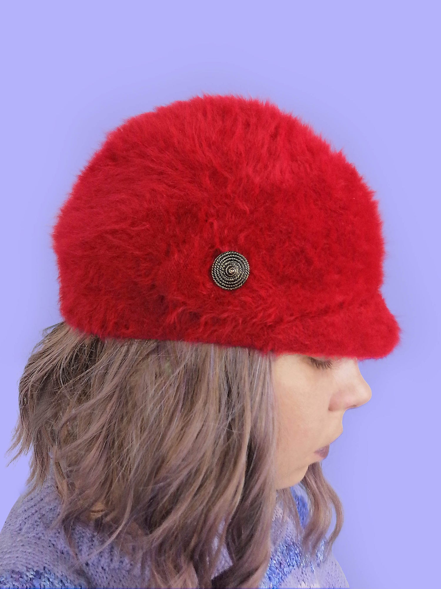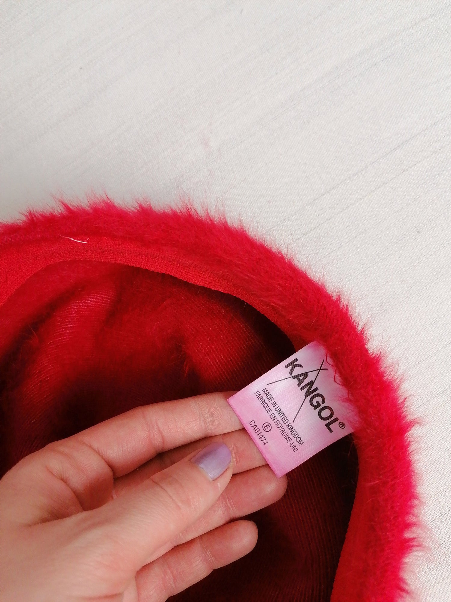Vintage 90's Kangol soft angora blend hat, deep red, small bill.