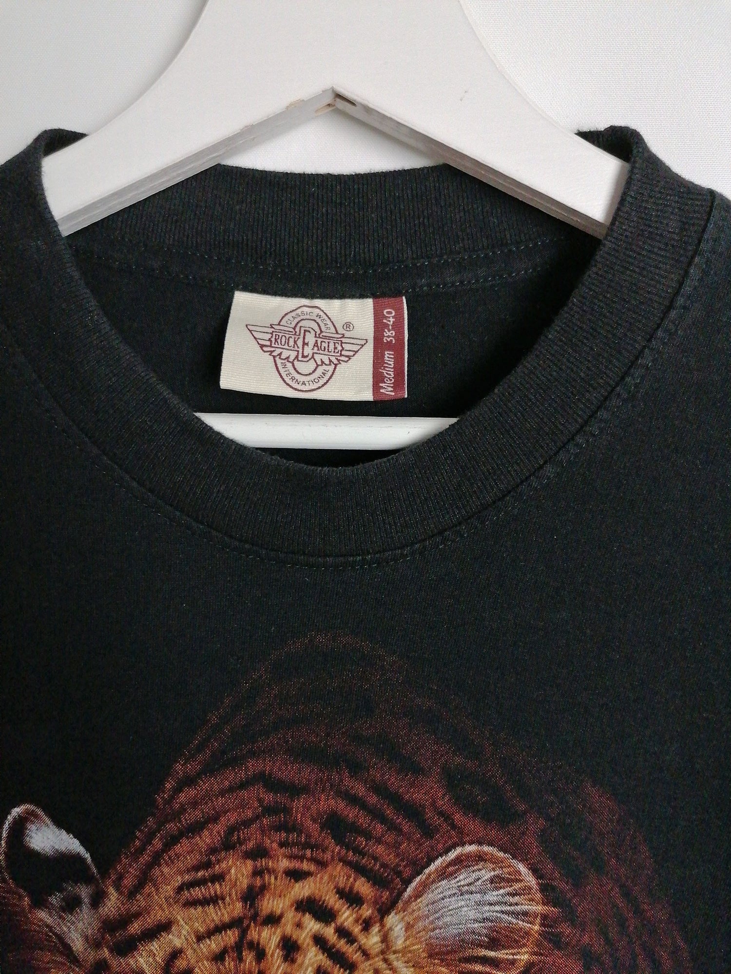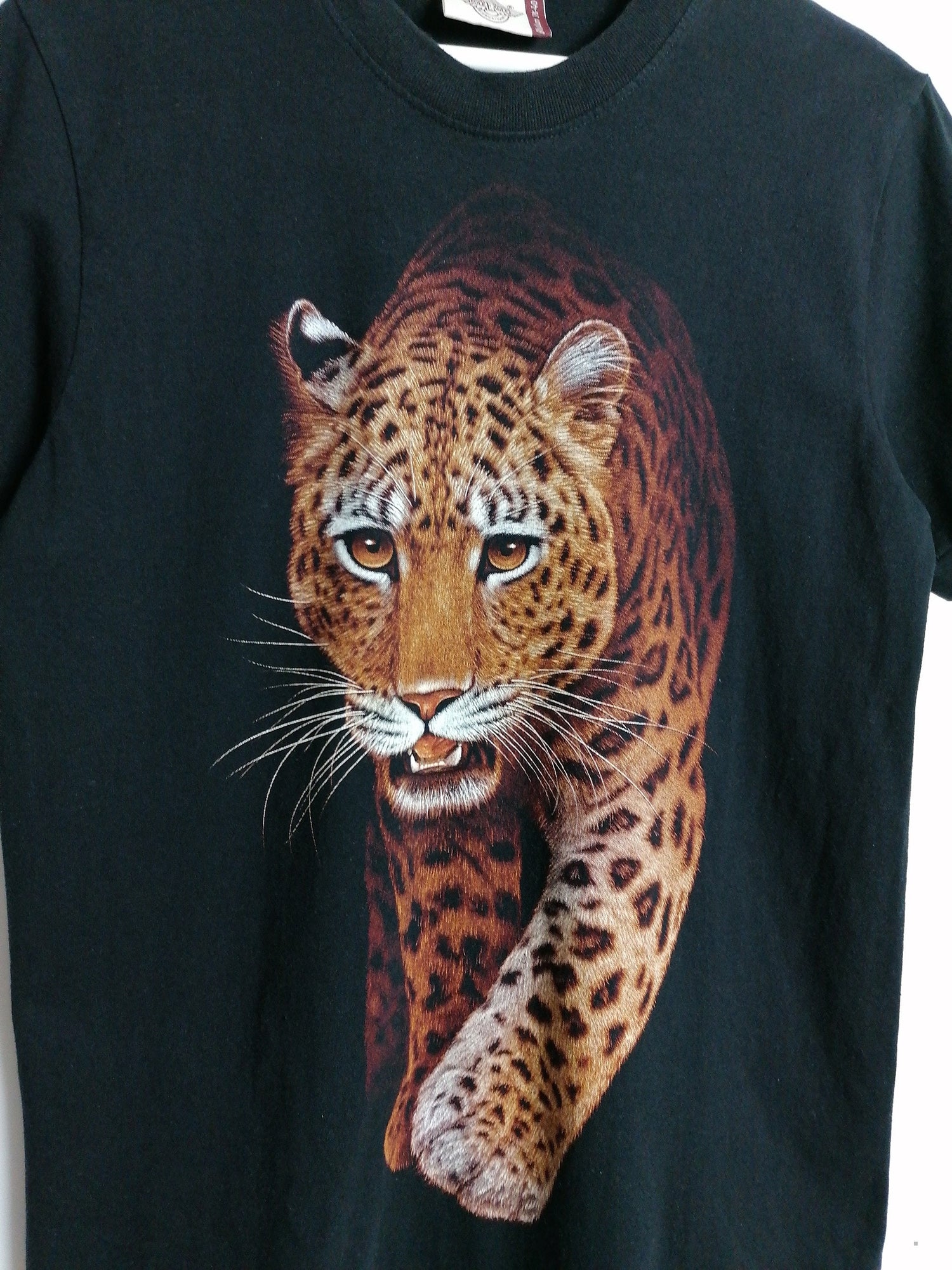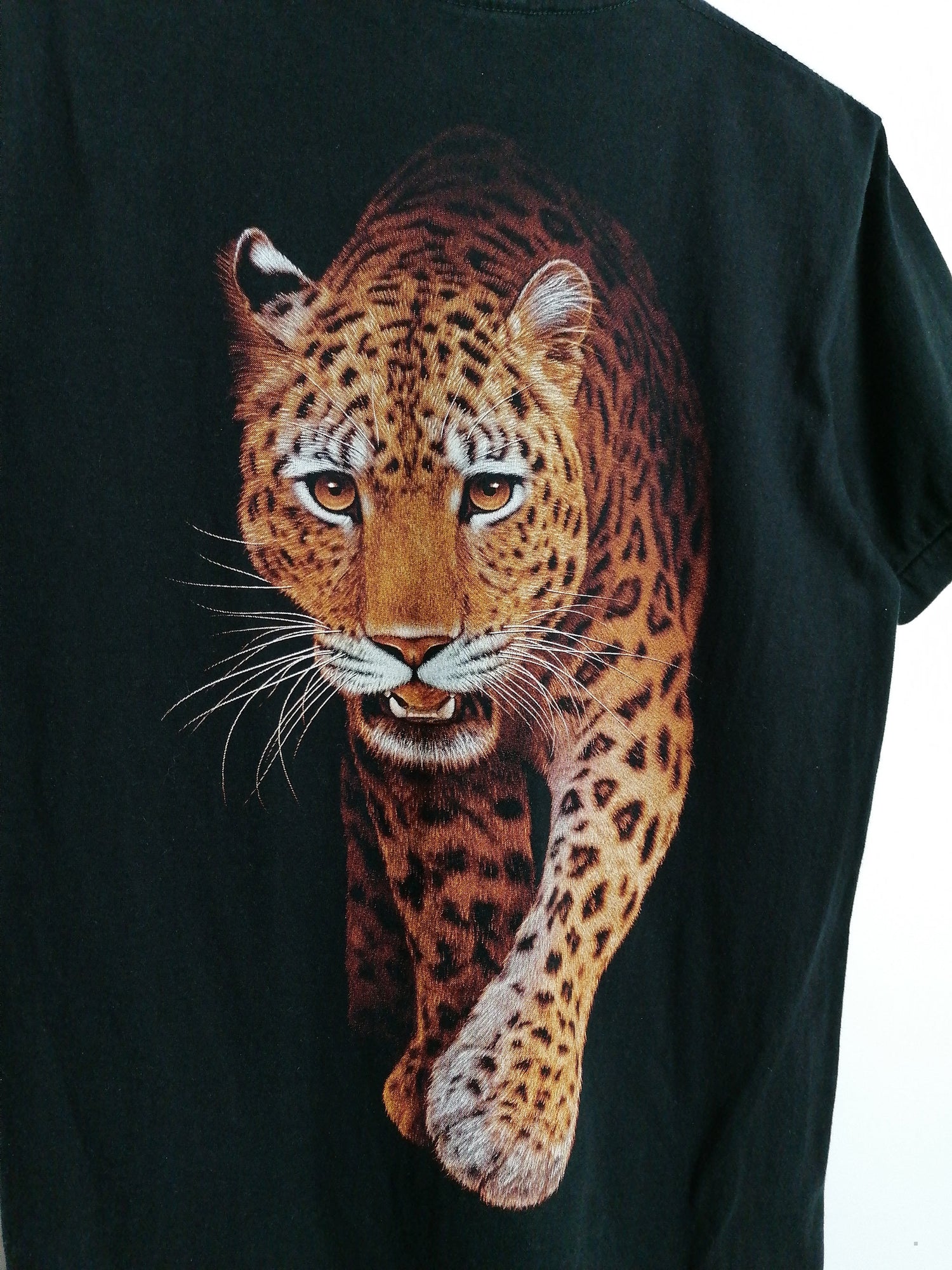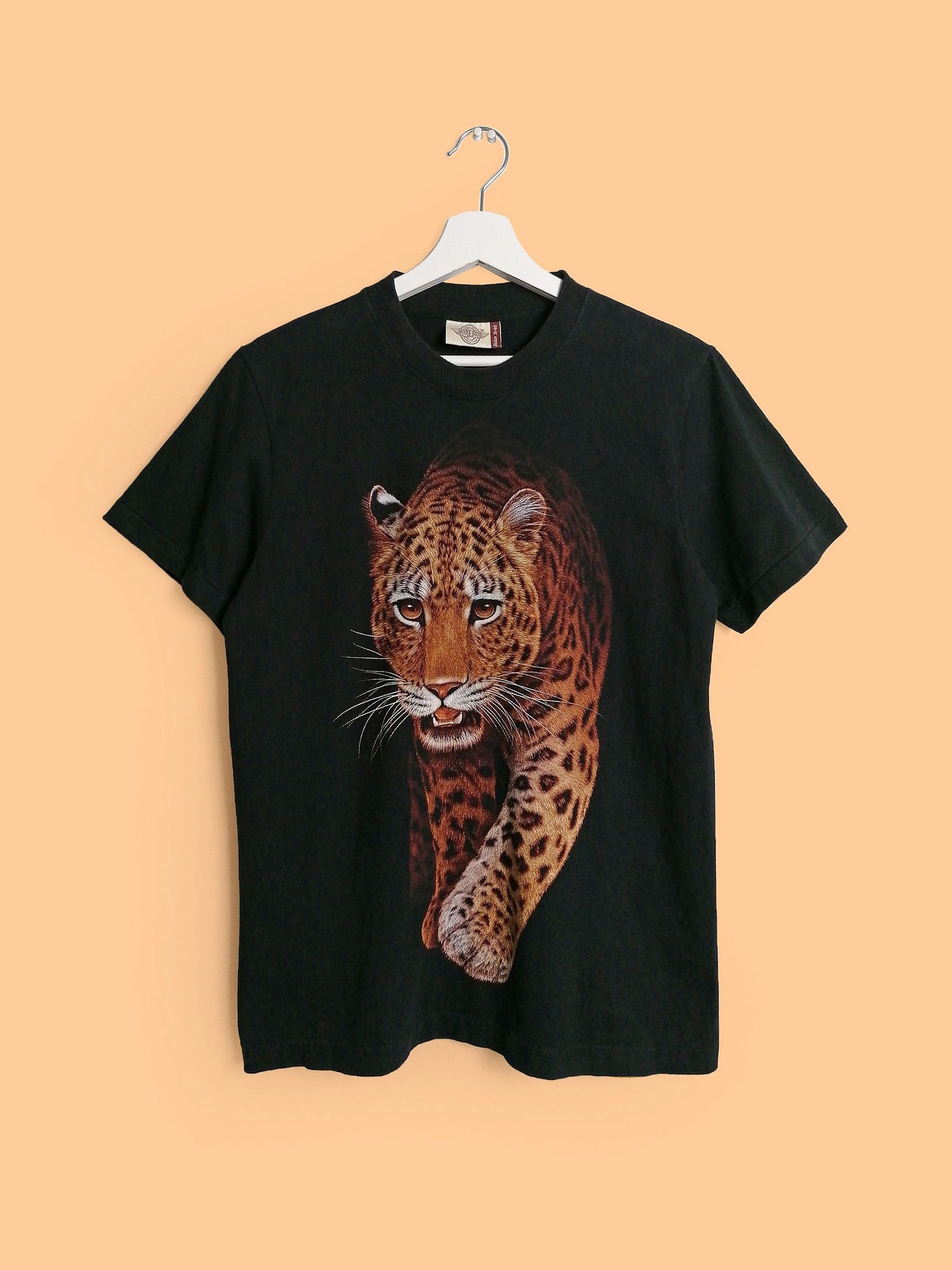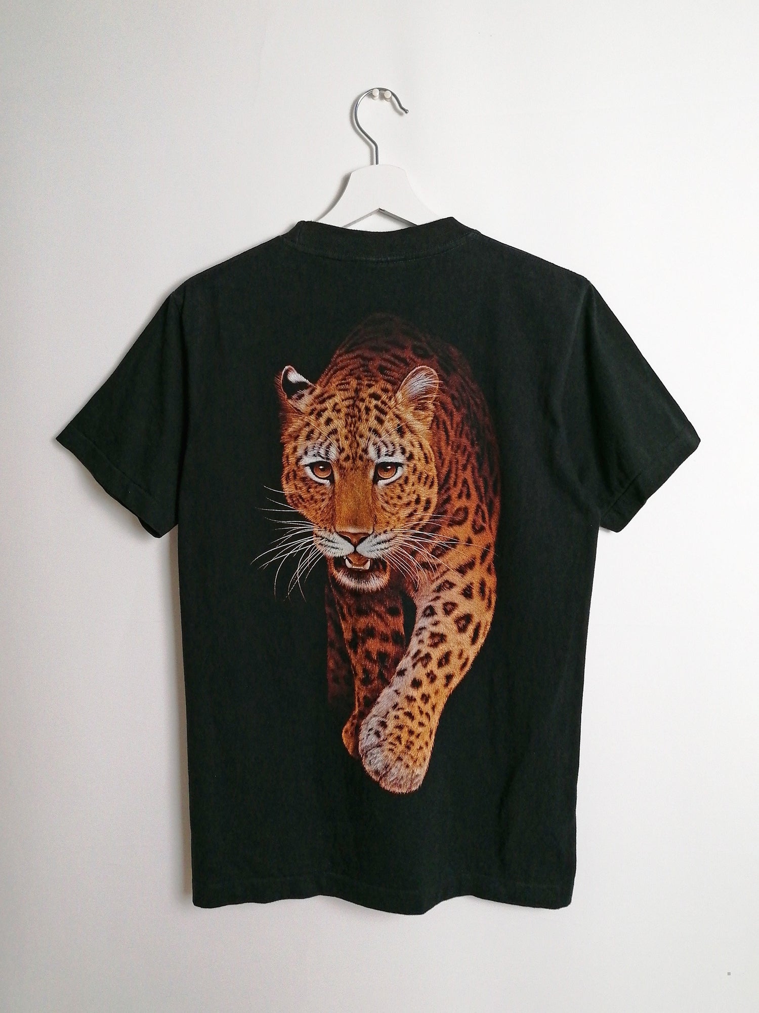 Beautiful vintage 90's Rock Eagle leopard print t-shirt, front and back.
