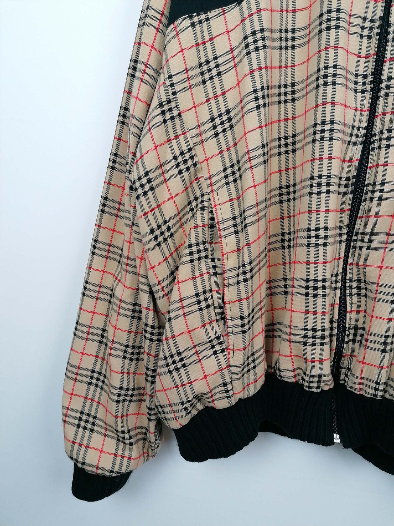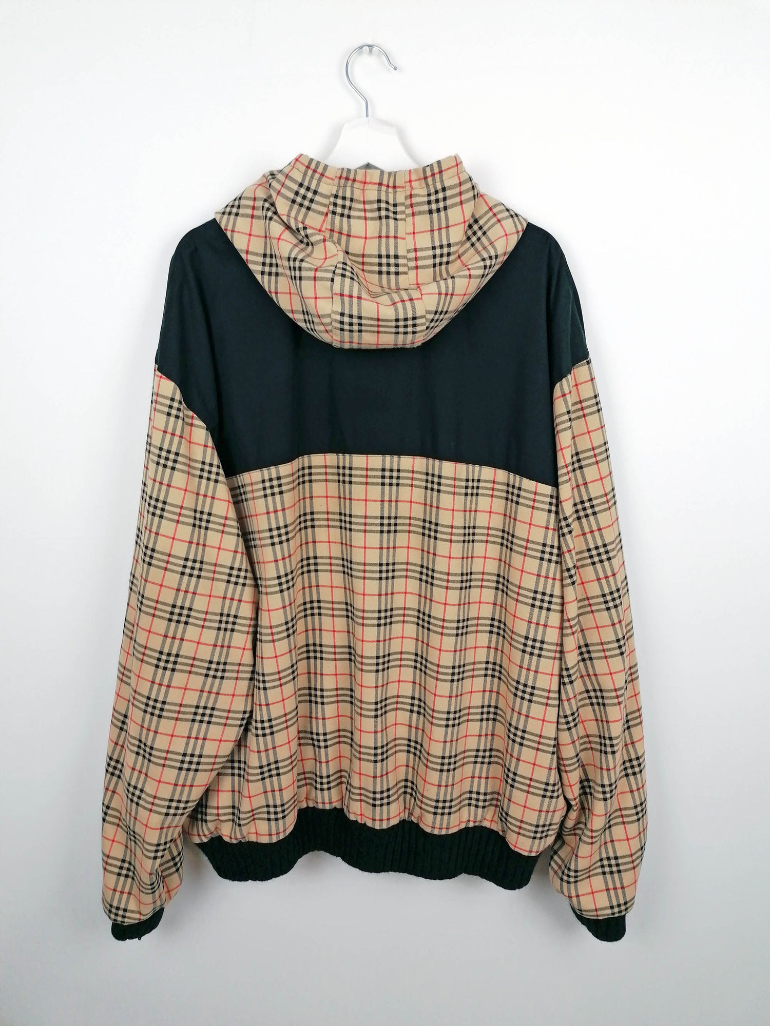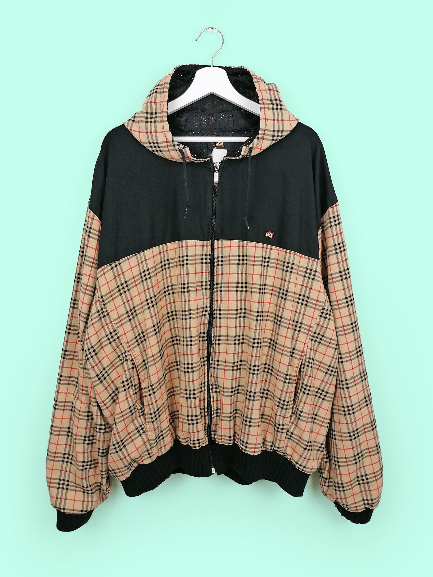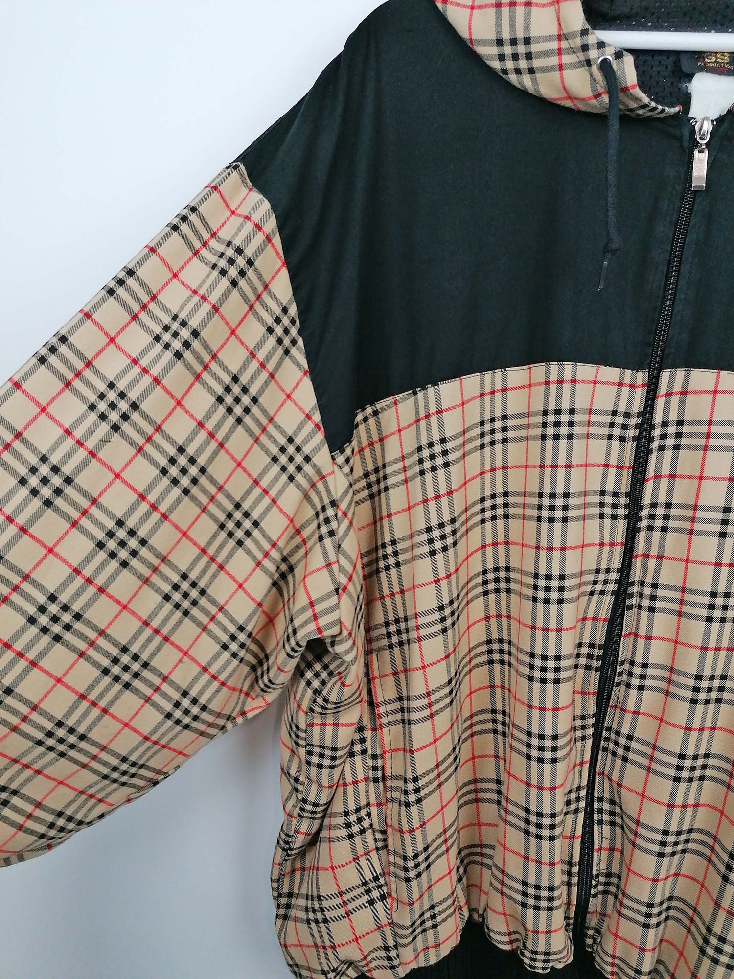 90's Y2K Plaid Check Oversized Lightweight Bomber Jacket with Hood - size XXL