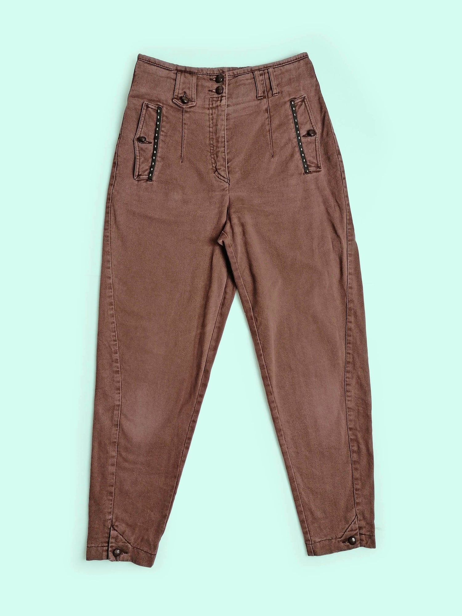 Vintage 80's 90's Zerres high waist jeans, tapered leg, faded brownΒ wash, special pockets detail.