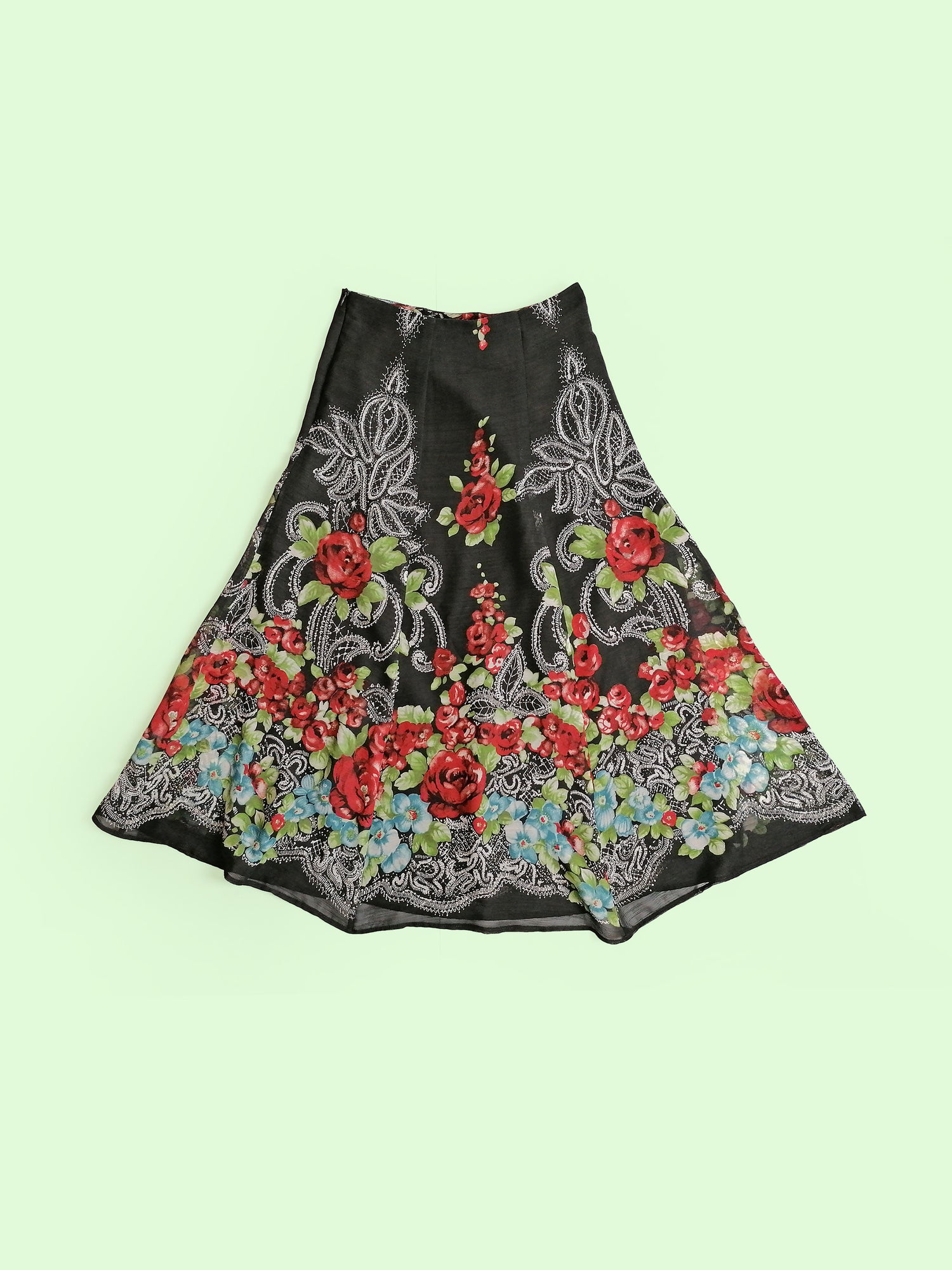 Gorgeous vintage Y2K Betty Barclay skirt, polyester mesh sheer top layer, acetate lining.