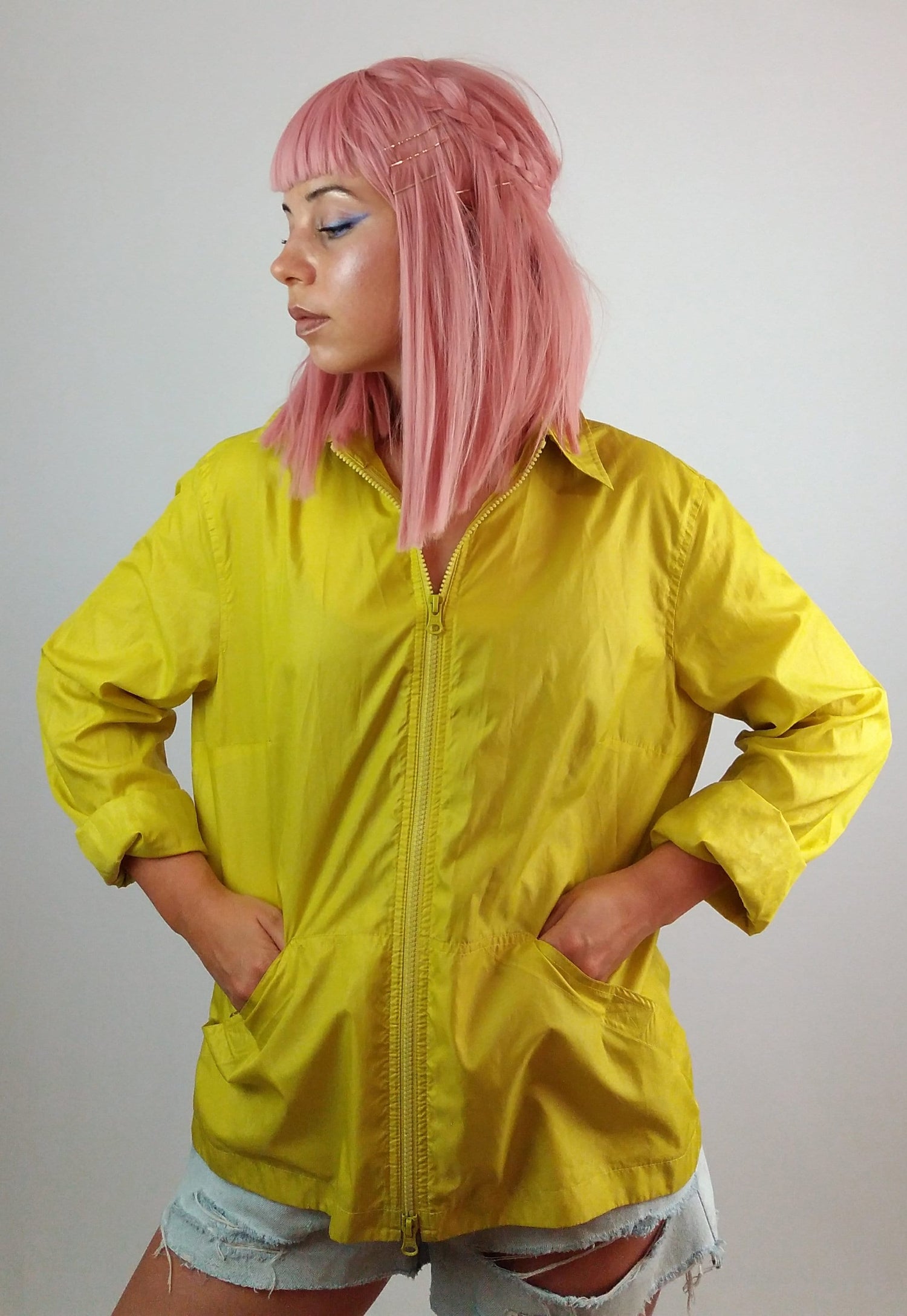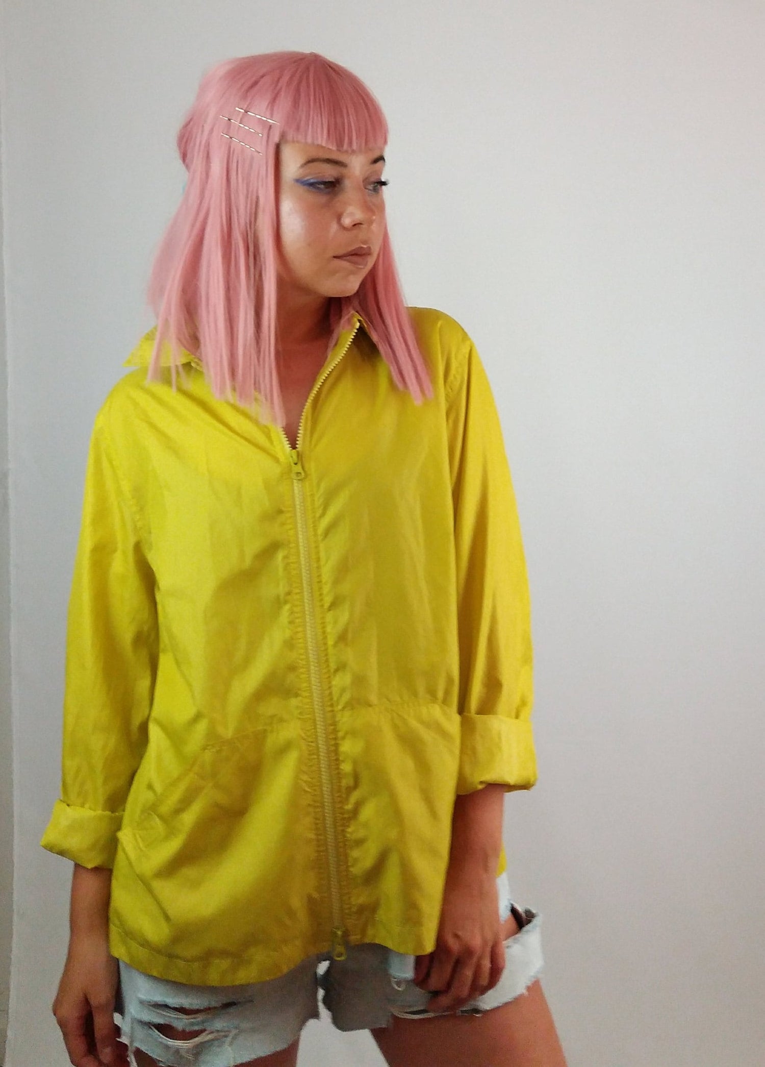 BETTY BARCLAY Y2K Paper-thin Windbreaker Chartreuse - size M-L / GB 16 / F 44