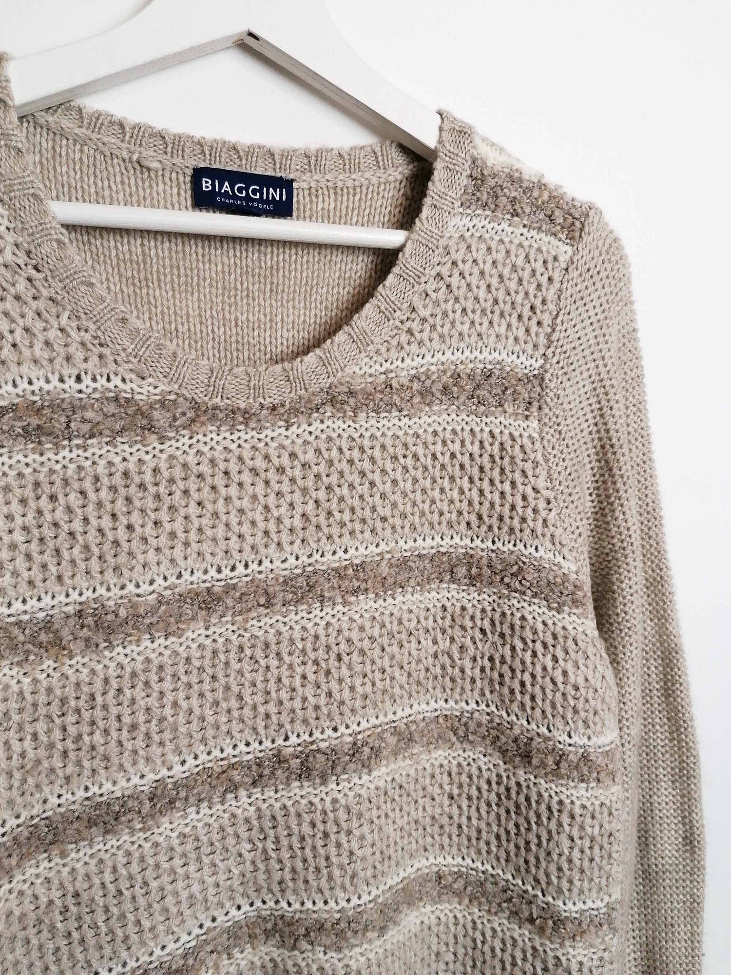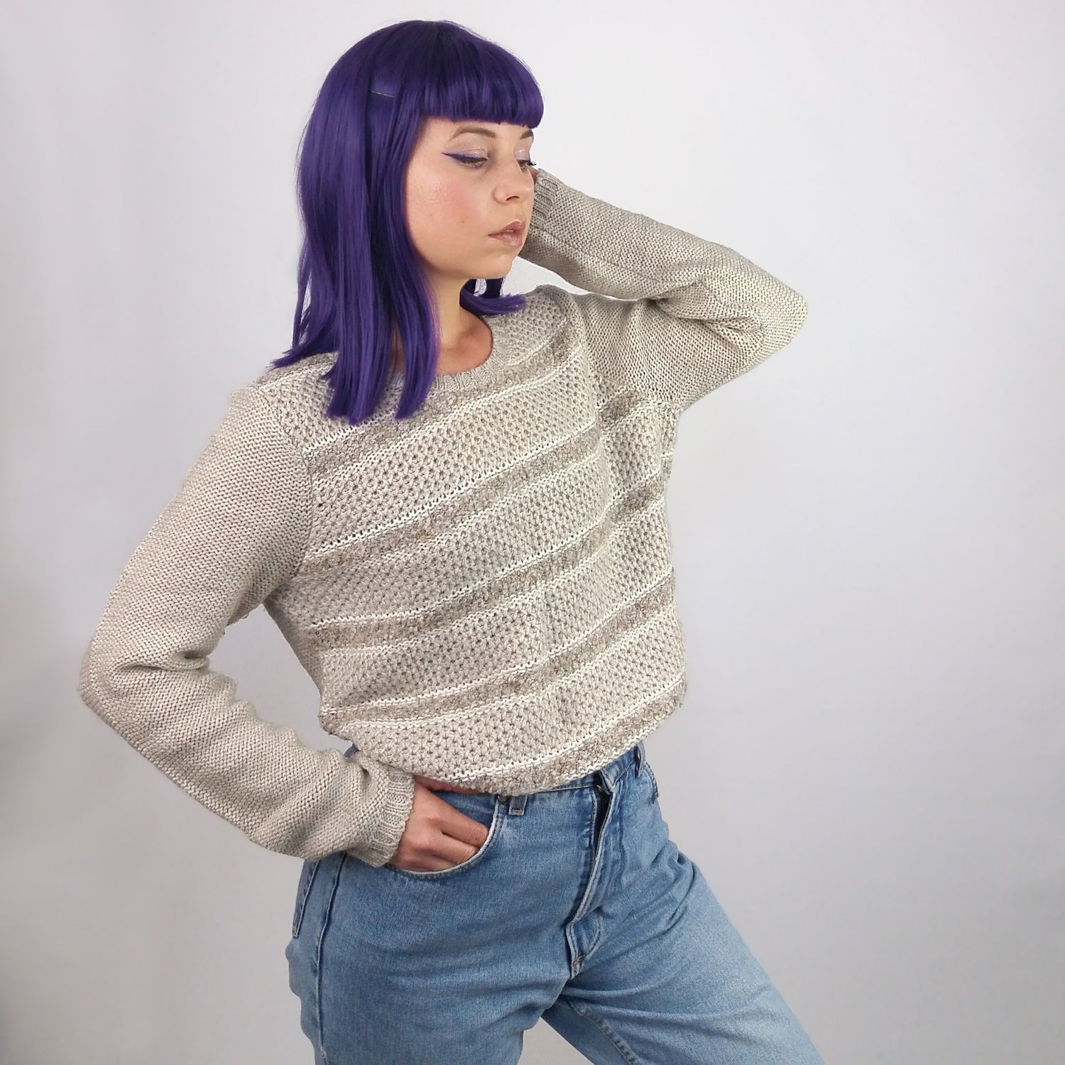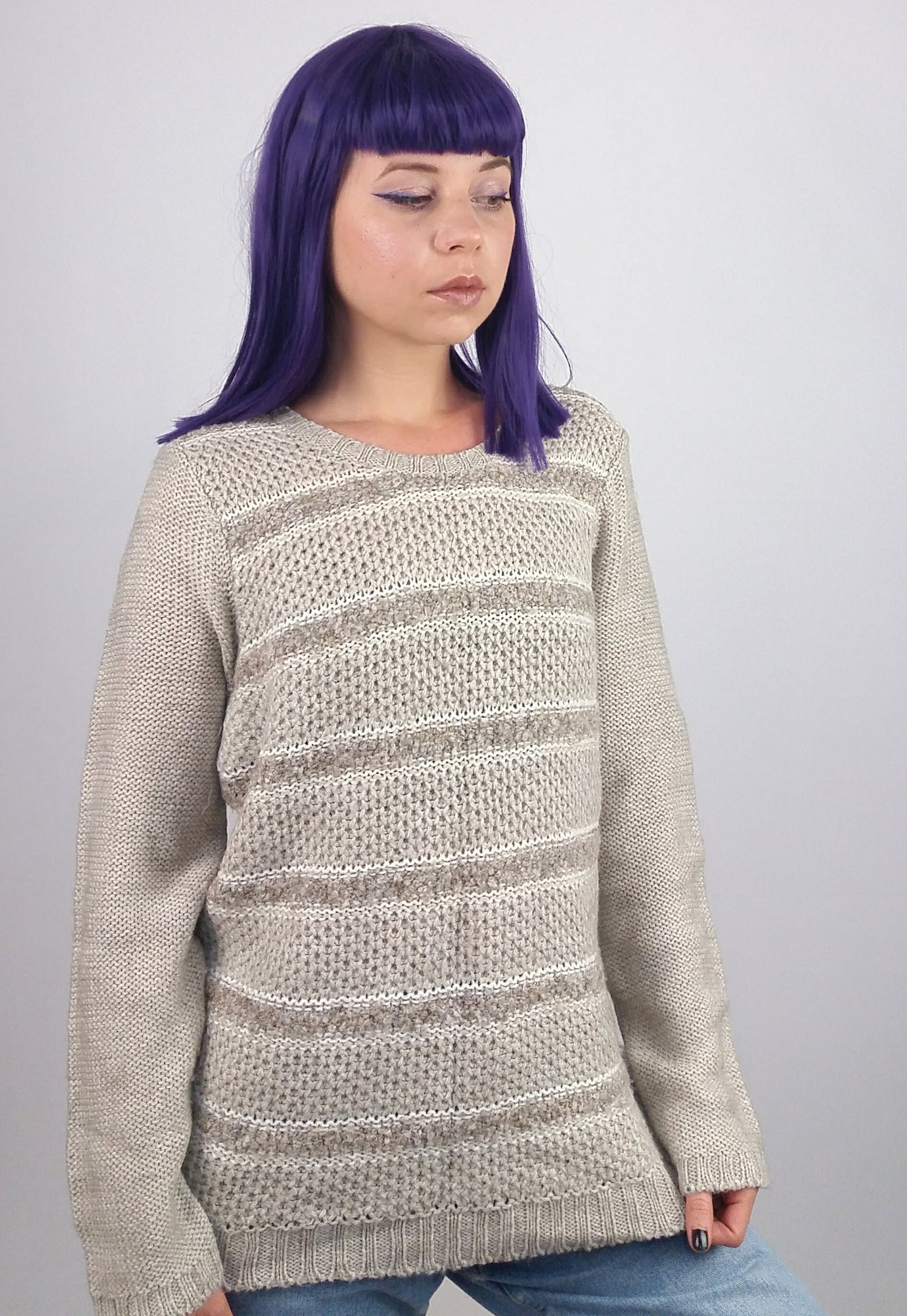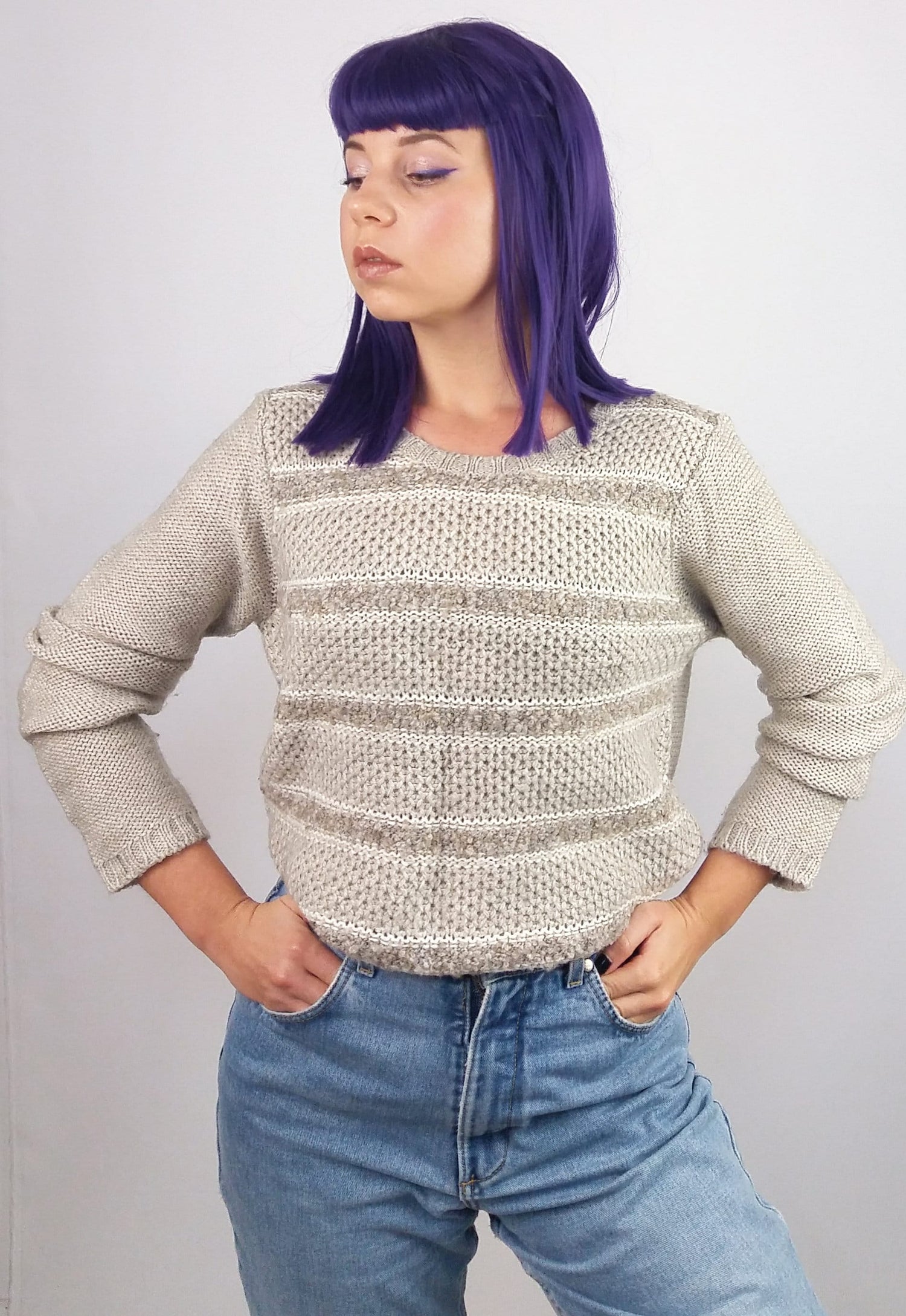 Retro chic knitted sweater, long sleeves, creamy beige tones. Very soft and comfortable, relaxed fit, warm and cozy wool blend.