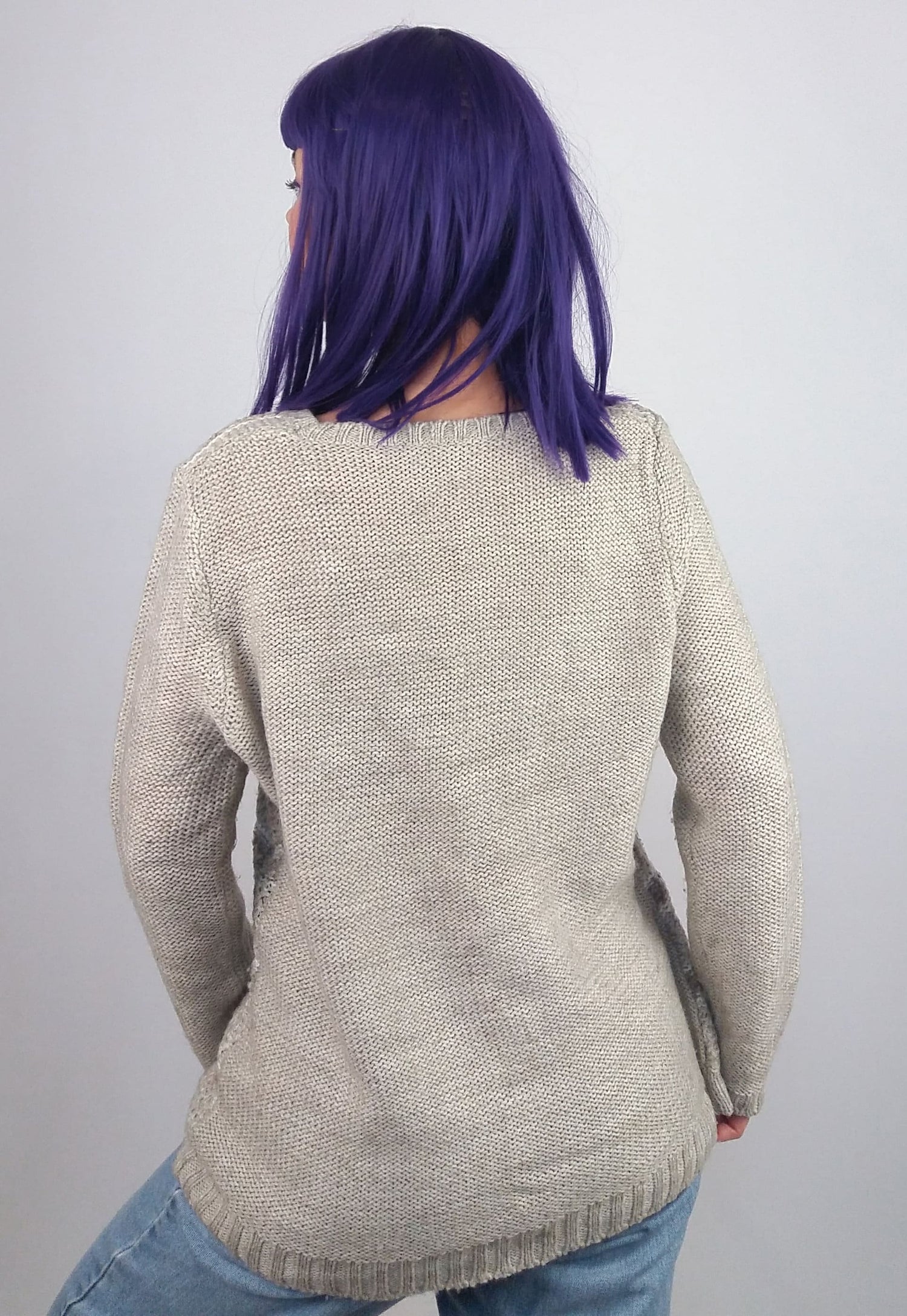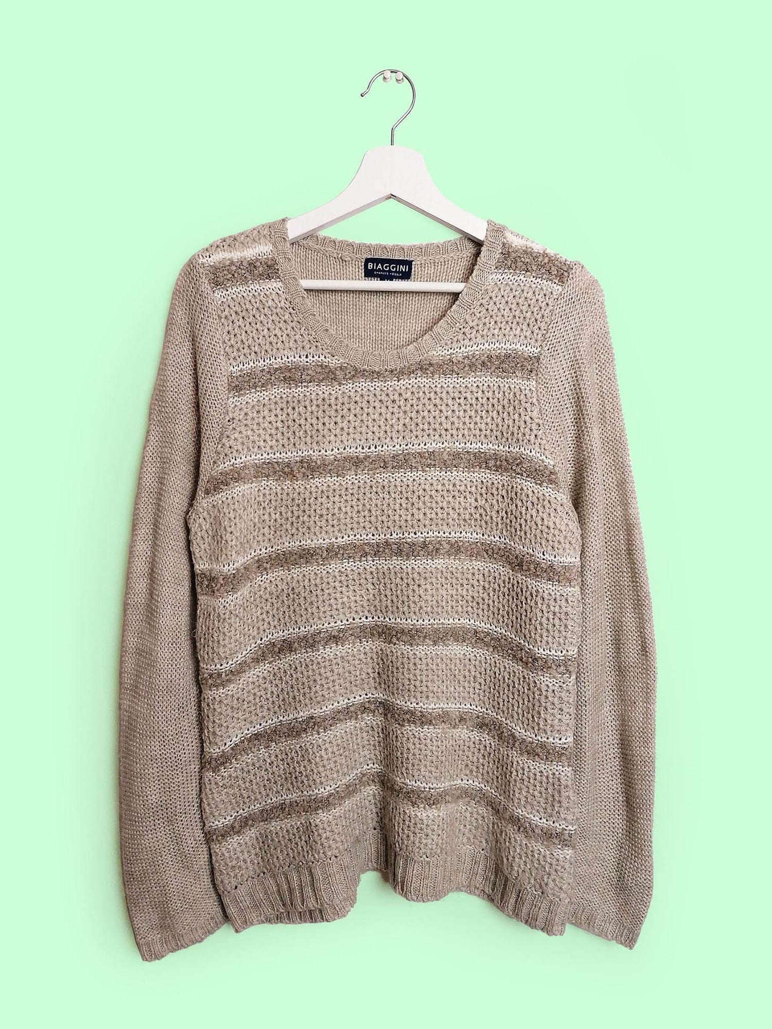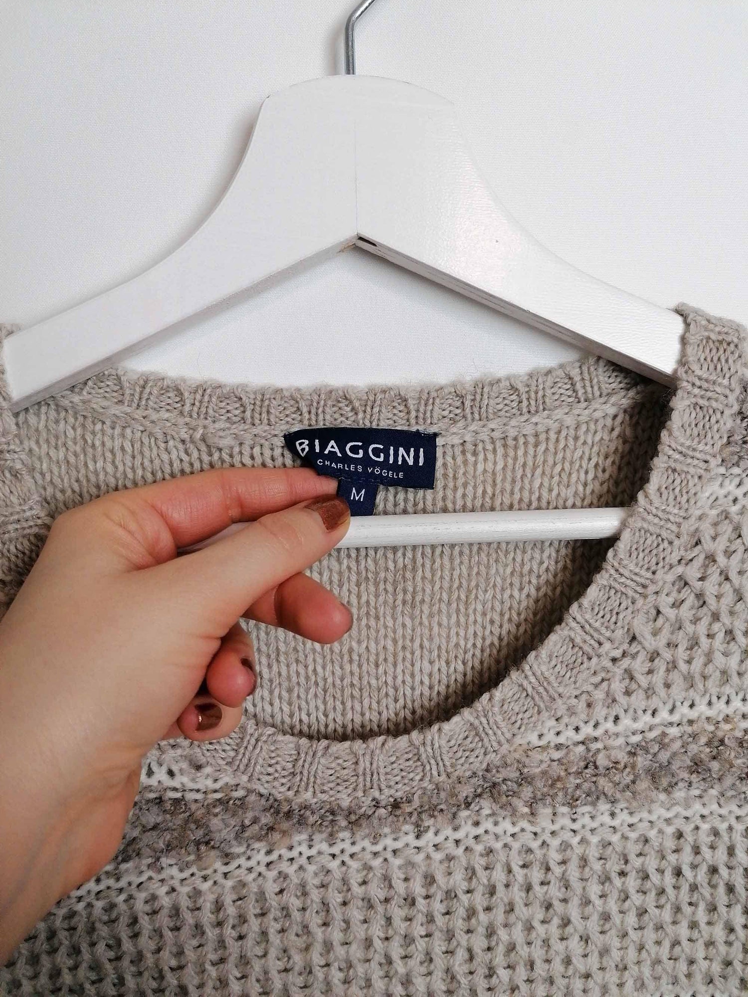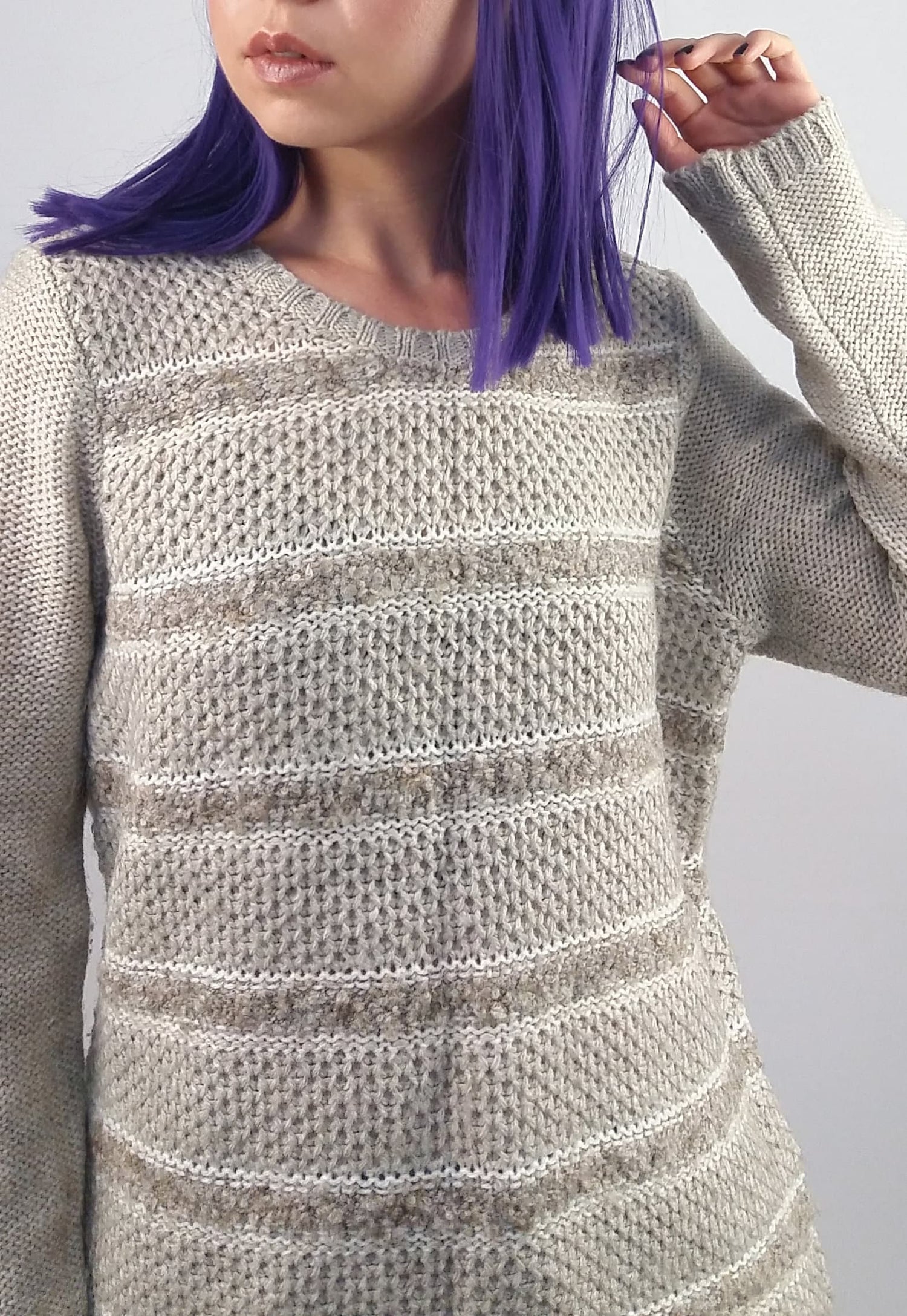 Retro chic knitted sweater, long sleeves, creamy beige tones. Very soft and comfortable, relaxed fit, warm and cozy wool blend.