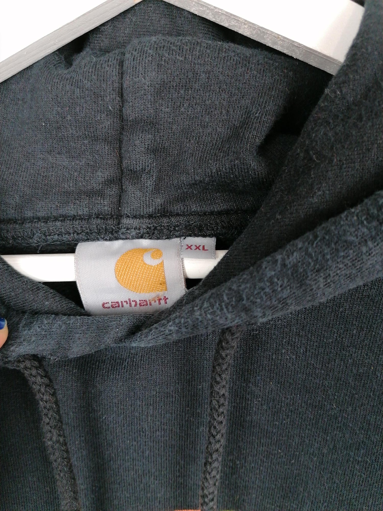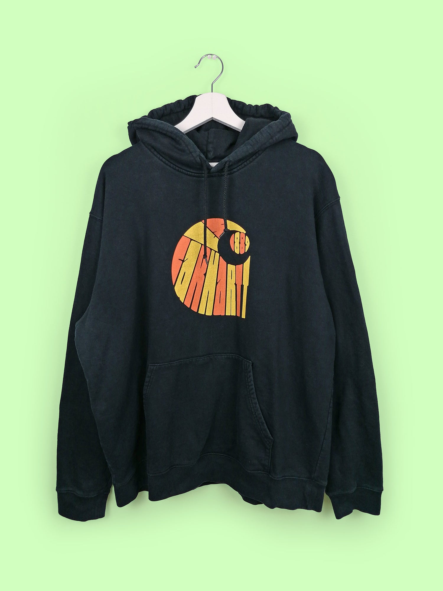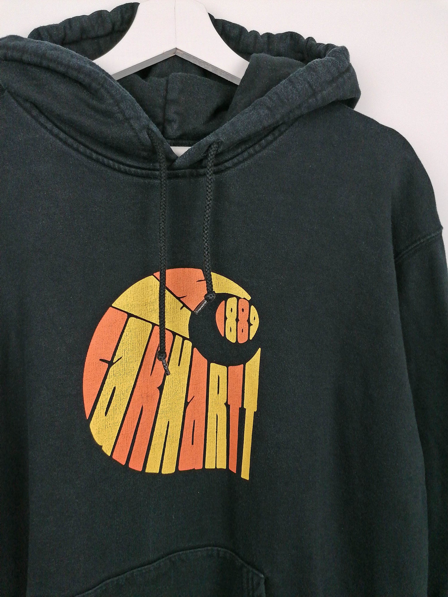 Carhartt 1989 logo hoodie in black, front pouch-pocket. Not sure of the item's authenticity, but it's still a high quality product, great logo design, hence the super friendly price.