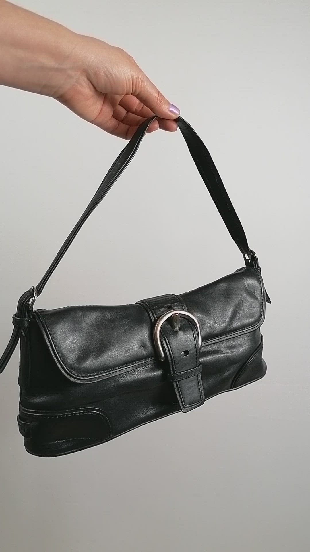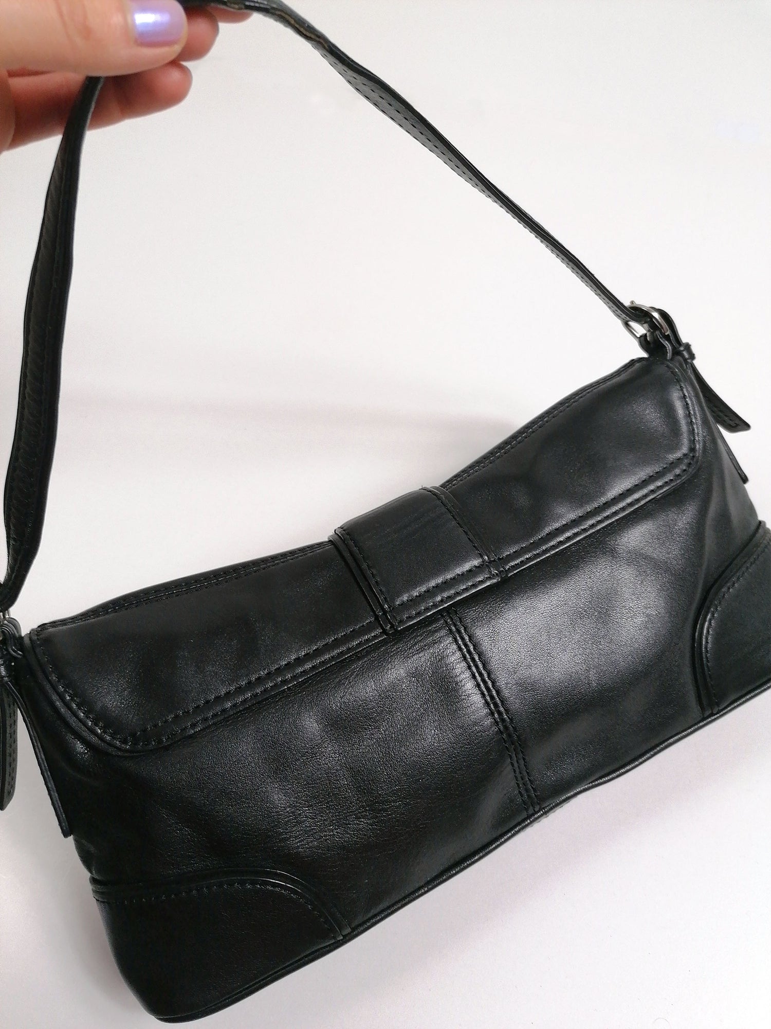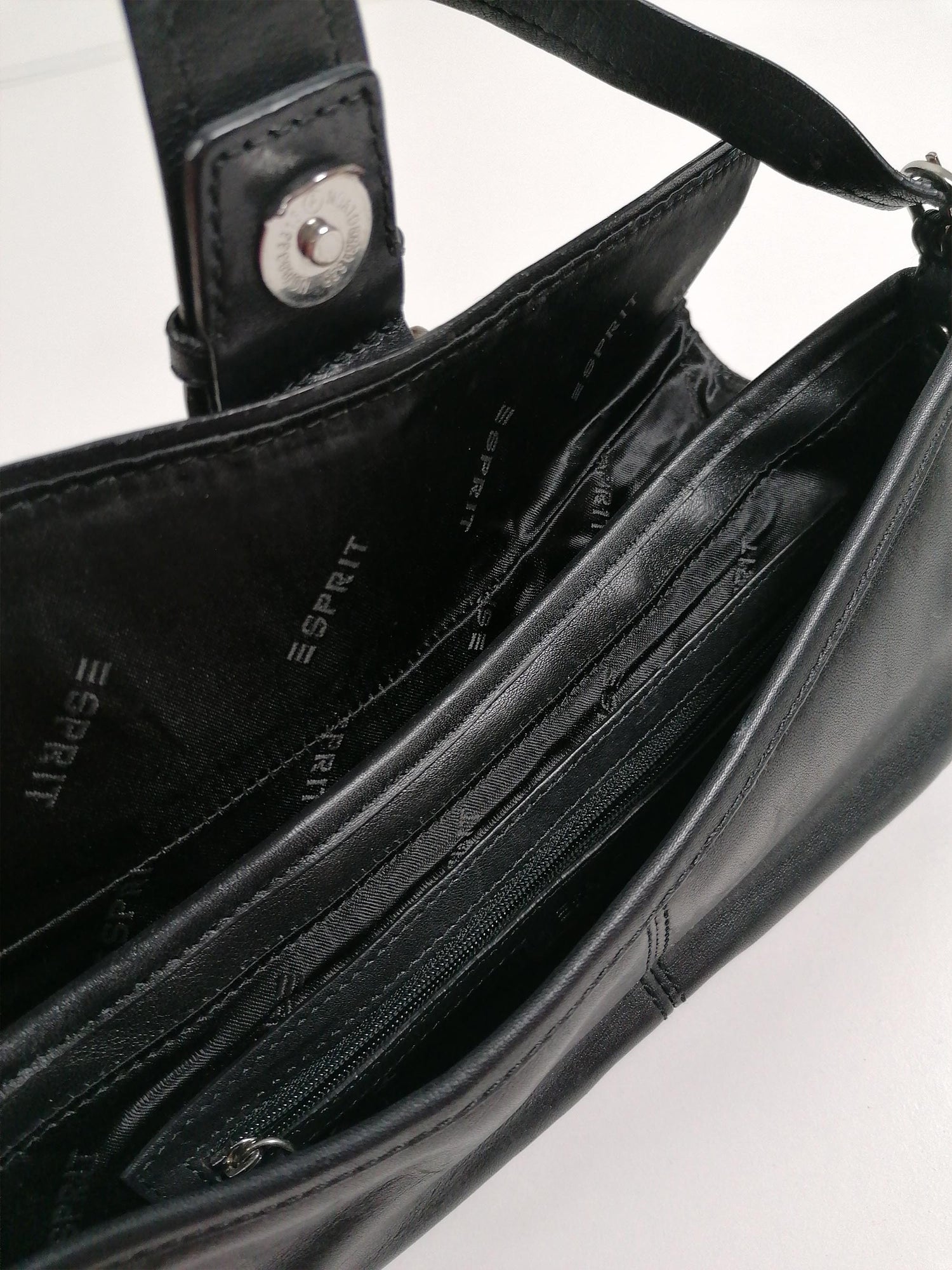 ESPRIT vintage Y2K small baguette bag, genuine leather, black, adjustable strap.