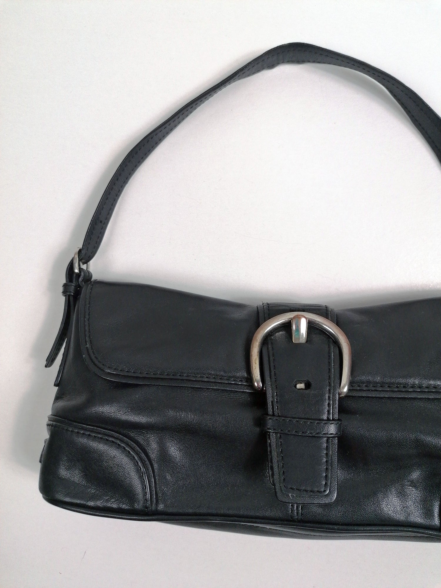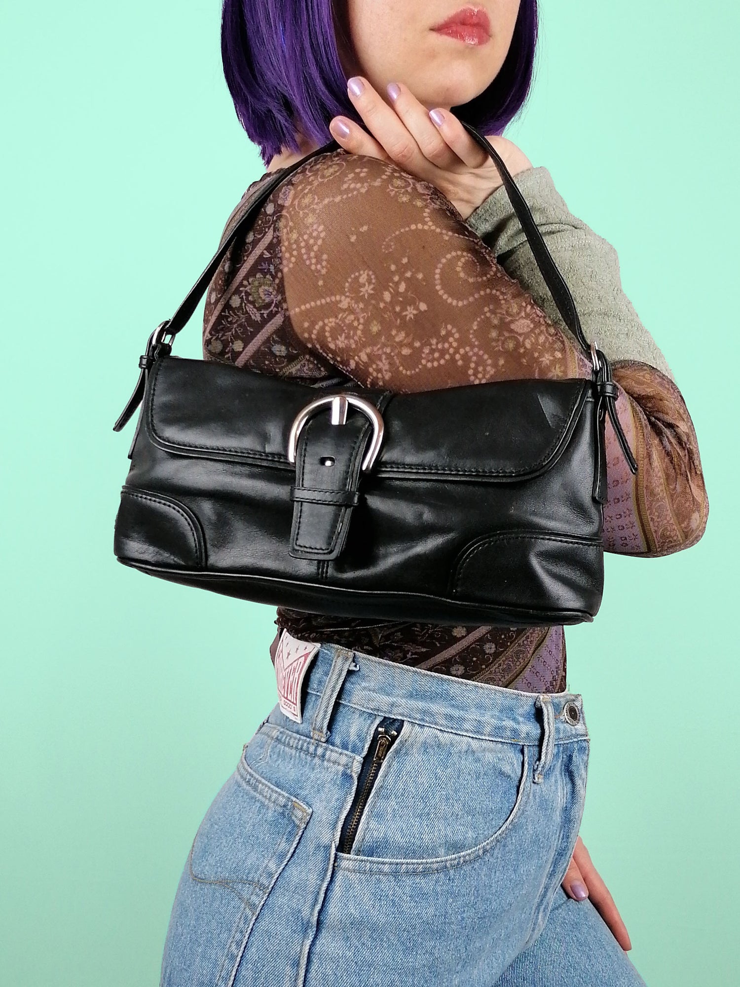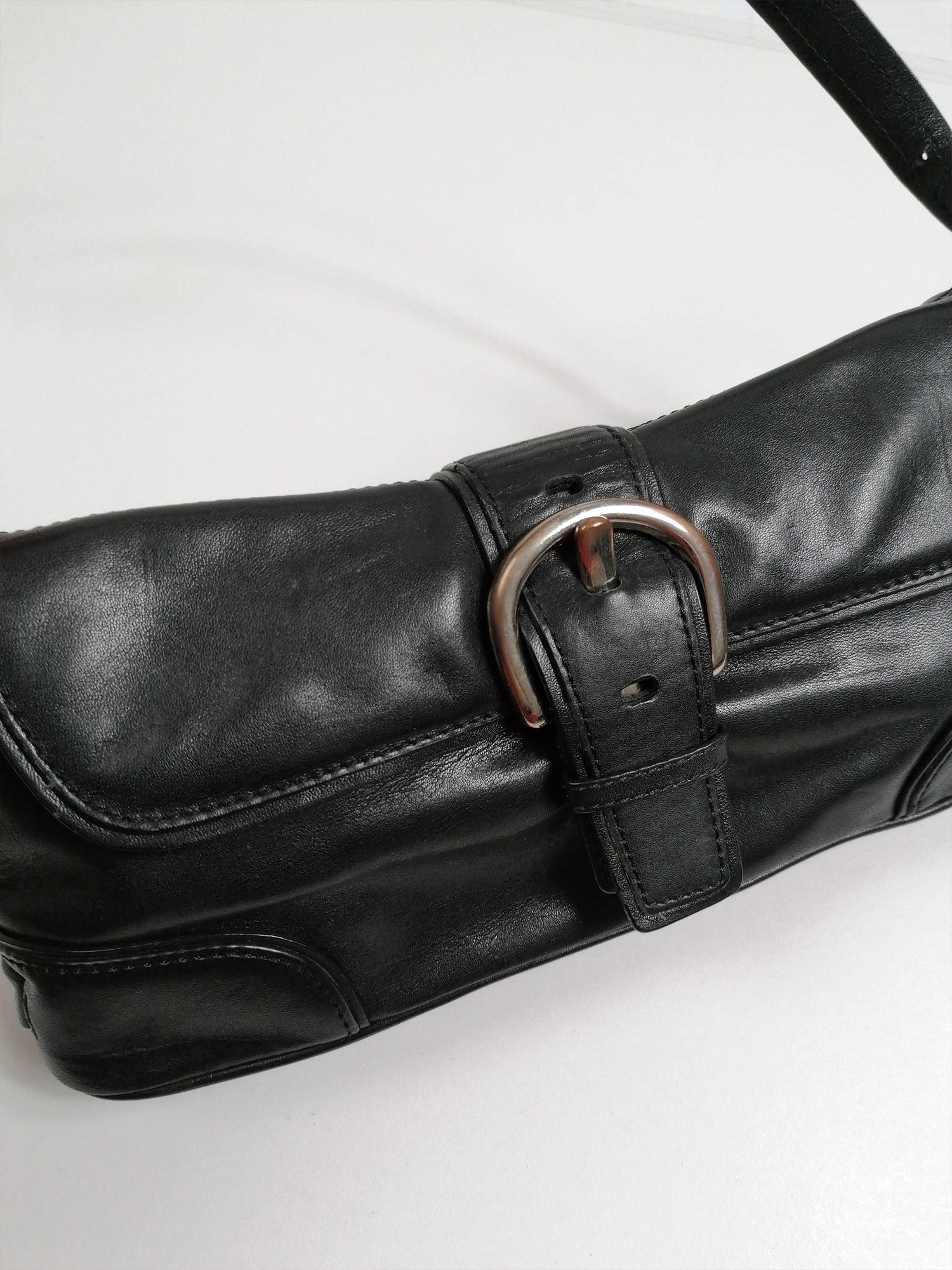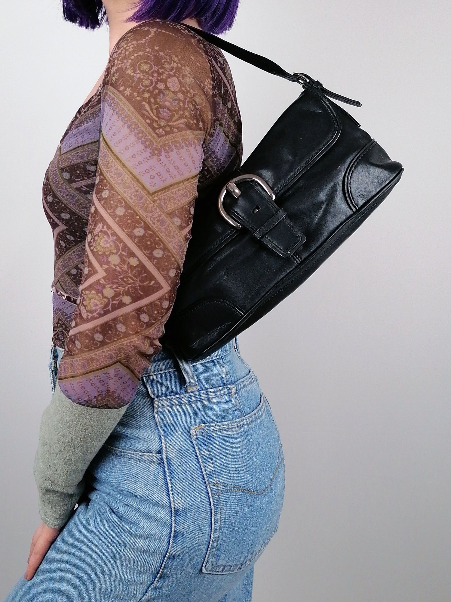 ESPRIT vintage Y2K small baguette bag, genuine leather, black, adjustable strap.