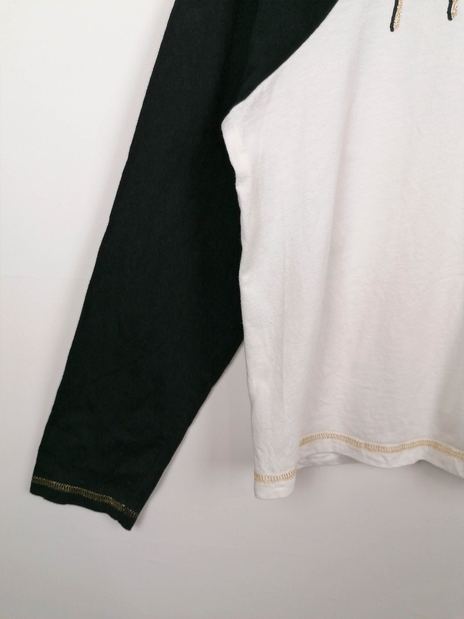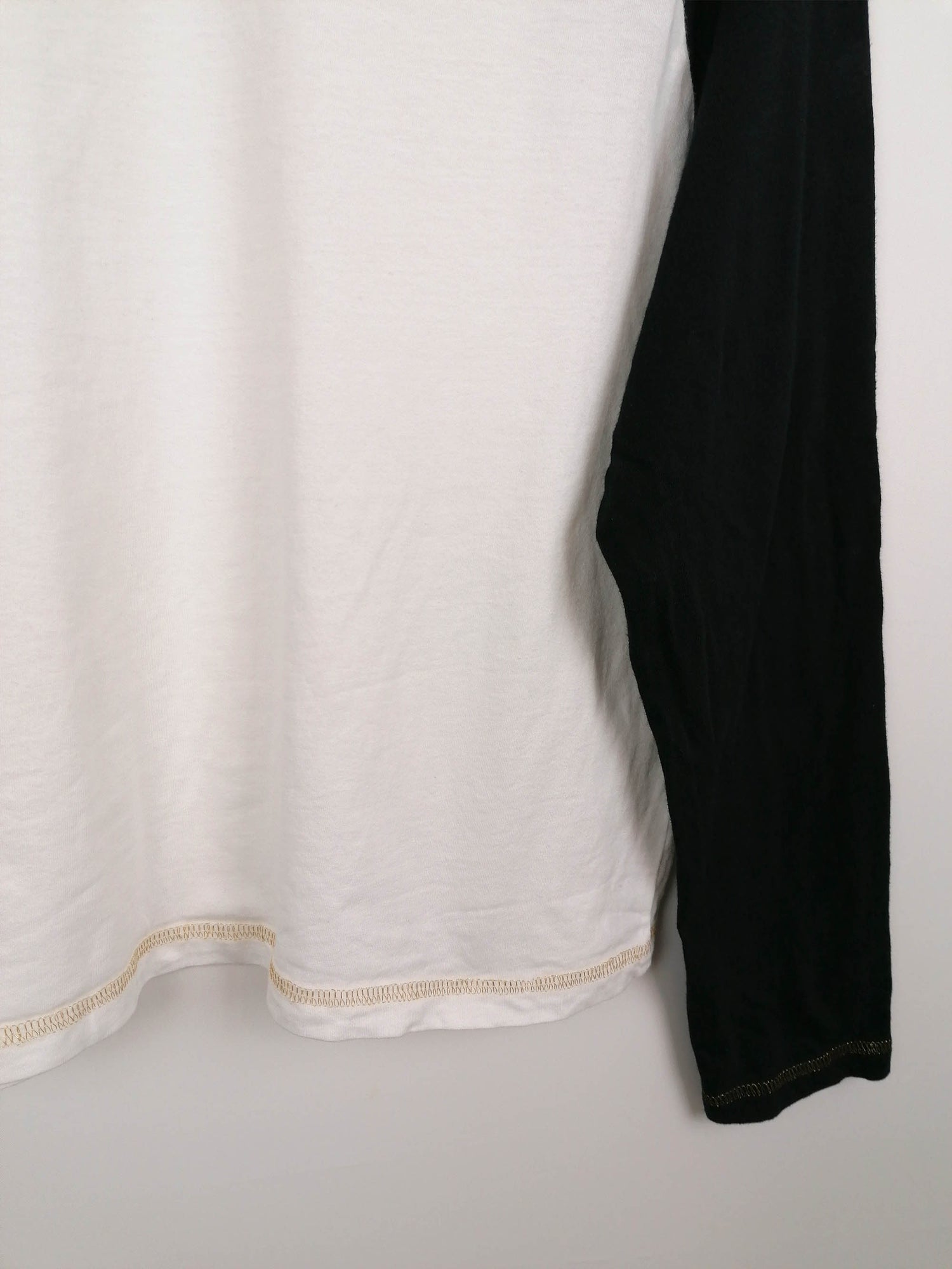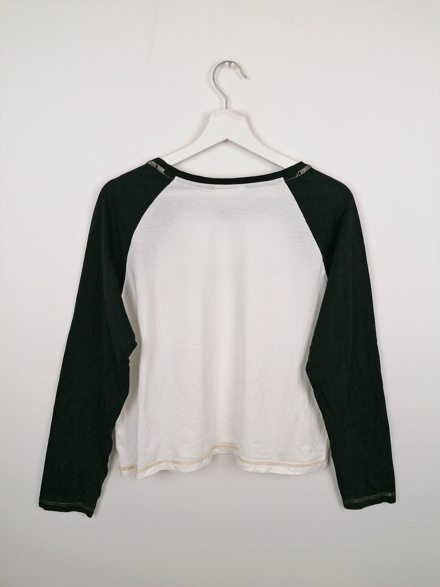 Vintage Friends TV series t-shirt, raglan sleeve, black and white. Gold thread stitching and gold glitter on logo.