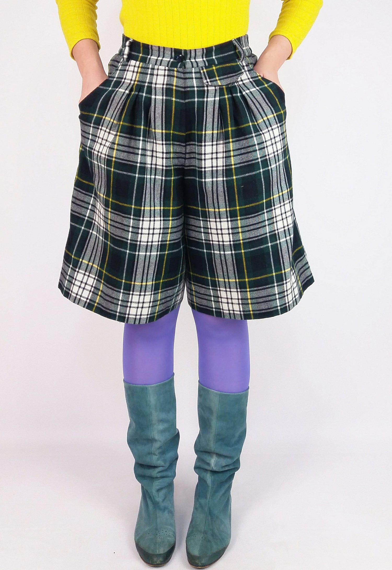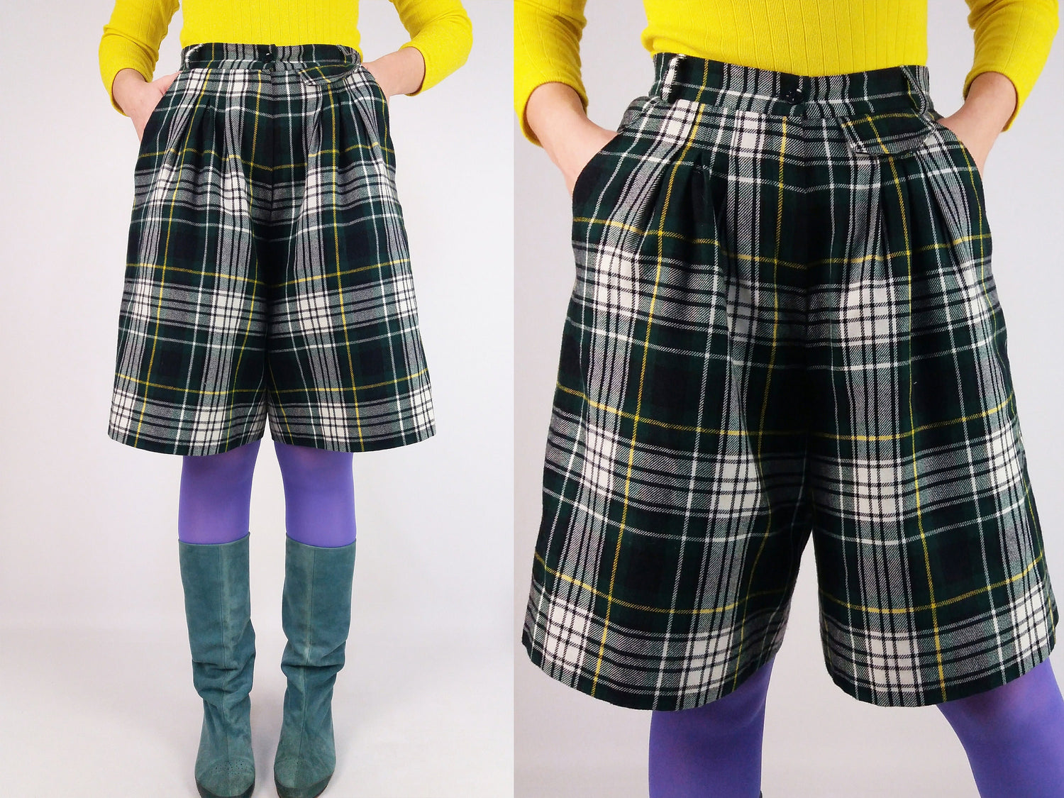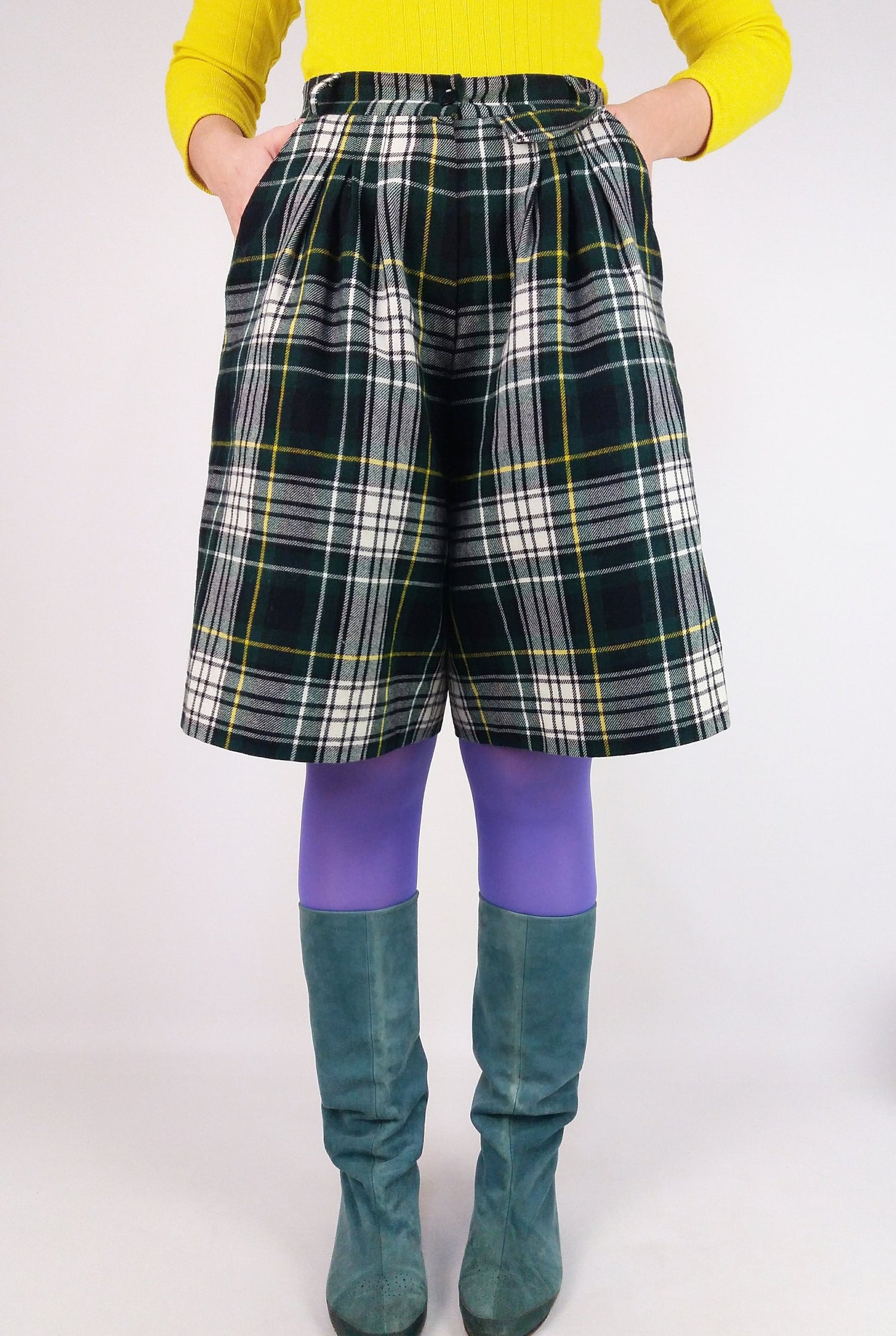 Gorgeous vintage 80's high waist green plaid wool blend culottes.