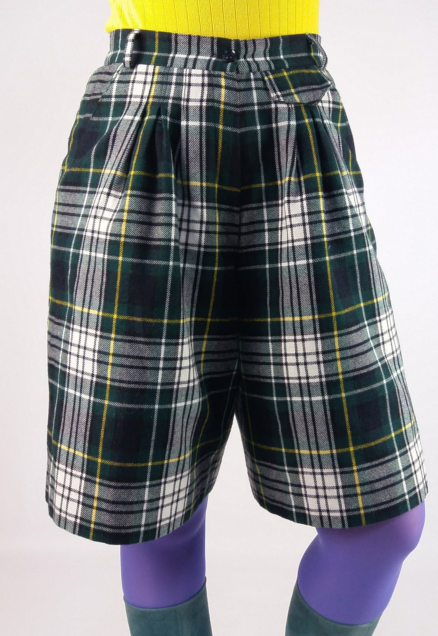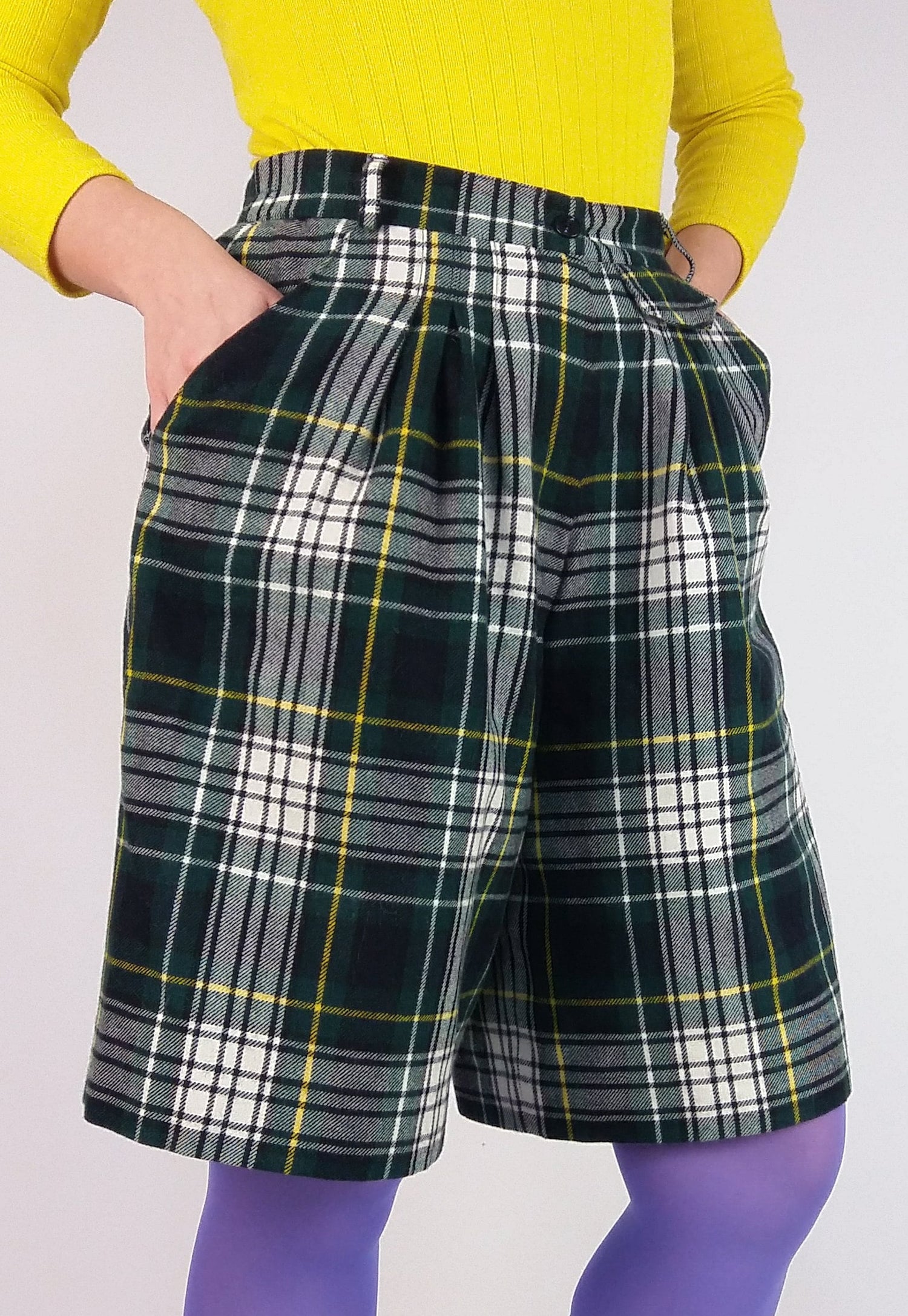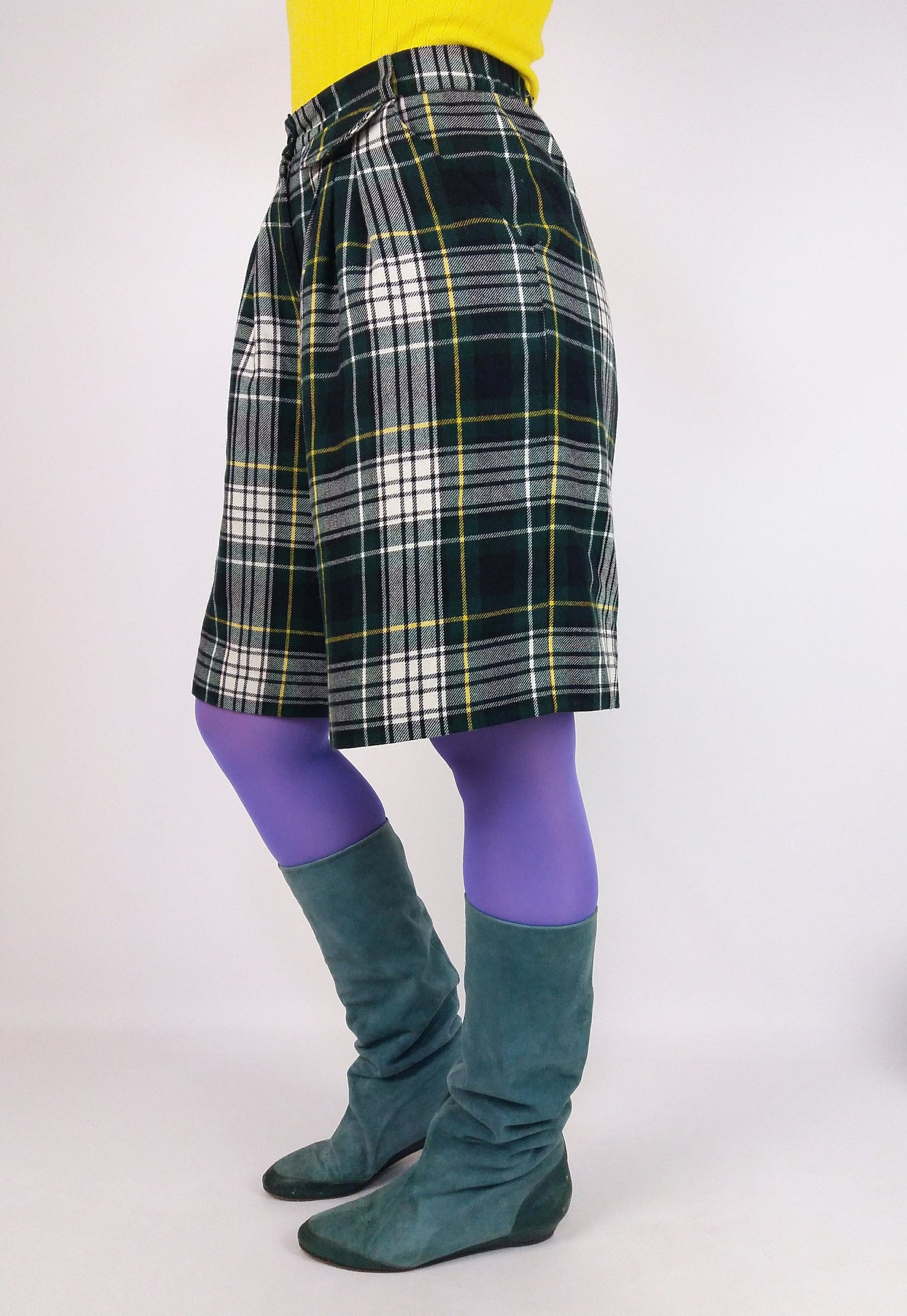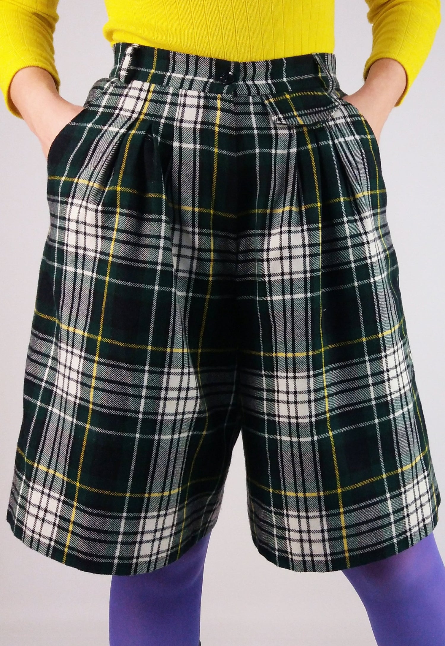 Gorgeous vintage 80's high waist green plaid wool blend culottes.