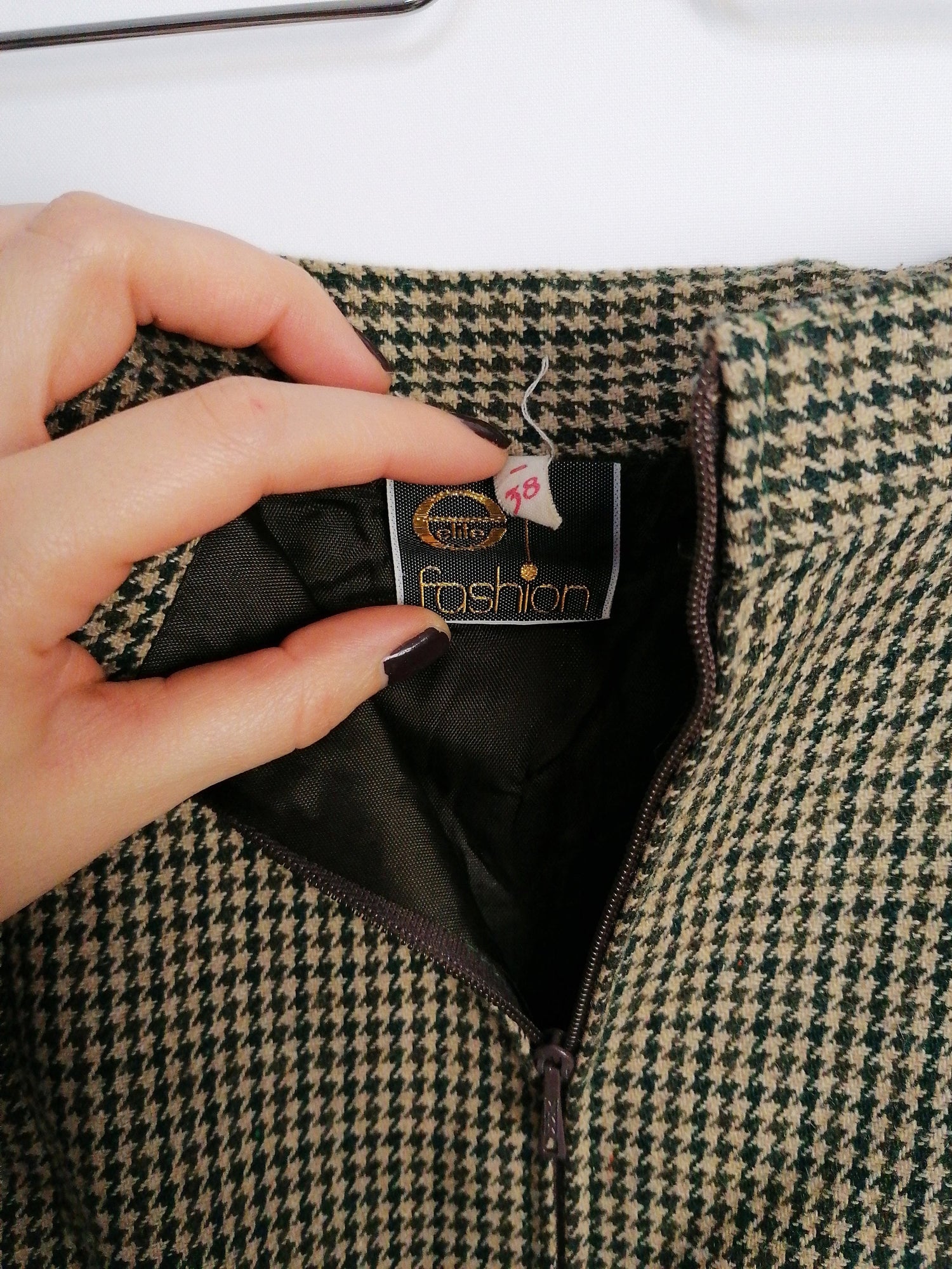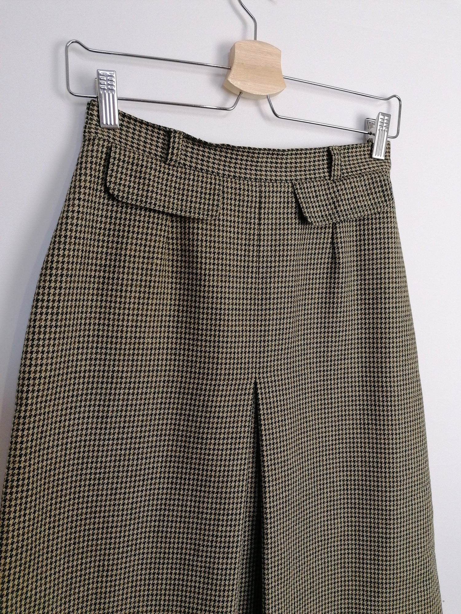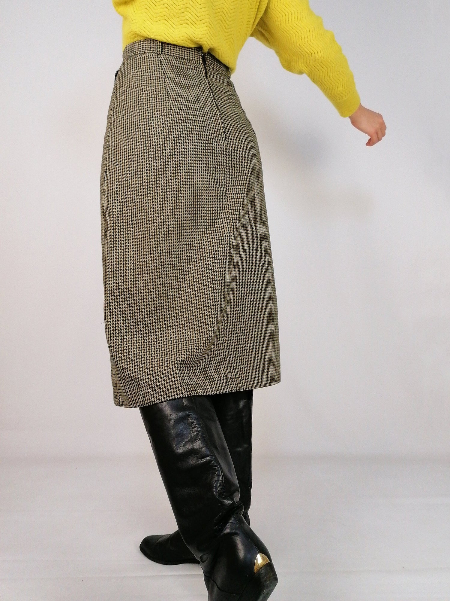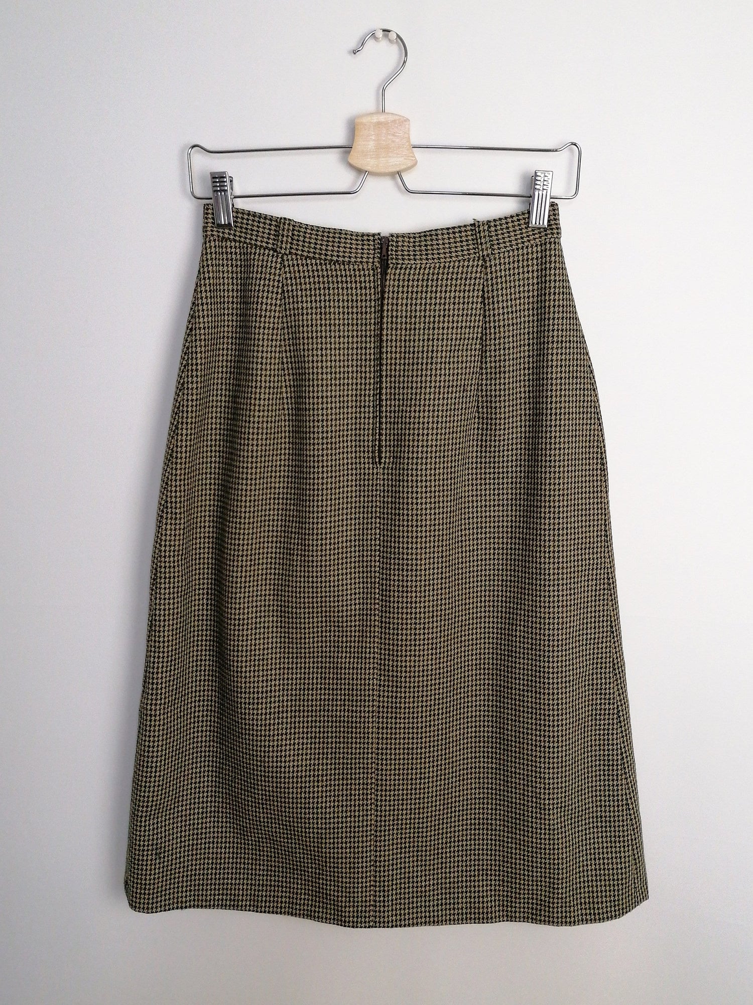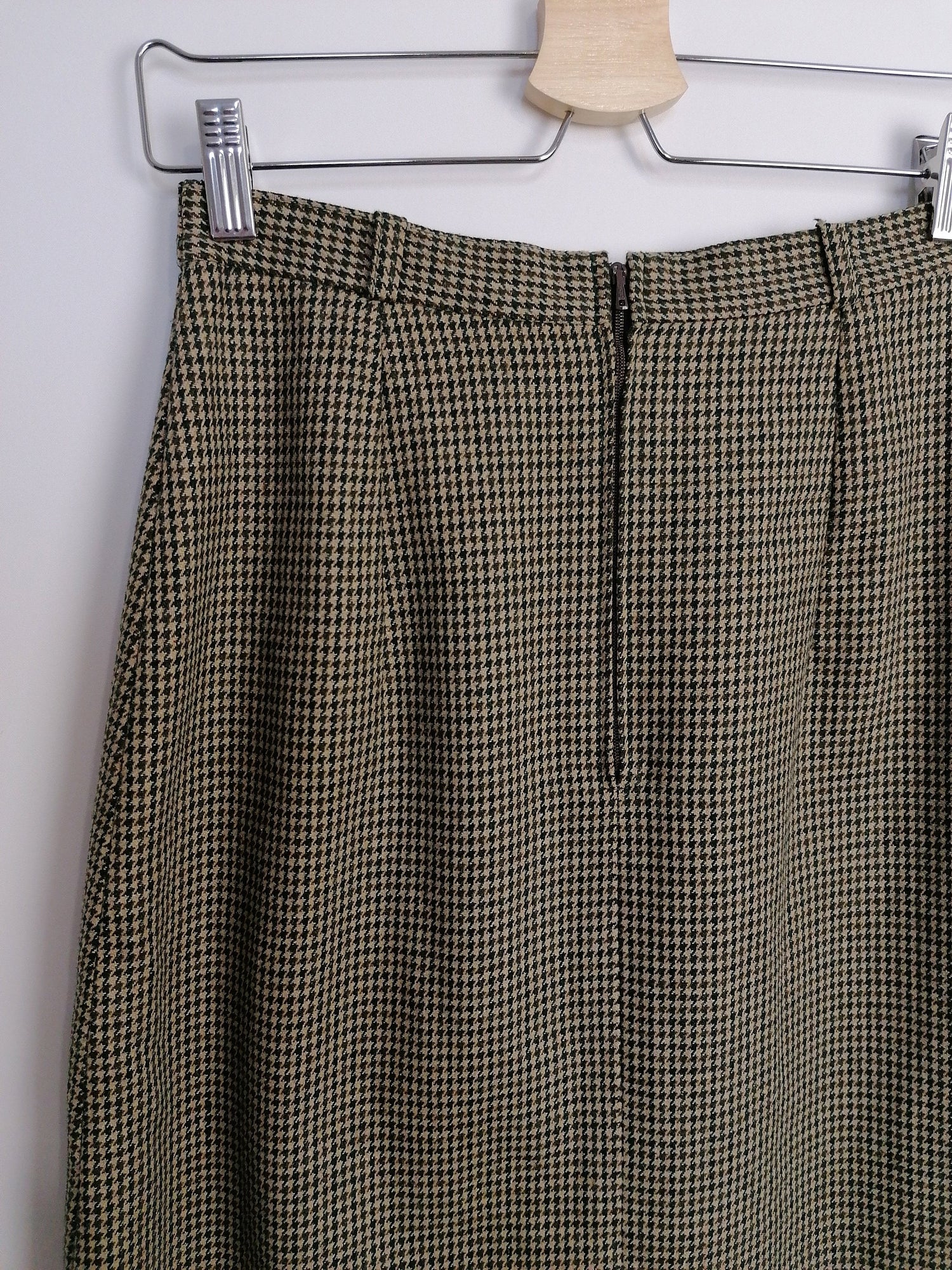 Amazing vintage 80's high waist wool blend skirt, beautiful houndstooth pattern in shades of greenish brown.
