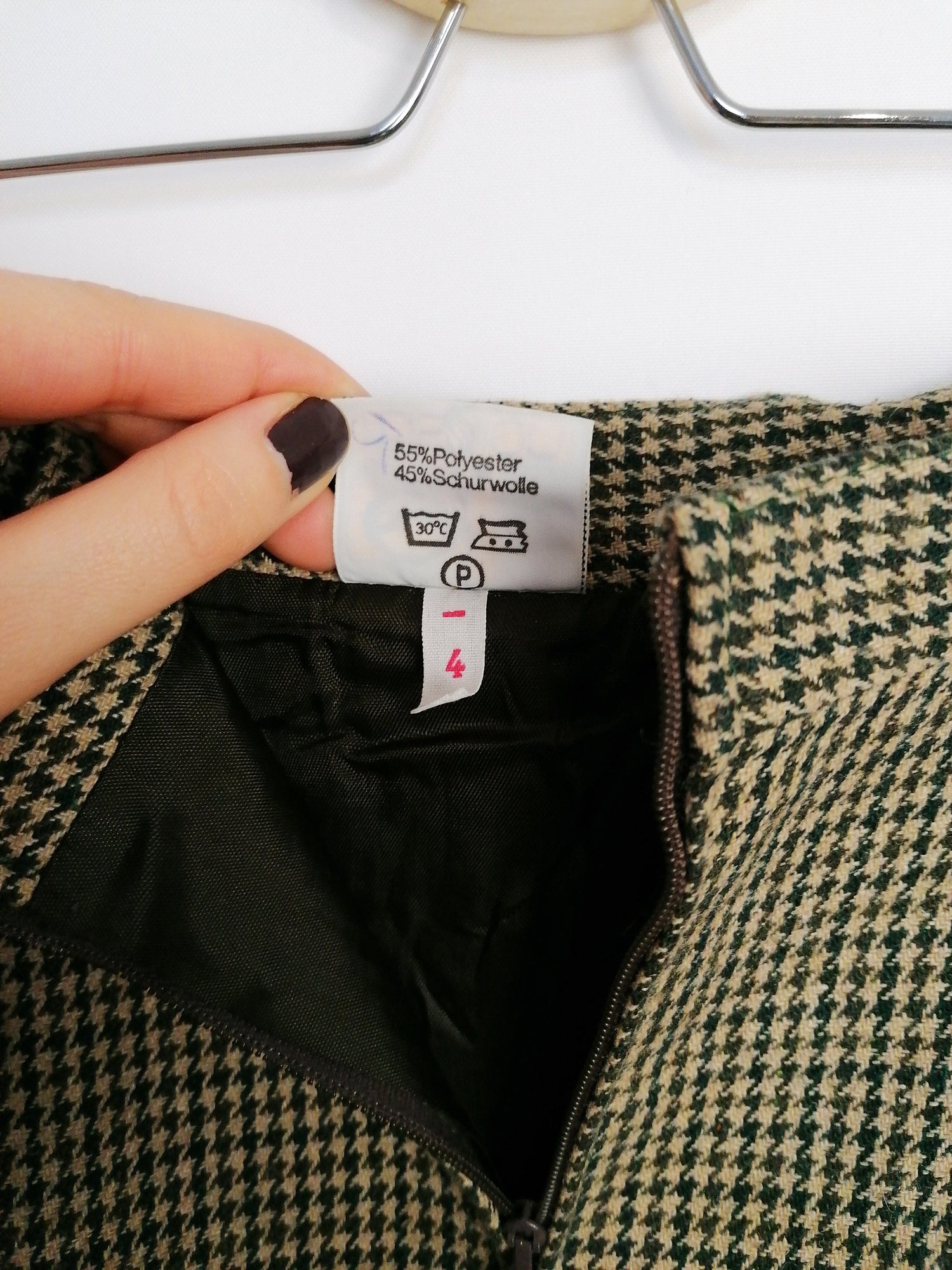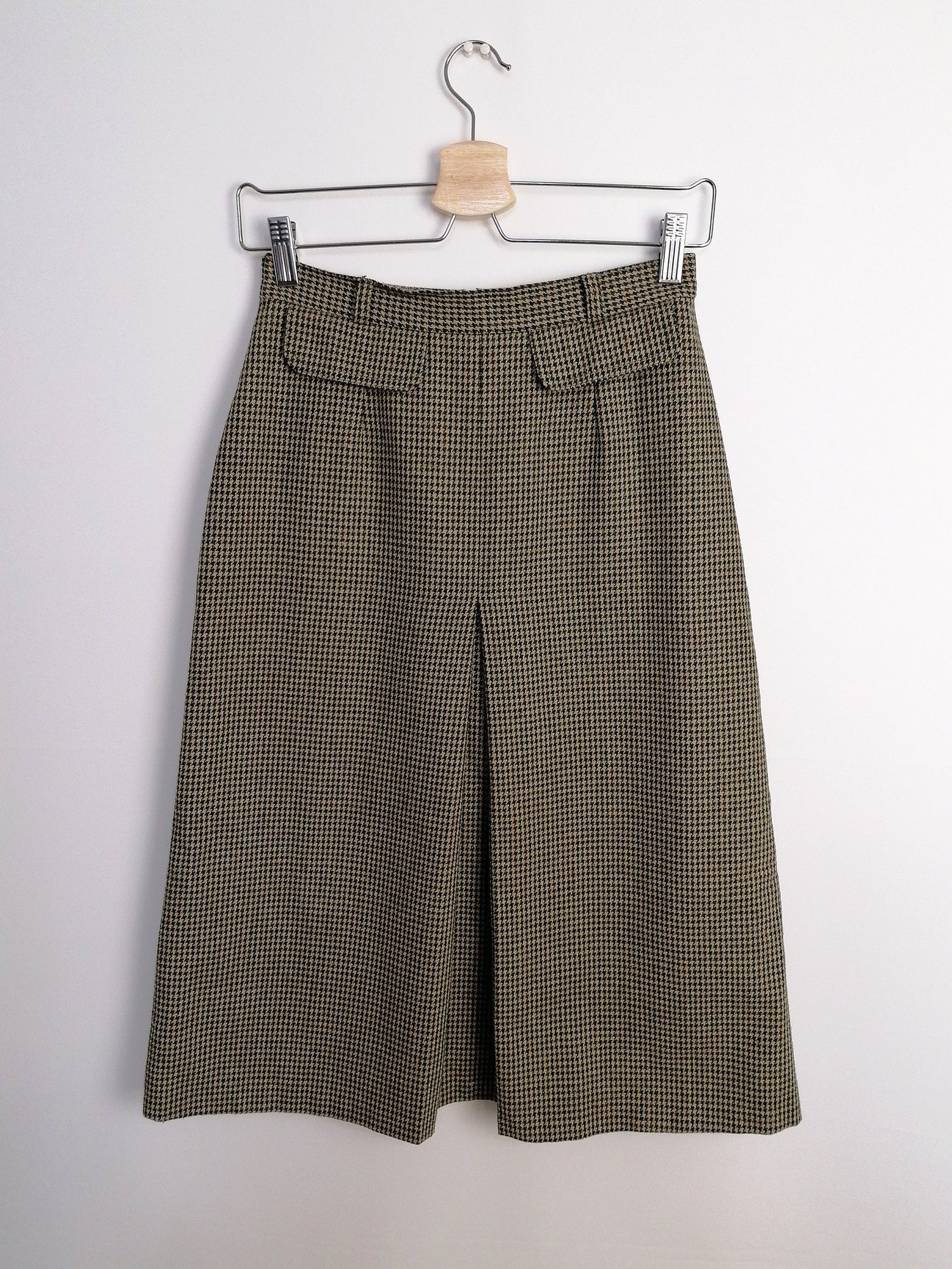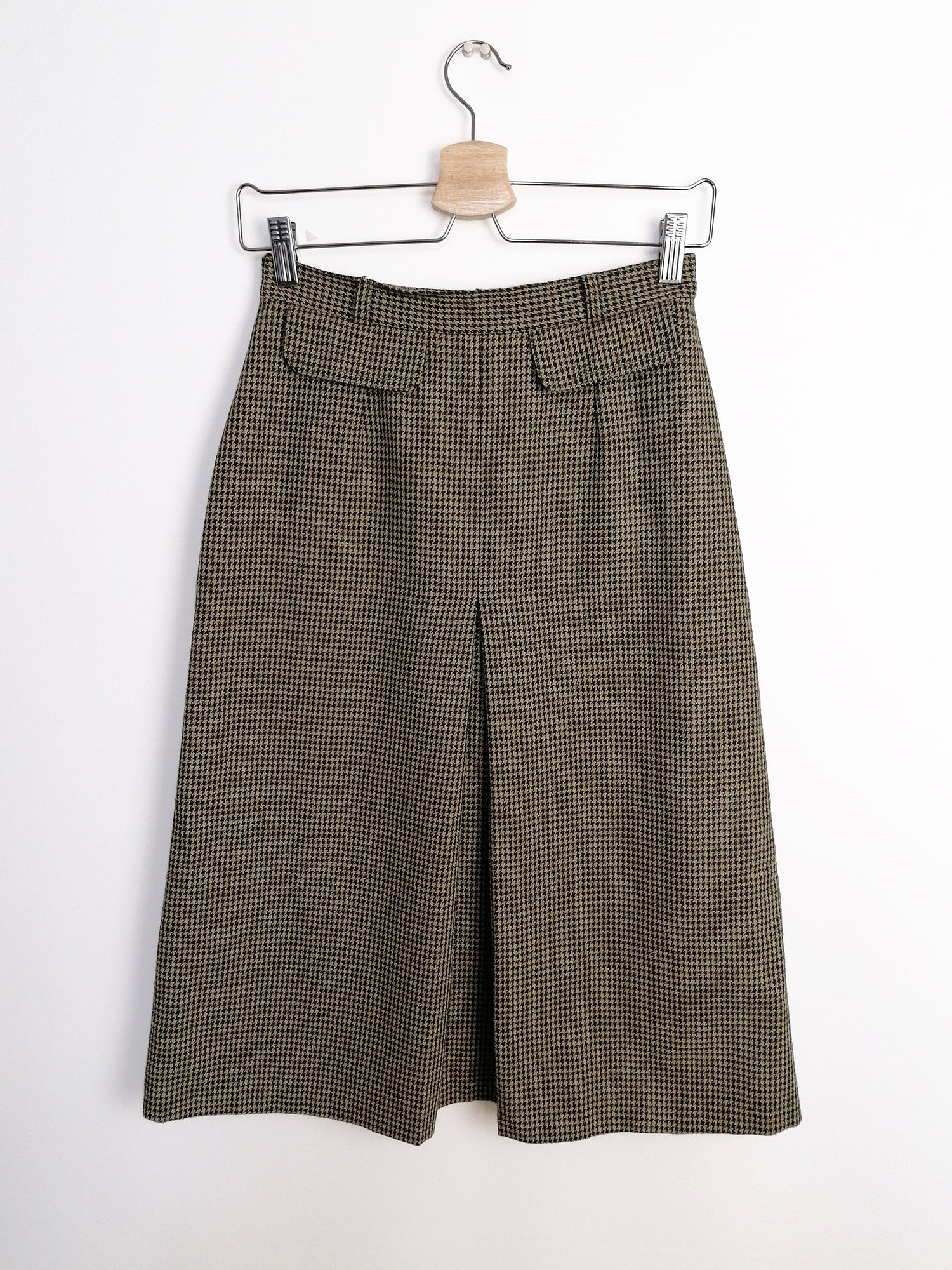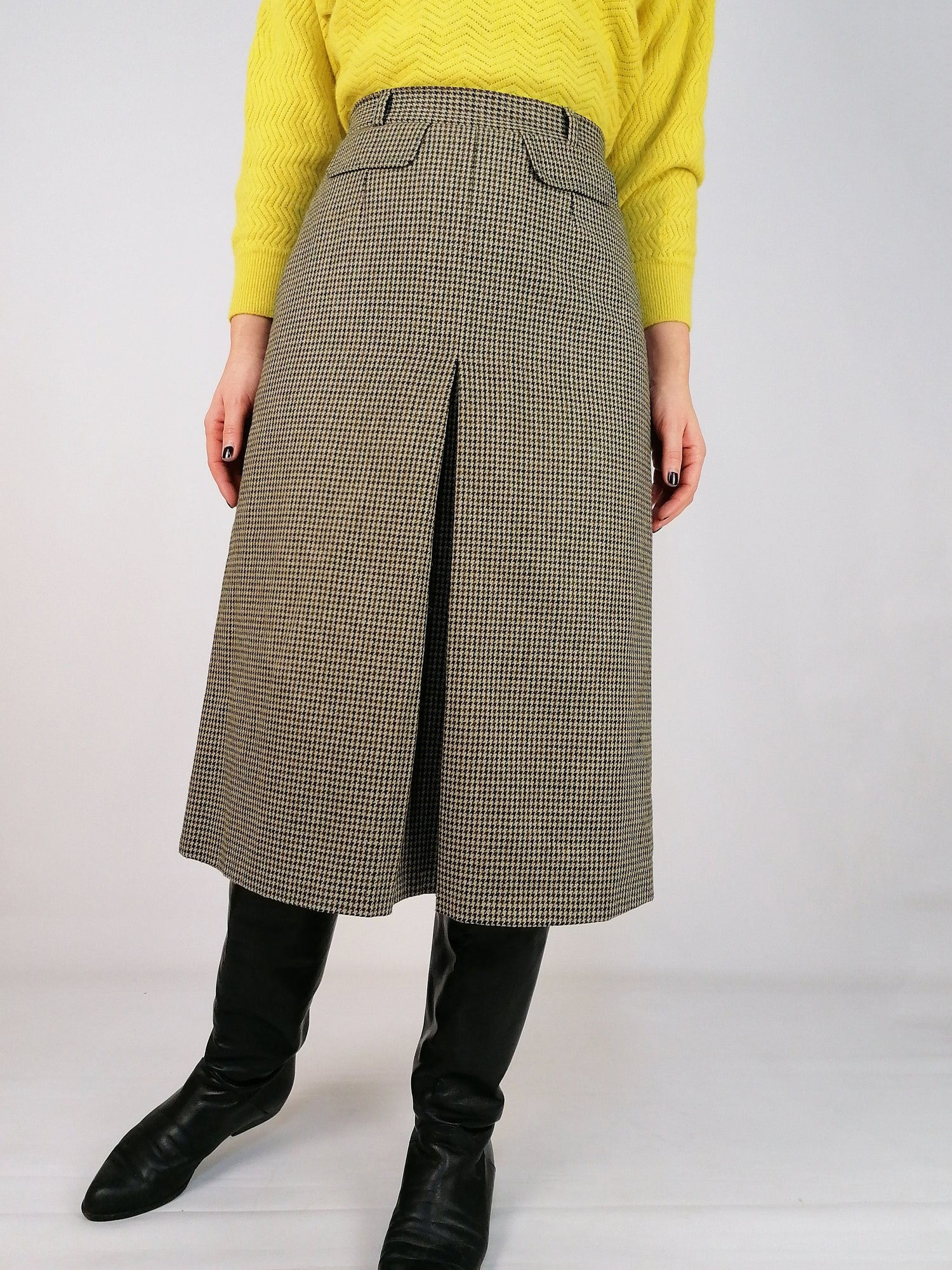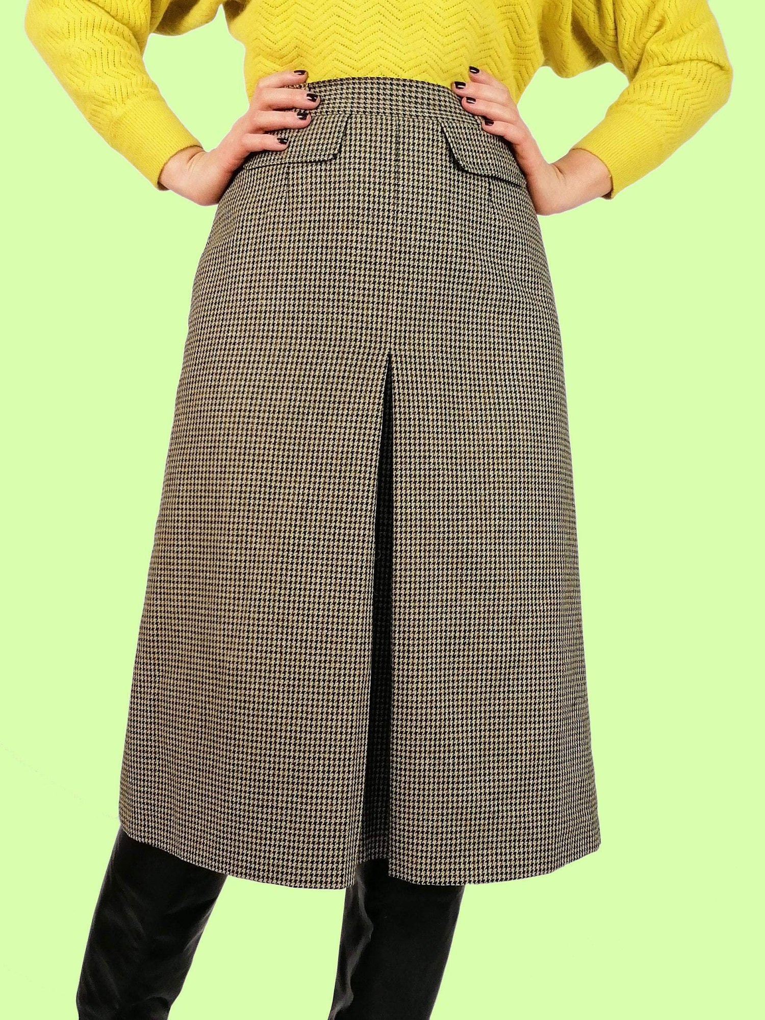 Amazing vintage 80's high waist wool blend skirt, beautiful houndstooth pattern in shades of greenish brown.