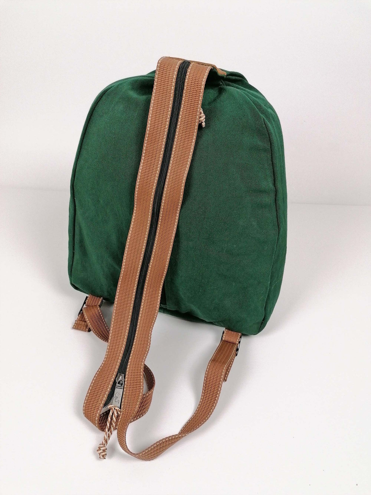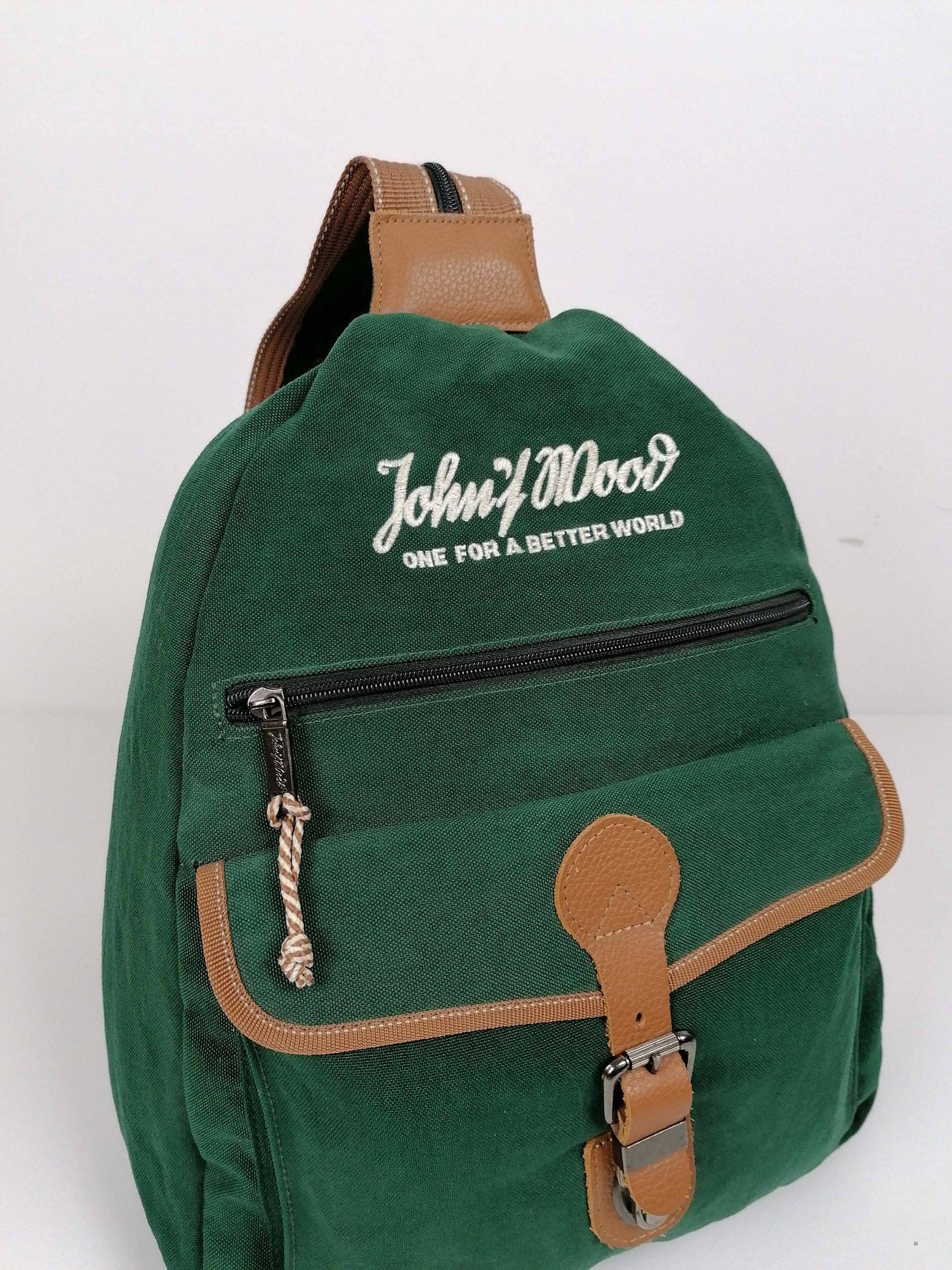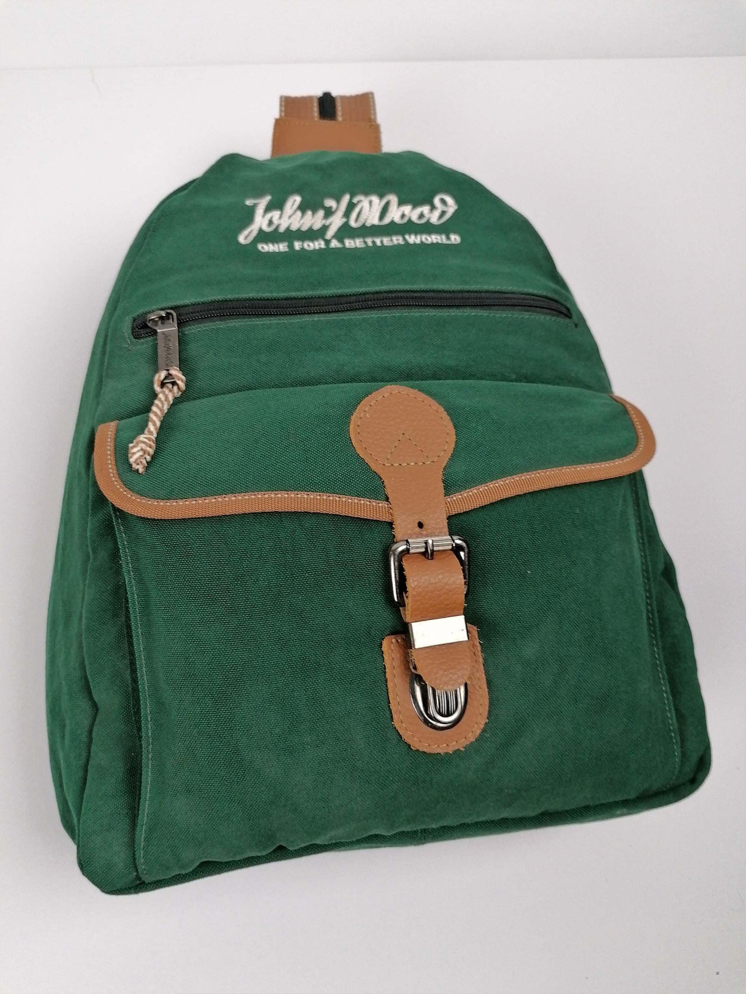 Beautiful 90's medium size canvas backpack, multiple pockets, zipper strap (can be turned into a double-strap), embroidery logo.