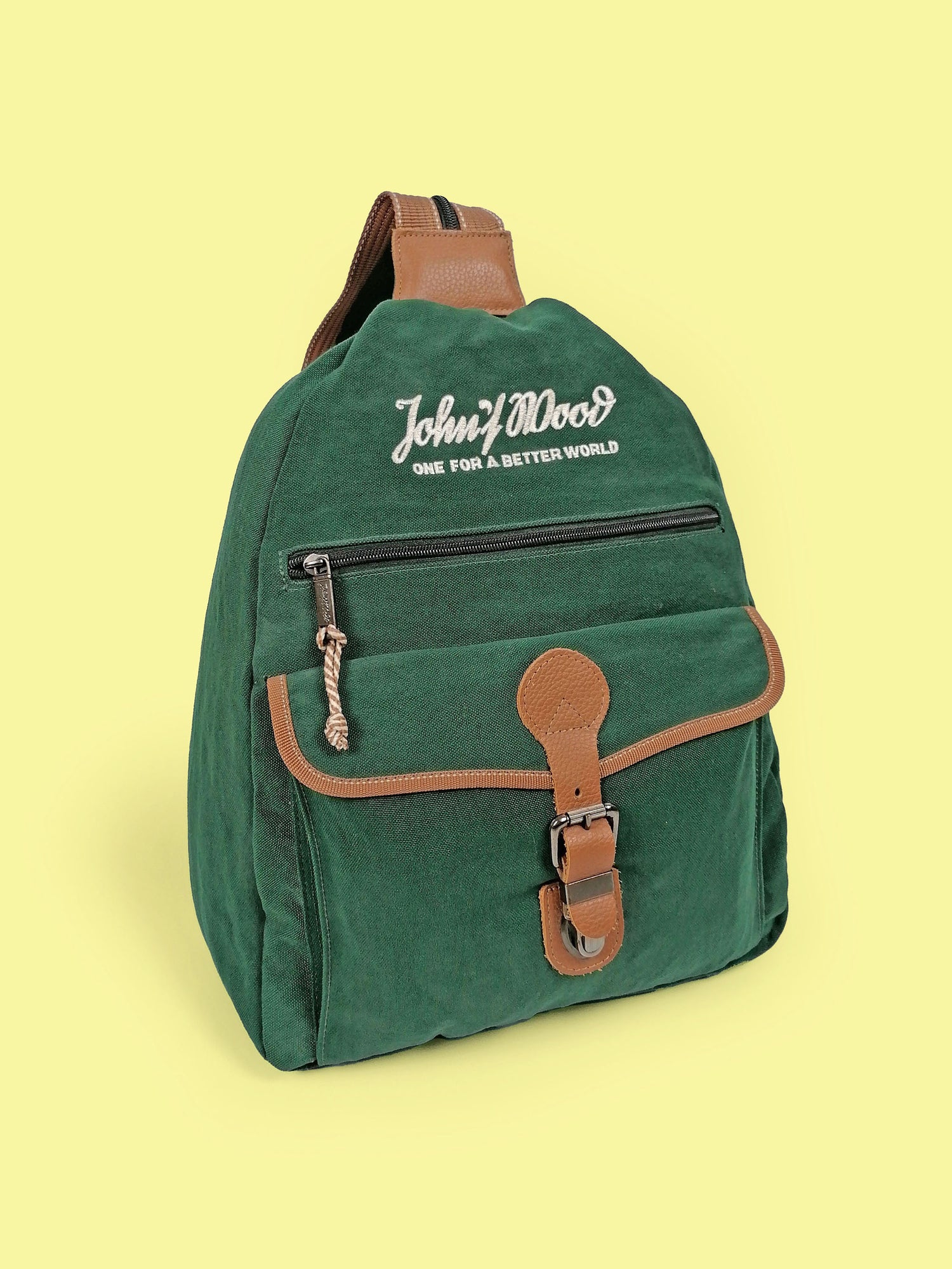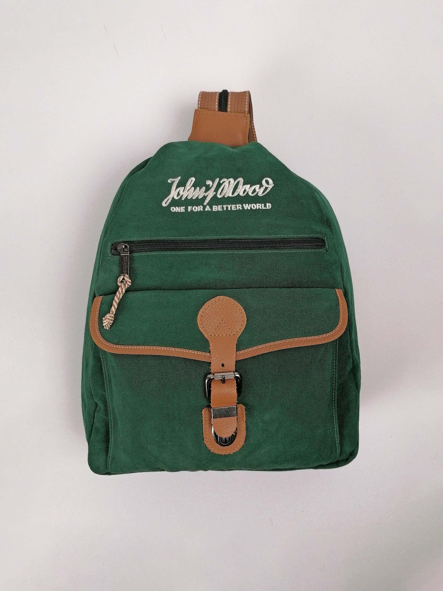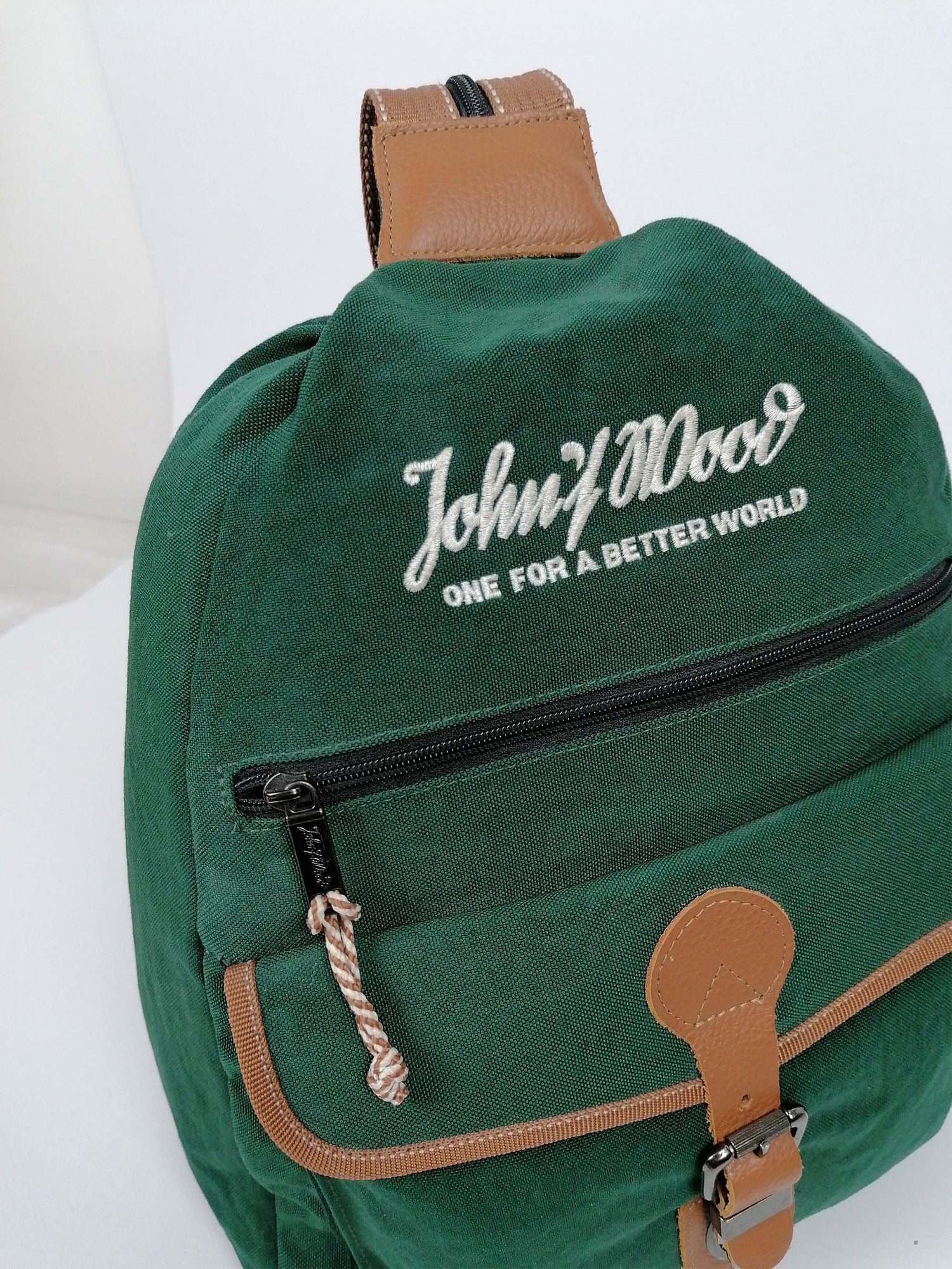 Beautiful 90's medium size canvas backpack, multiple pockets, zipper strap (can be turned into a double-strap), embroidery logo.
