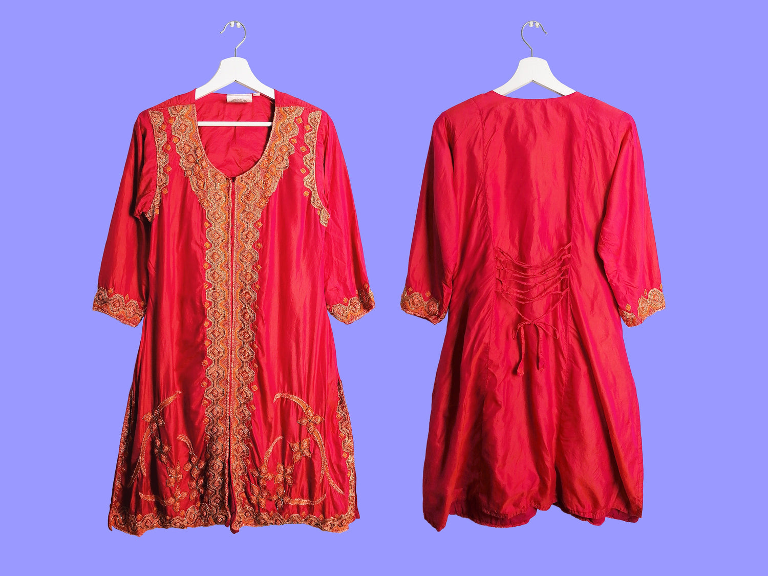 LOVELEEN Authentic Indian Silk Beaded Kurti Top/ Dress - size S-M