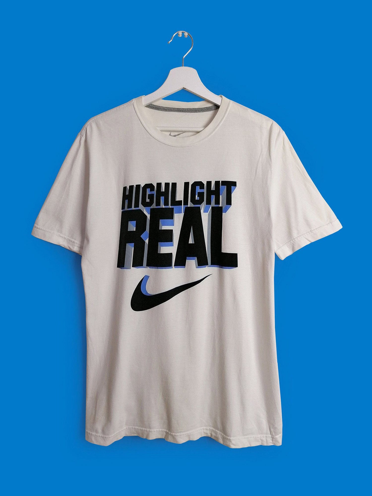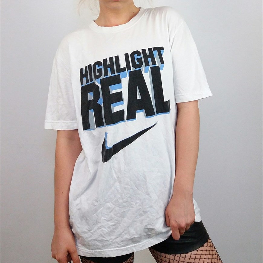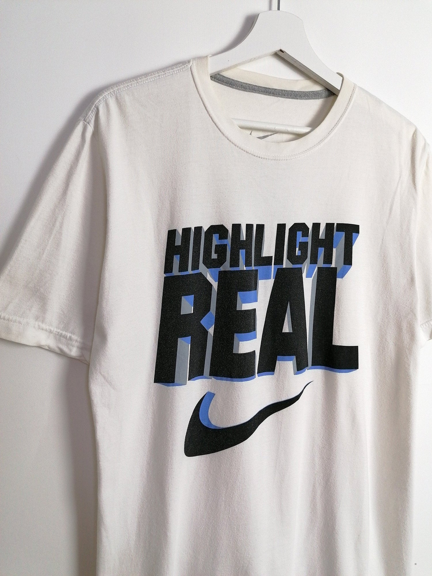 Vintage 90's unisex Nike t-shirt, "Highlight Real" front slogan.