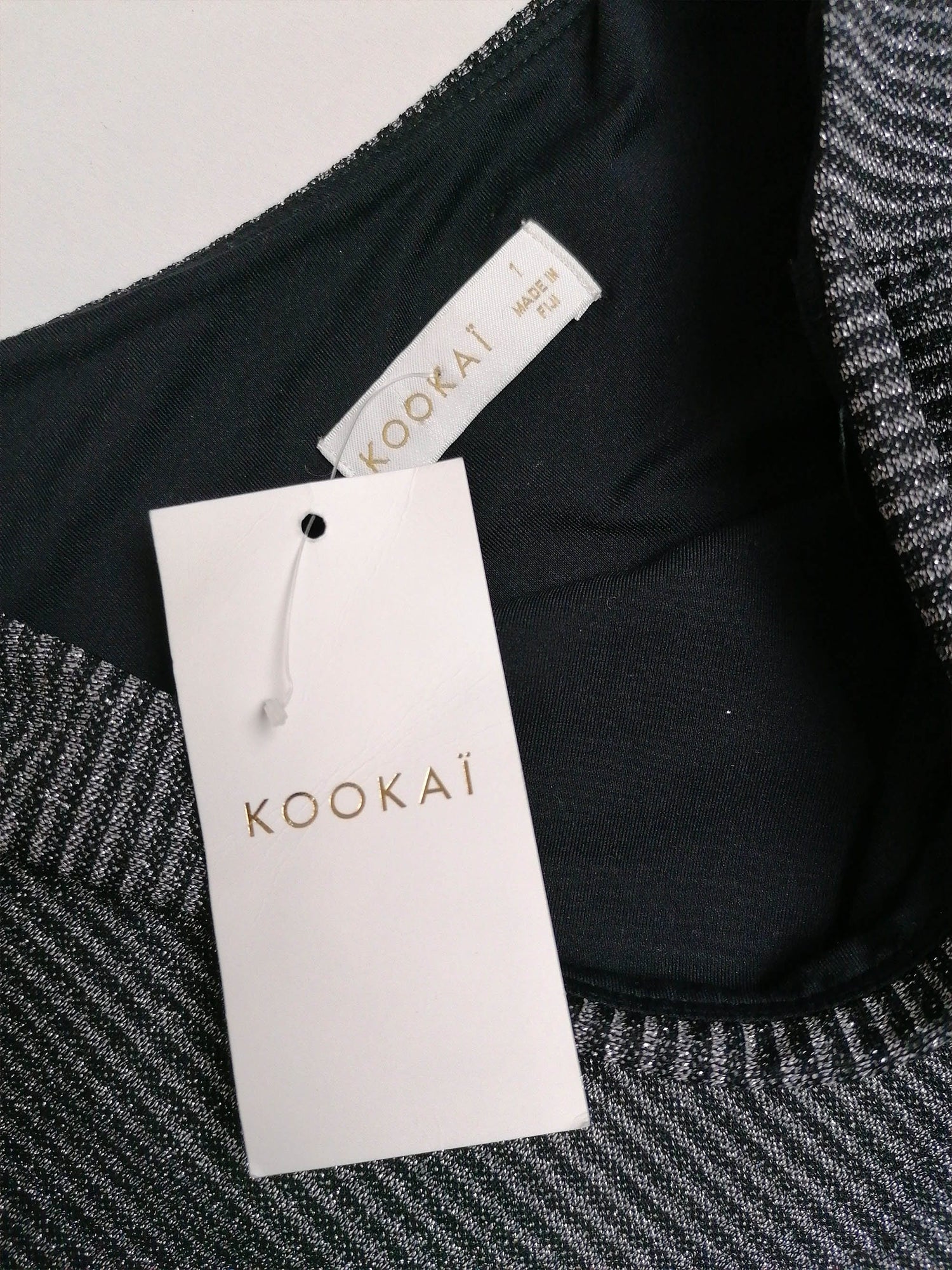 Would fit size XS-S, has stretch and is double layered. Size tag reads 1. Made in Fiji.