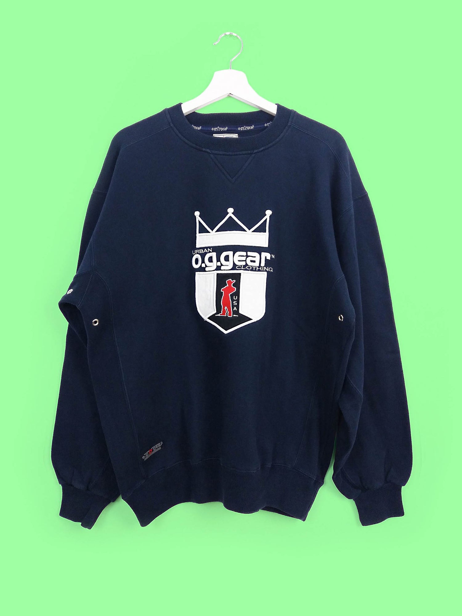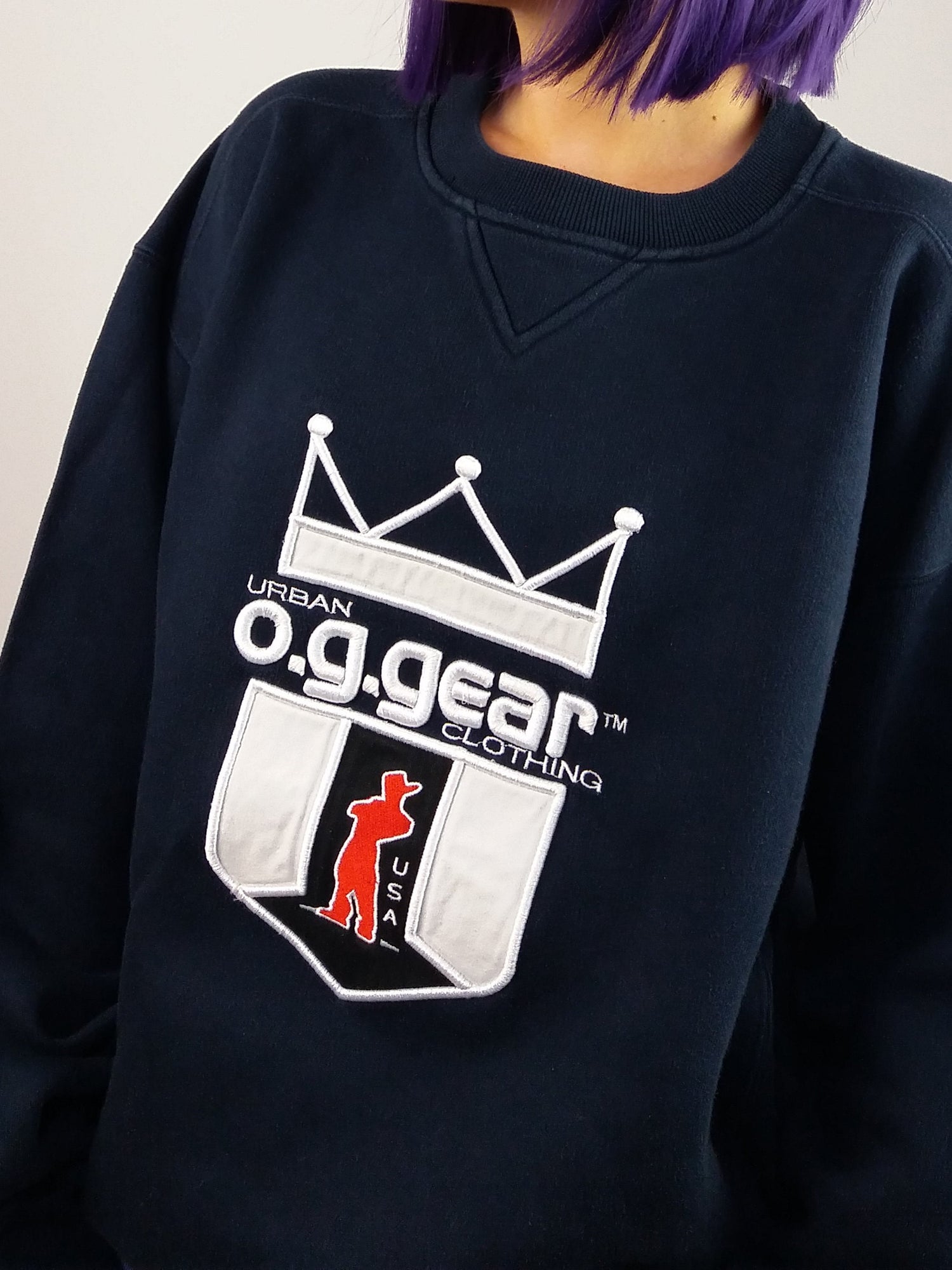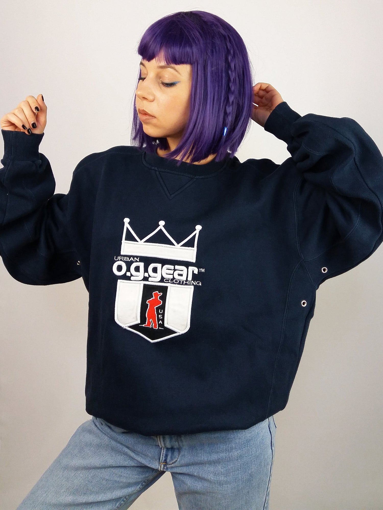 Fabulous unique USA brand O.G GEAR 90's oversized hip hop sweatshirt, high quality embroidered front logo crown. Super soft and comfortable, unisex fit. Excellent vintage condition.