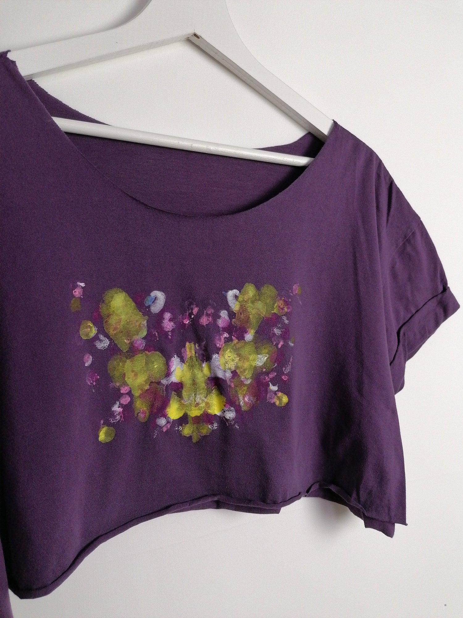 This crop top has already been washed, and this is what the colours look like, so no need to worry about damage of the print! The paints used are high quality and long lasting.