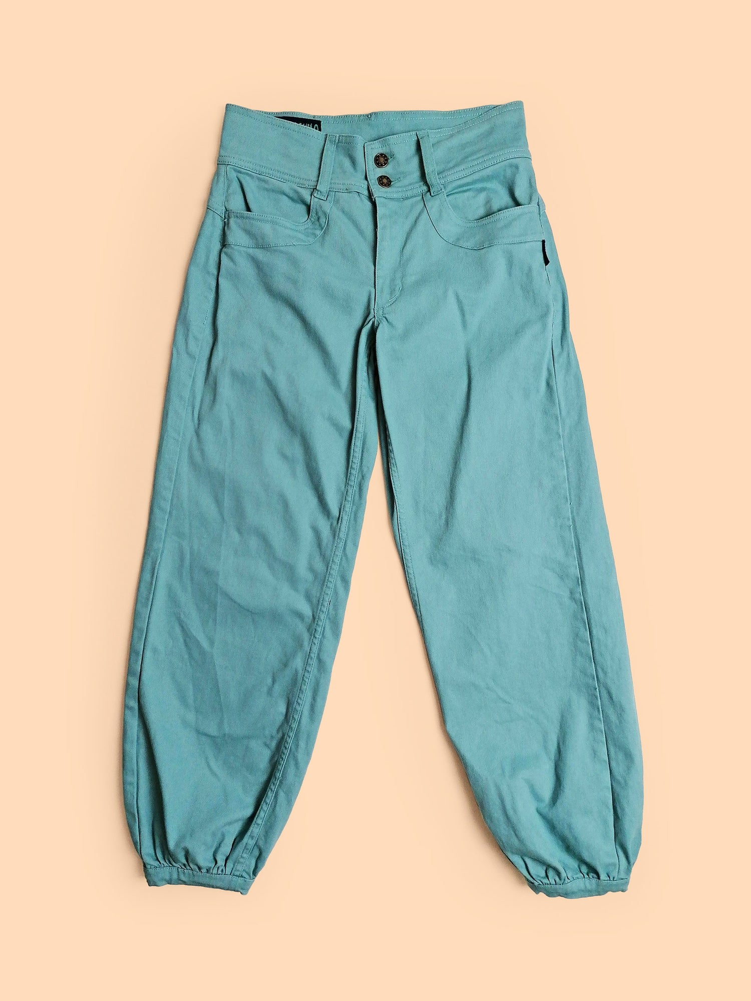 Gorgeous Y2K organic cotton baggy jeans, mid to low-rise, beautiful sea-foam green. Brand Tranquillo. Made in Germany.