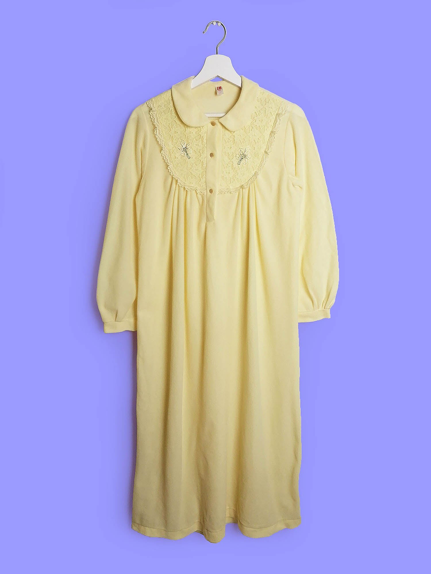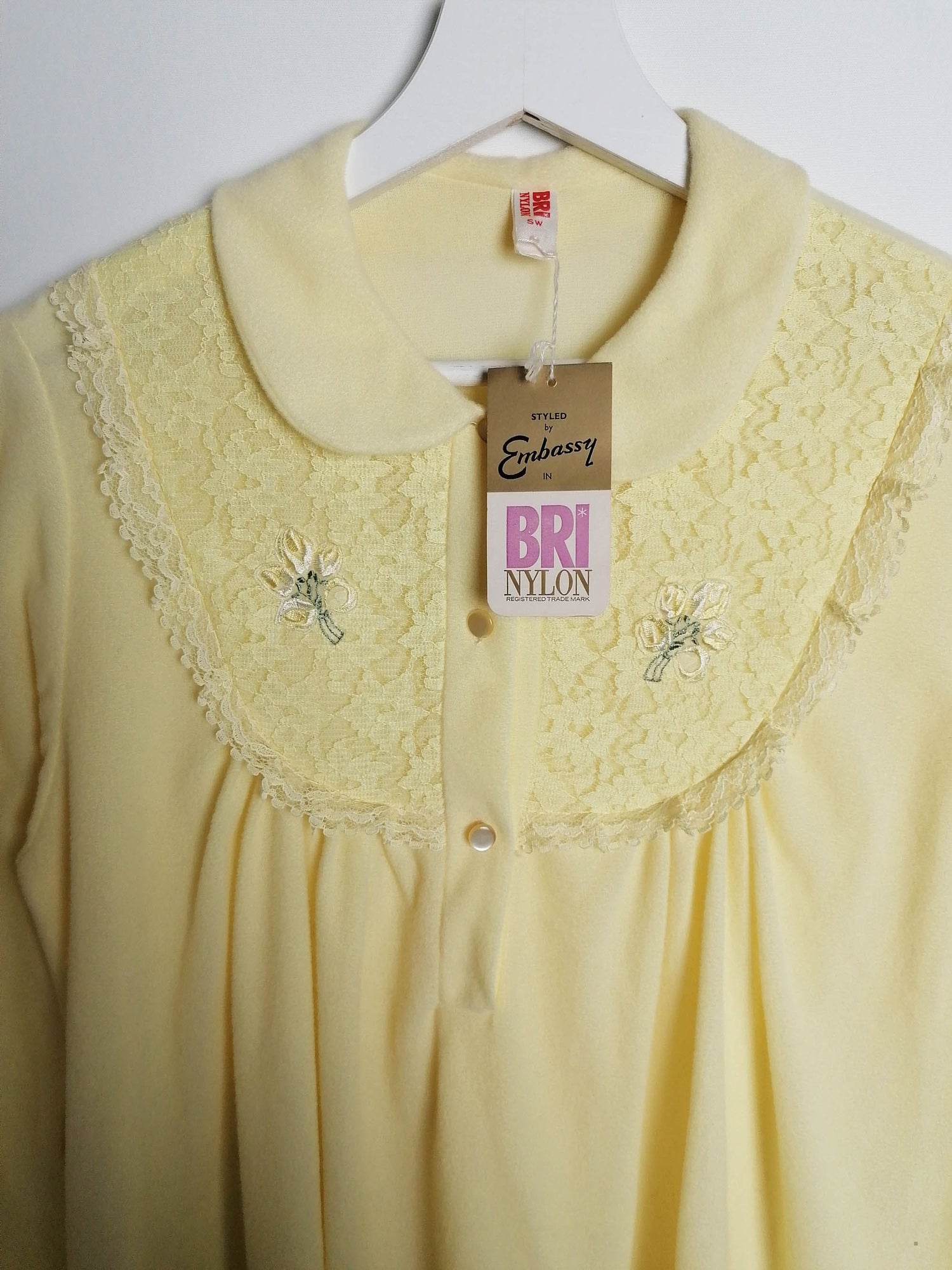 Vintage 80's deadstock Embassy Bri-Nylon winter nightie, super light and comfortable, powder yellow.