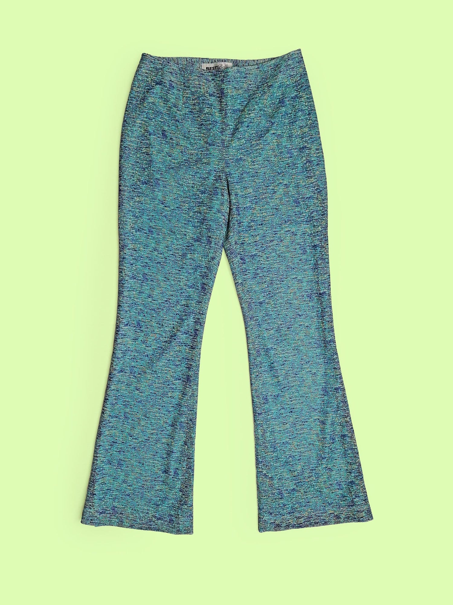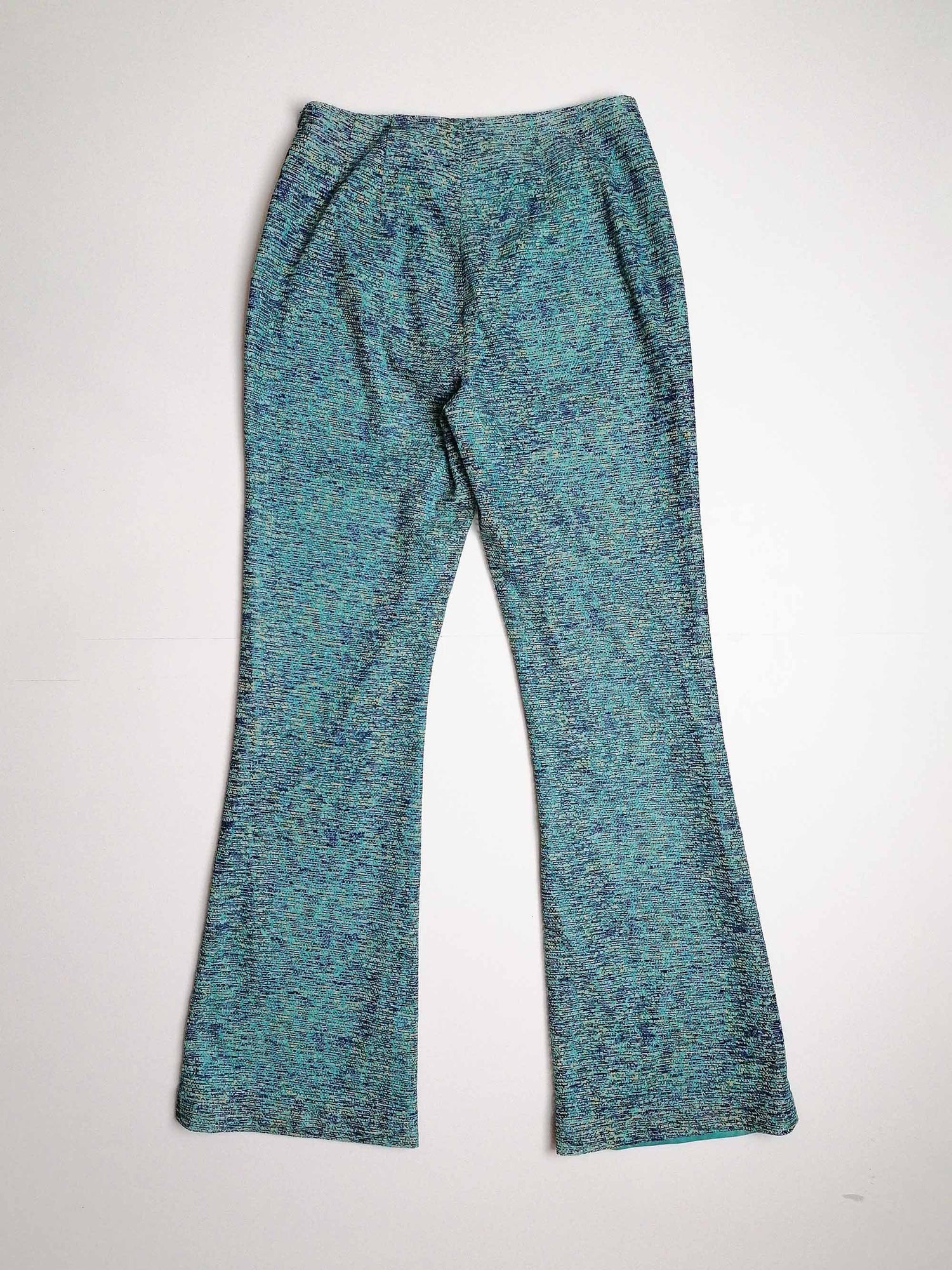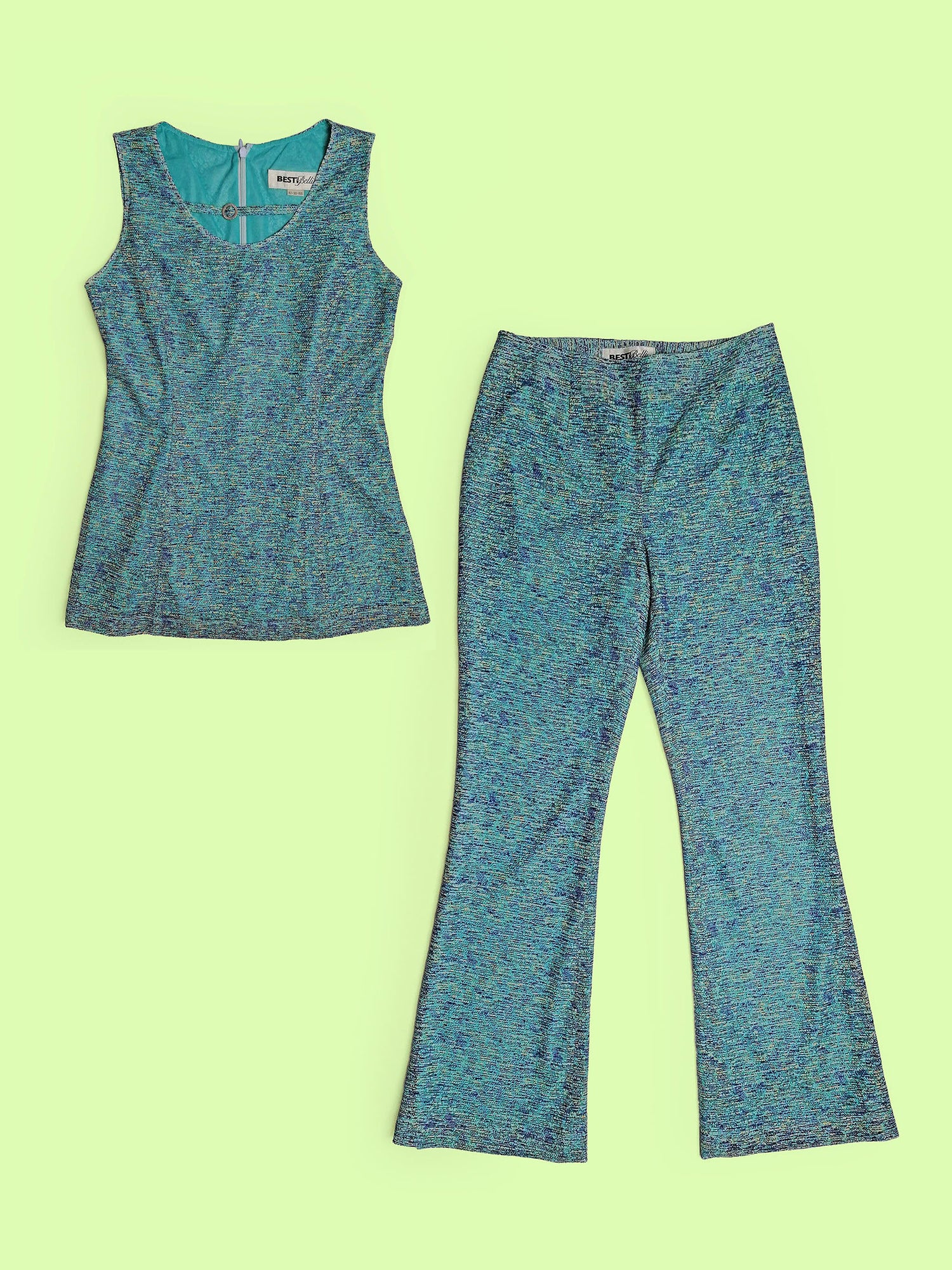 Stunning vintage 70's two-piece set, vest top and flared pants. Both pieces are fully lined, the top layer is a soft mesh-like fabric, in beautiful shades of blue. Brand Besti Belli, made in Korea.