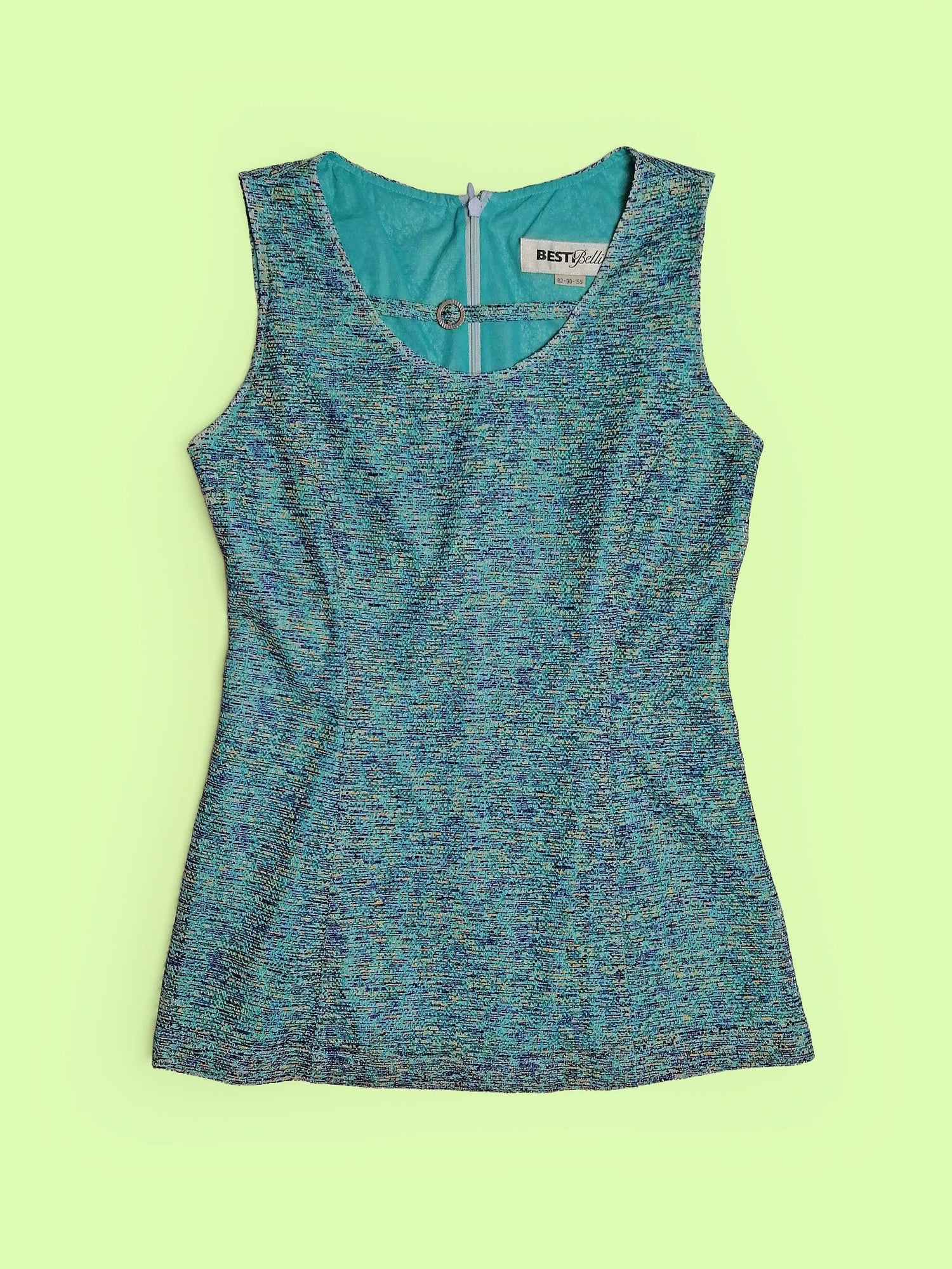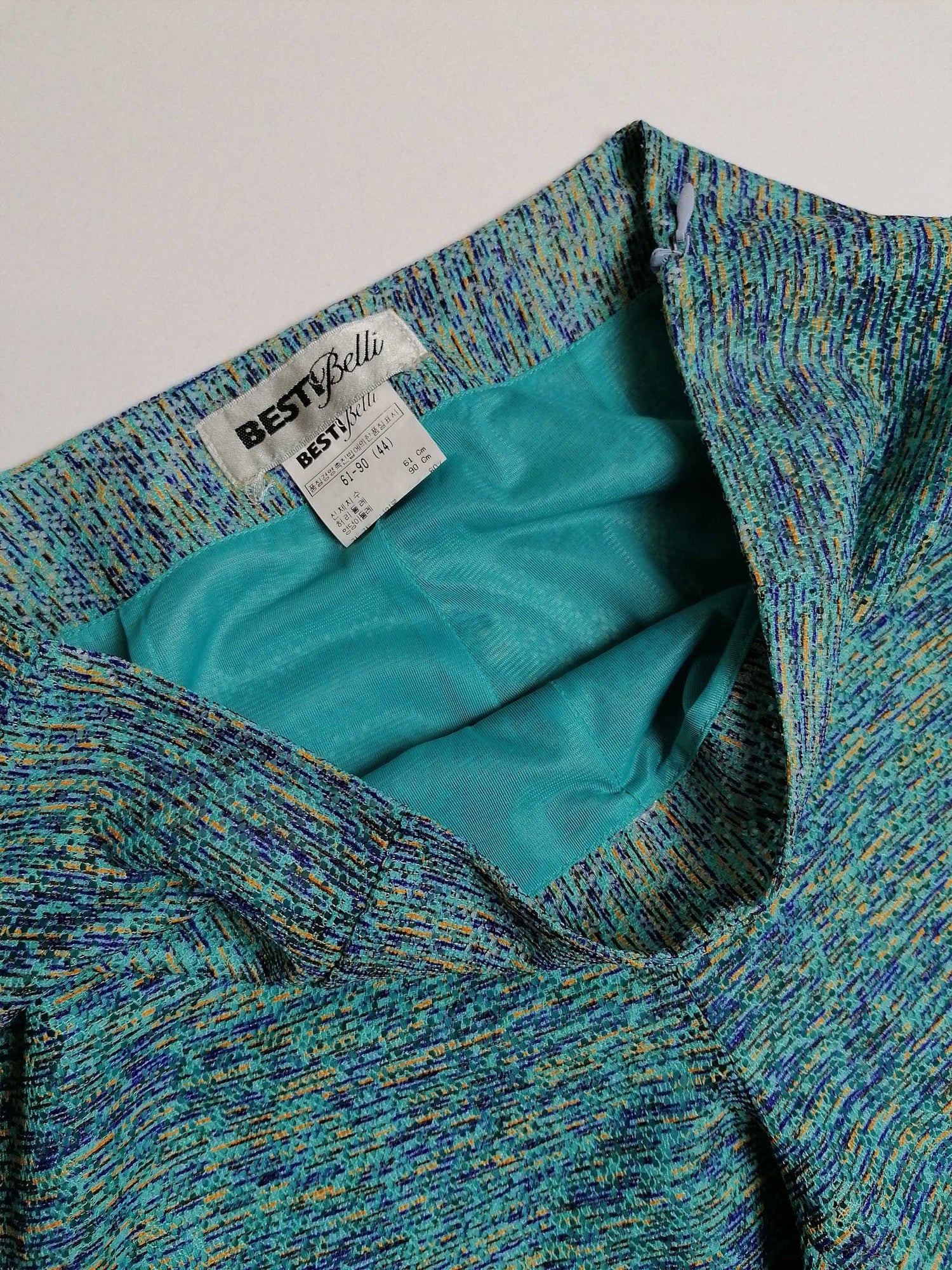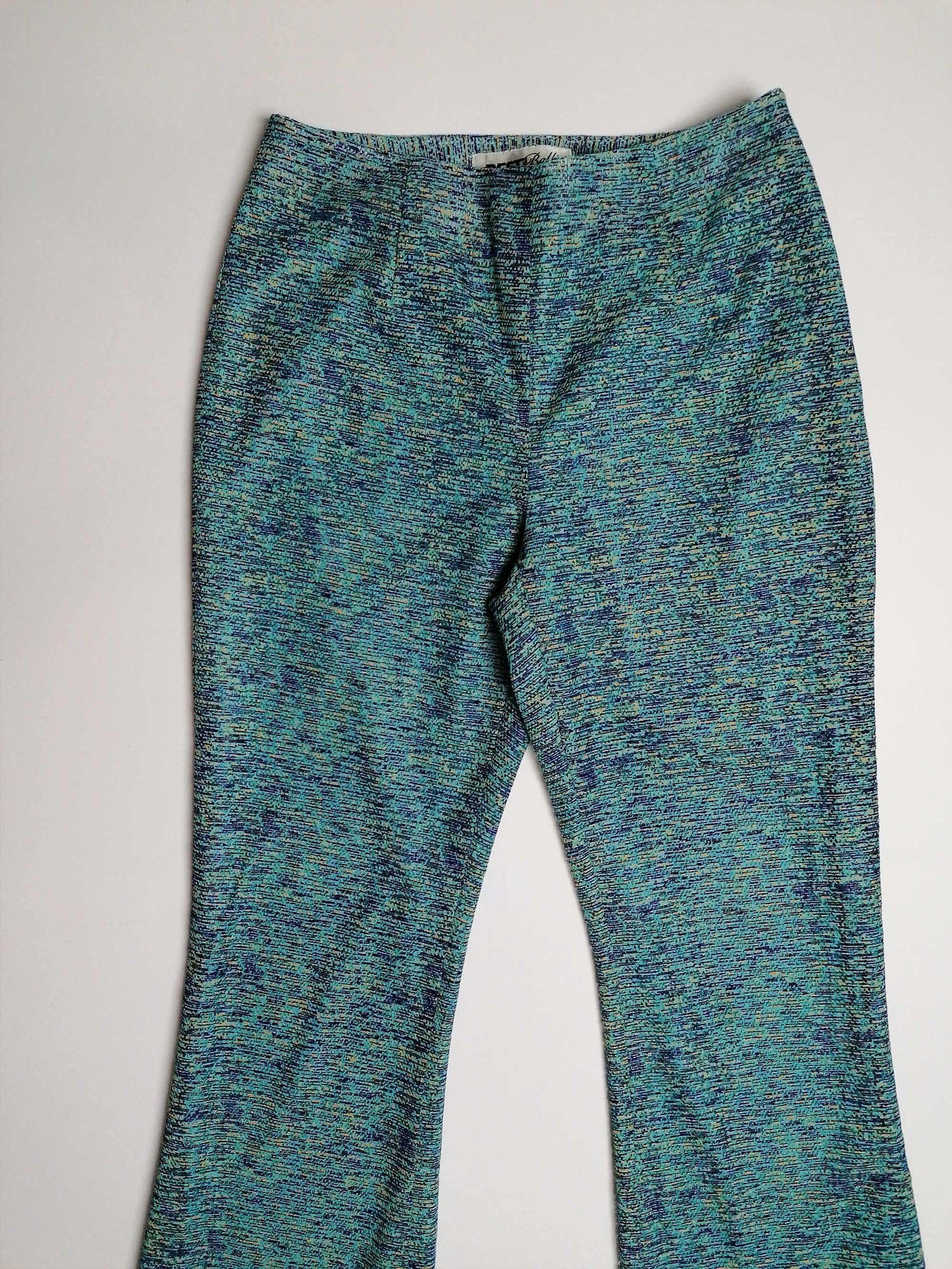 Stunning vintage 70's two-piece set, vest top and flared pants. Both pieces are fully lined, the top layer is a soft mesh-like fabric, in beautiful shades of blue. Brand Besti Belli, made in Korea.
