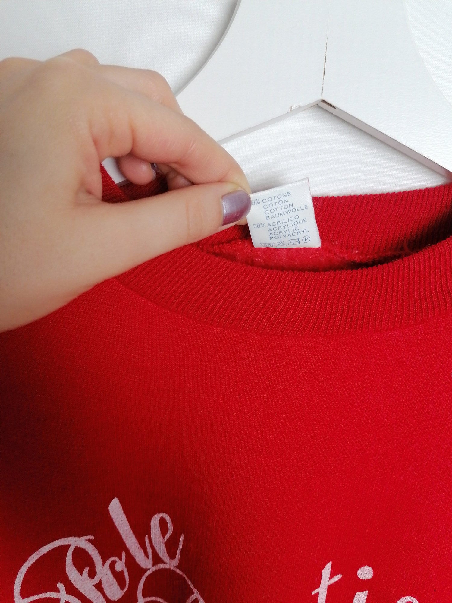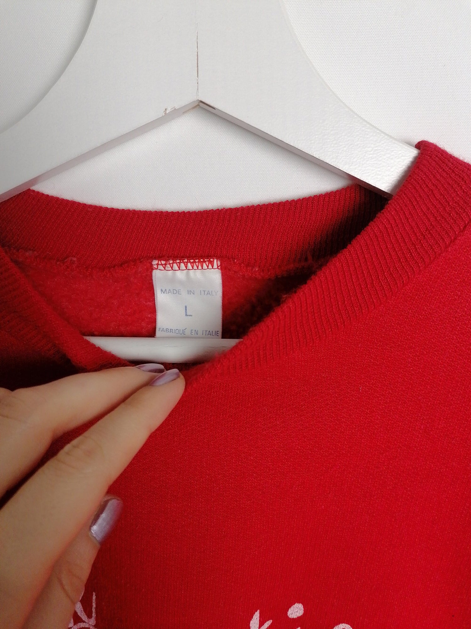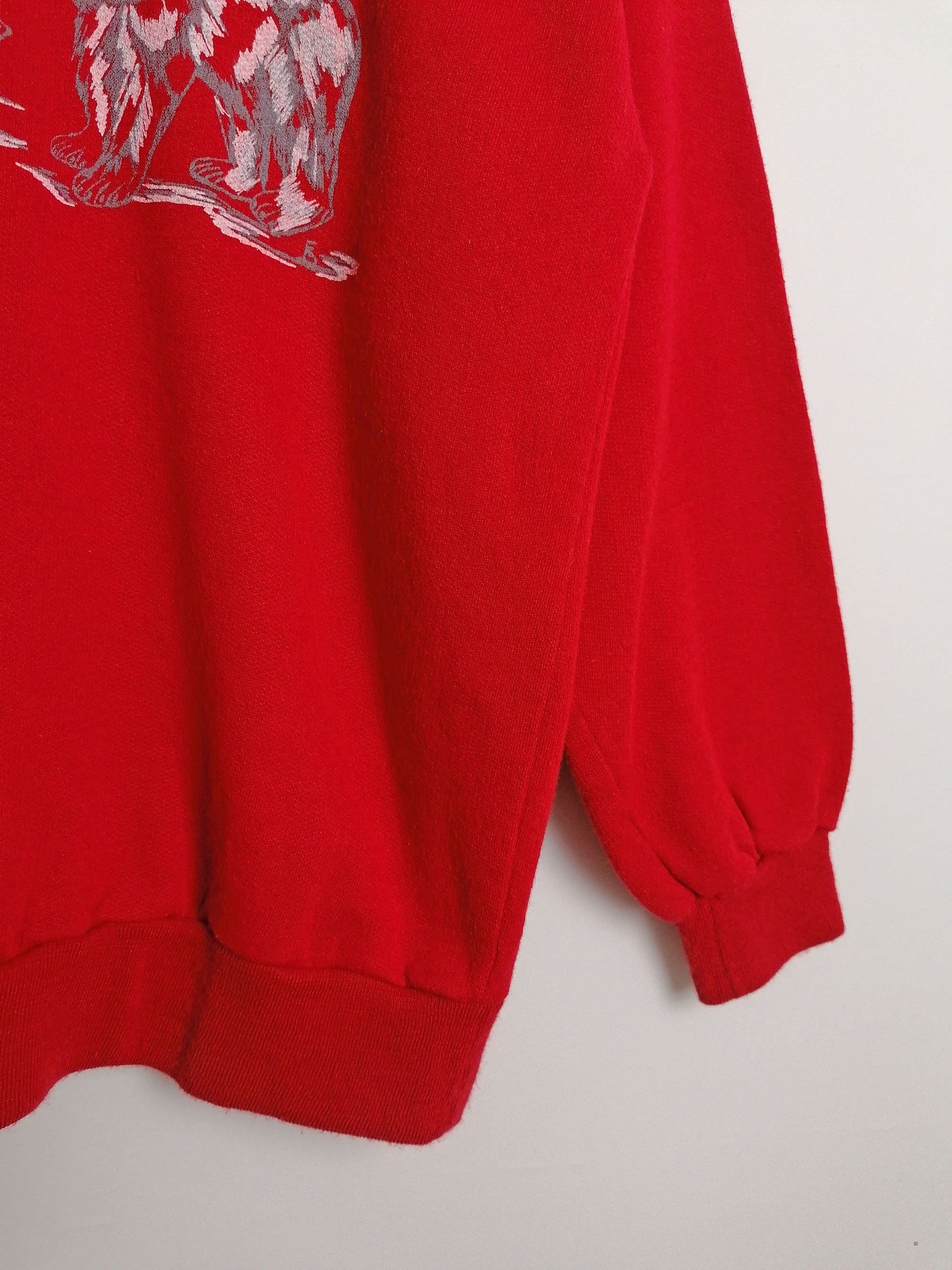 Very sweet vintage sweatshirt, polar bear print, bright red. Soft and fleecy on reverse, elastic cuffs and bottom. Made in Italy.