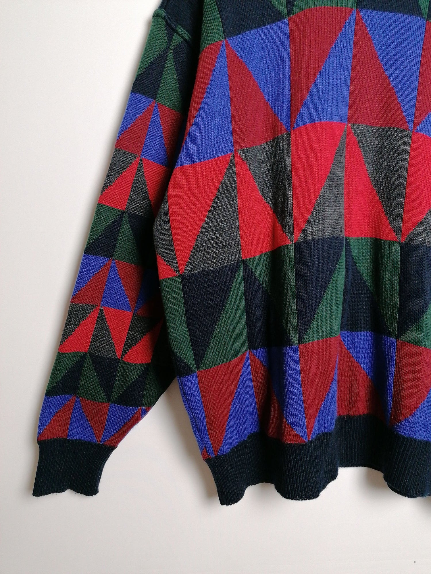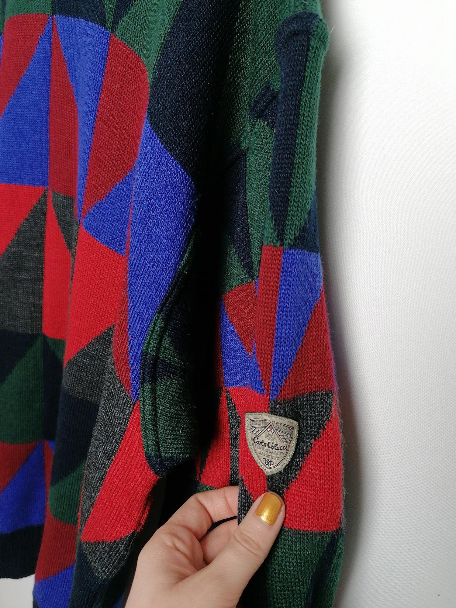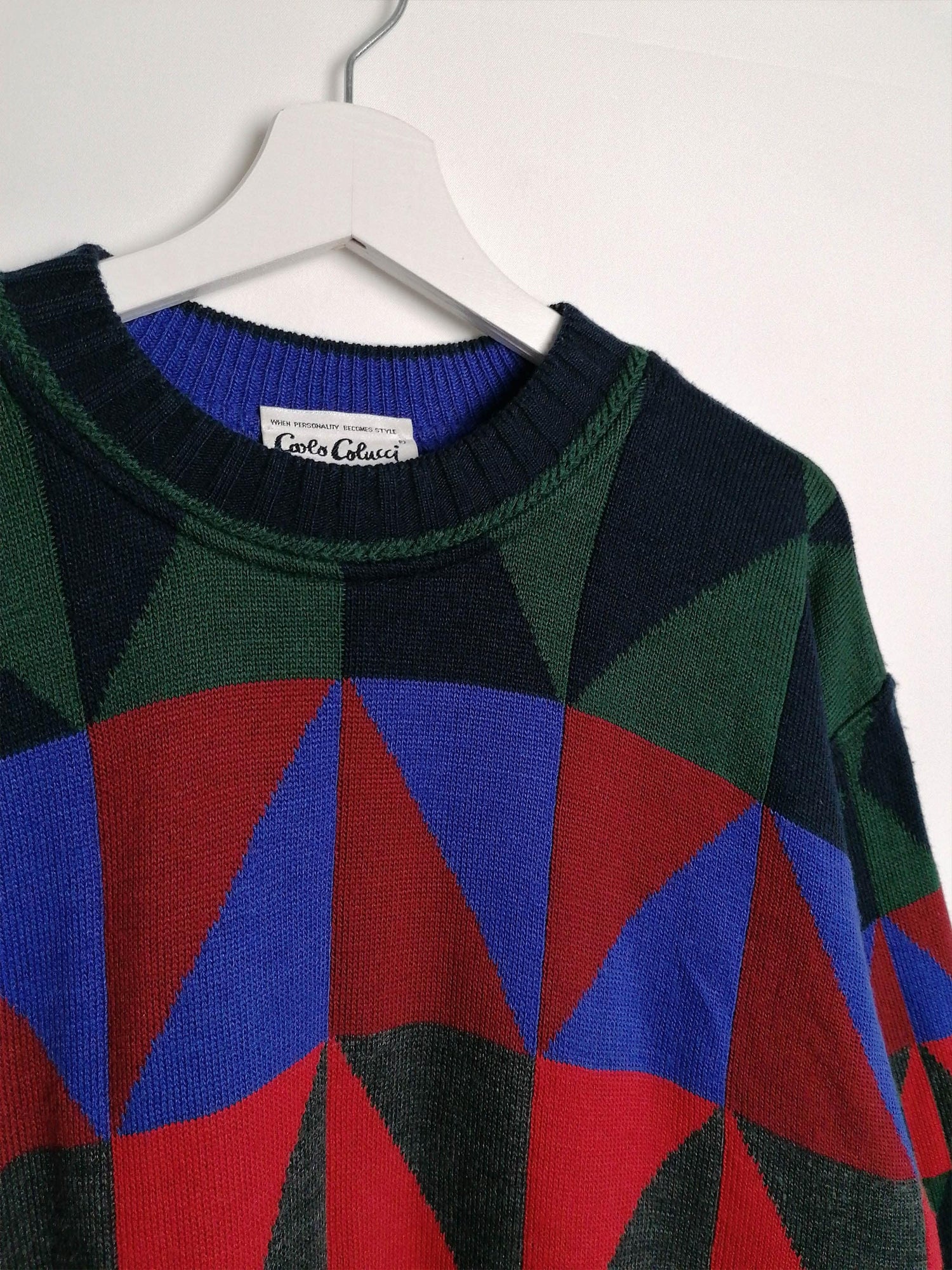 Gorgeous 80's 90's Carlo Colucci sweater, vibrant retro pattern.