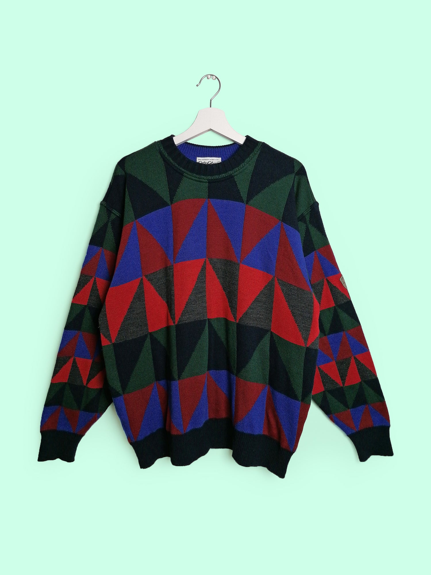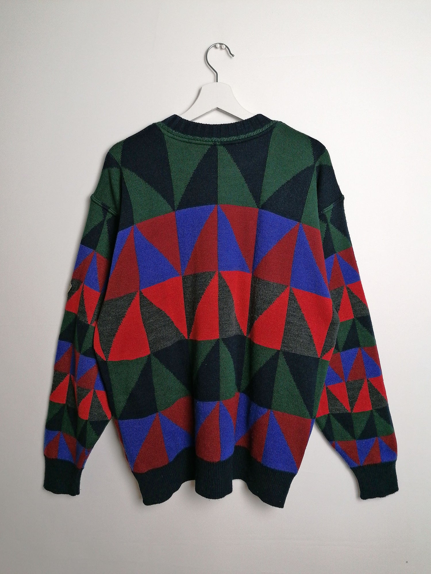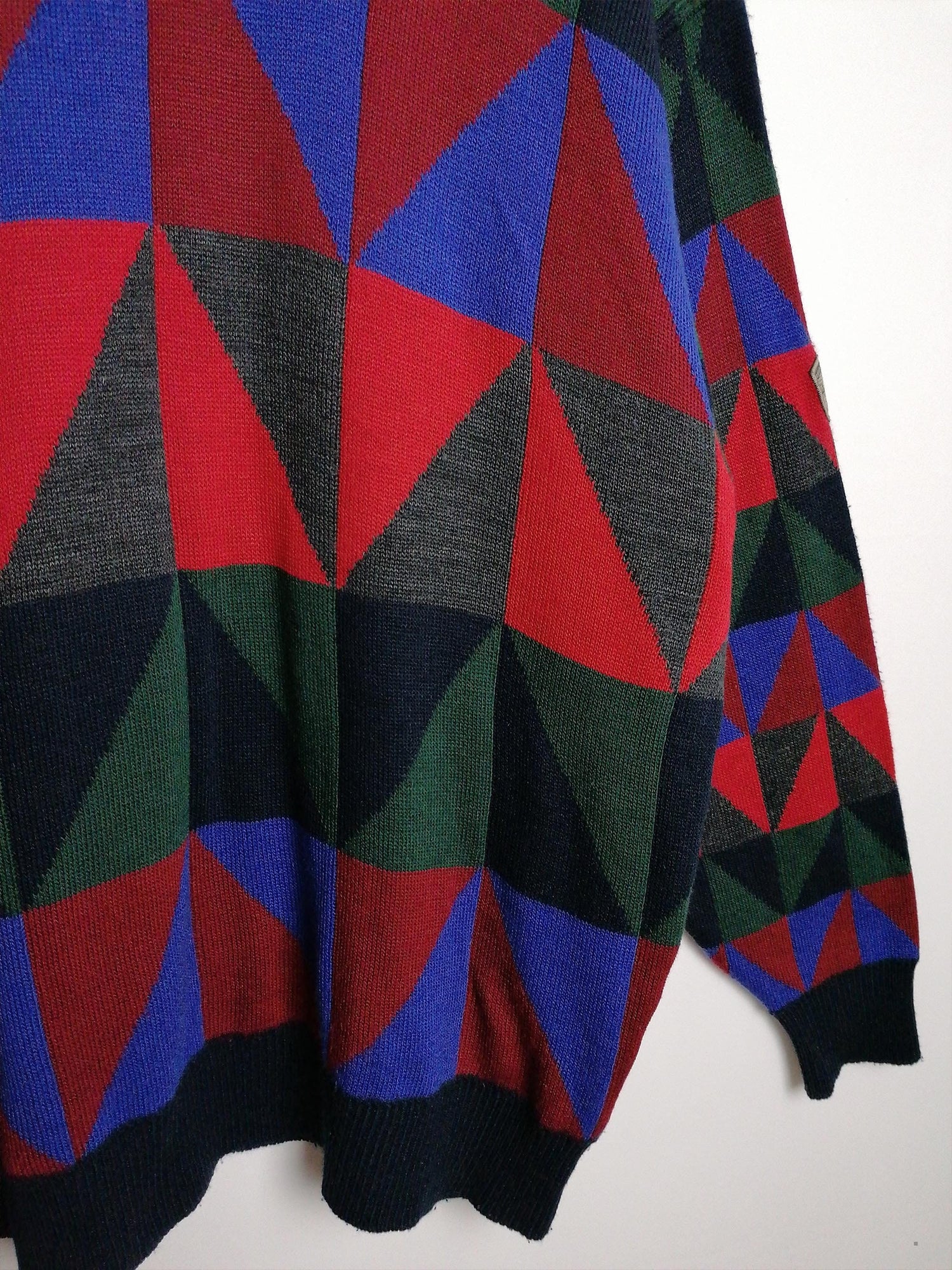 Gorgeous 80's 90's Carlo Colucci sweater, vibrant retro pattern.