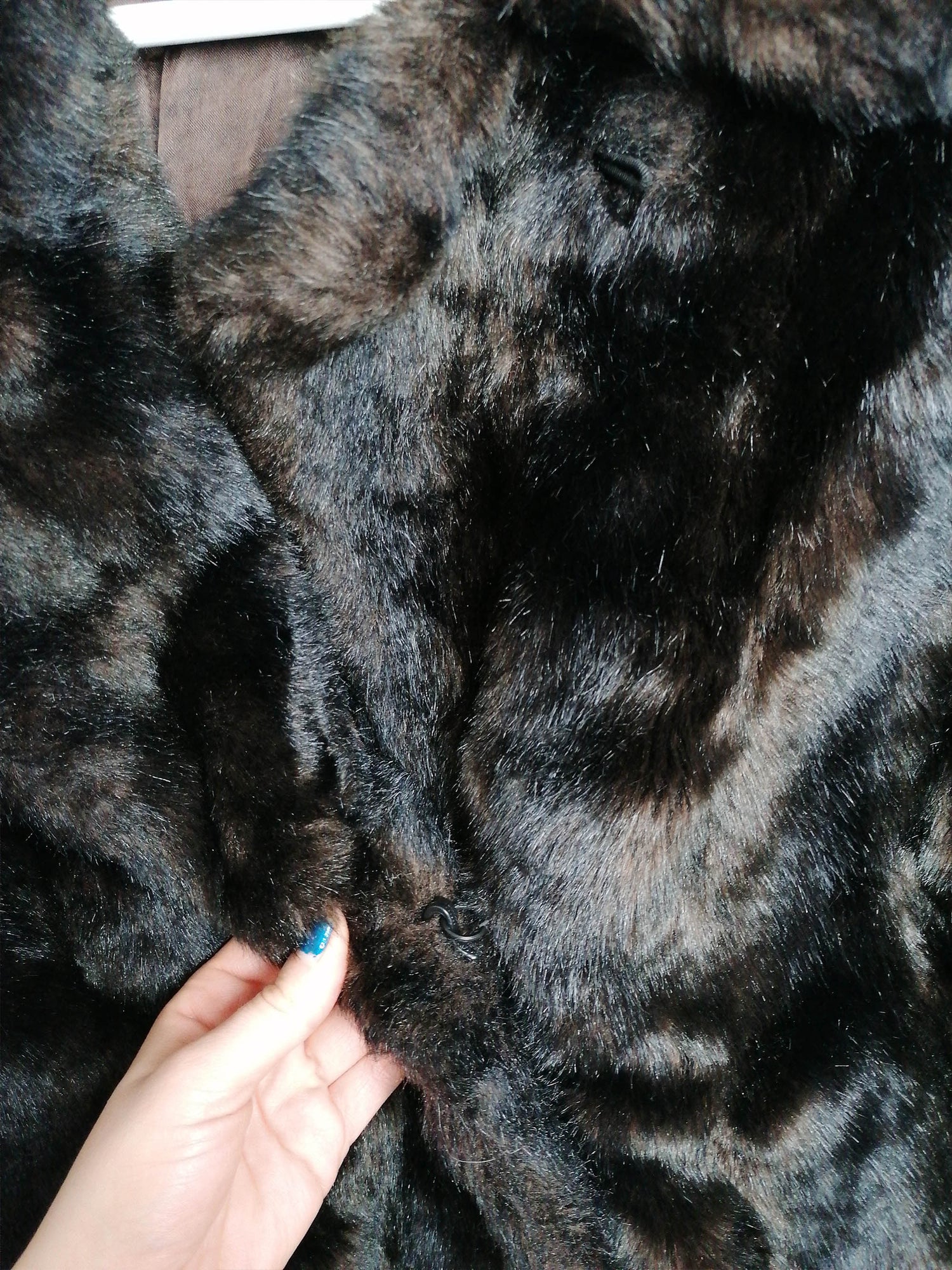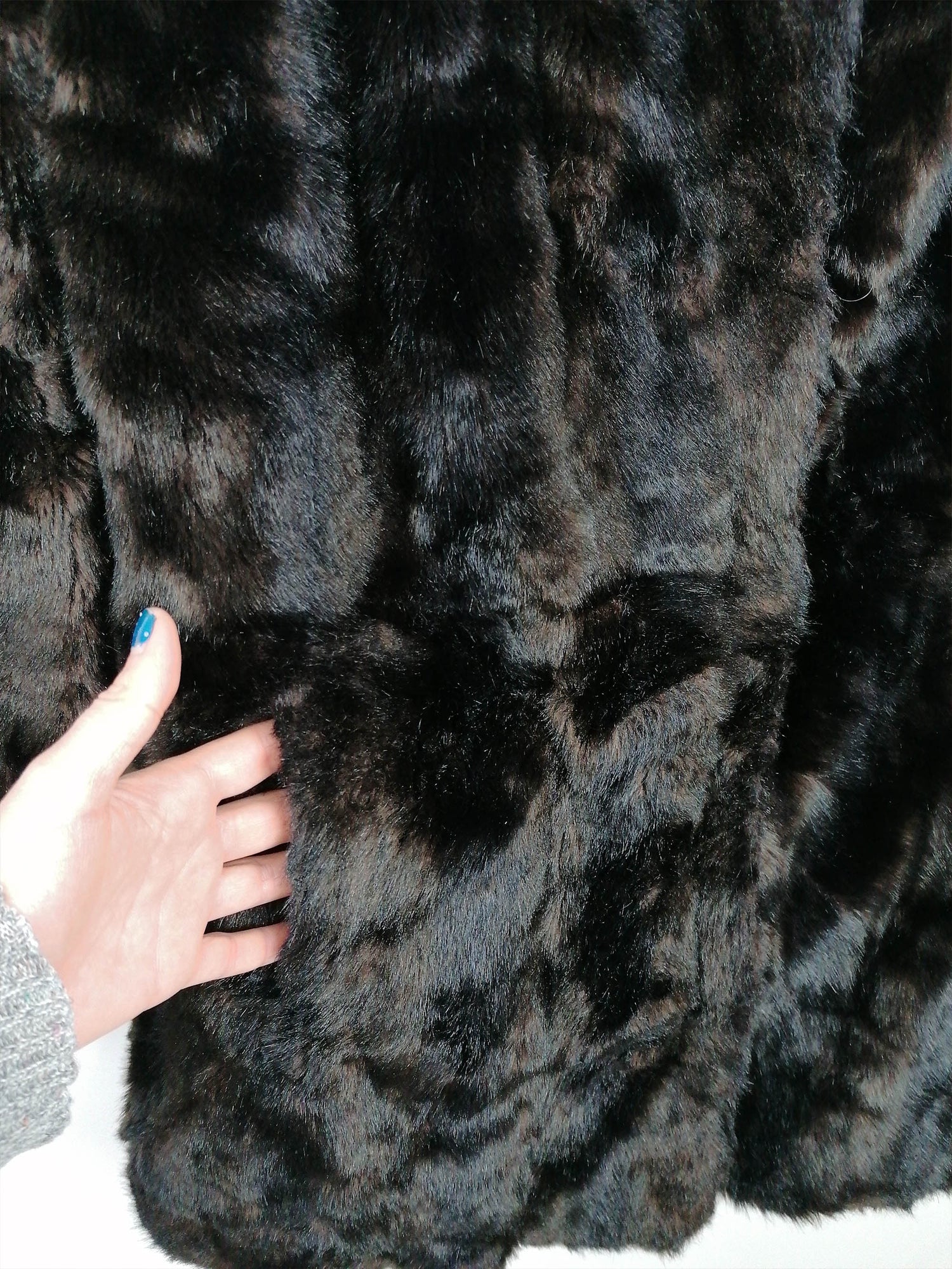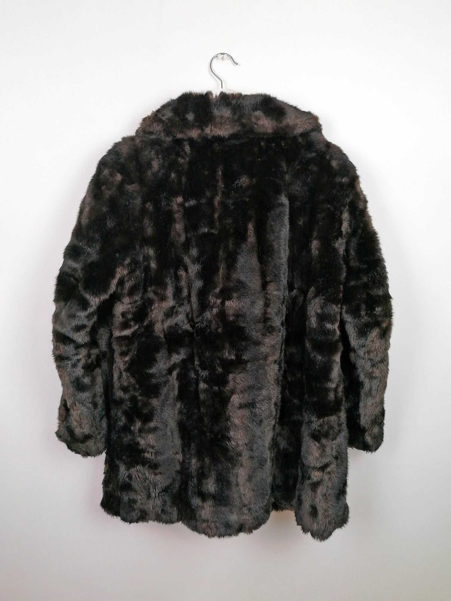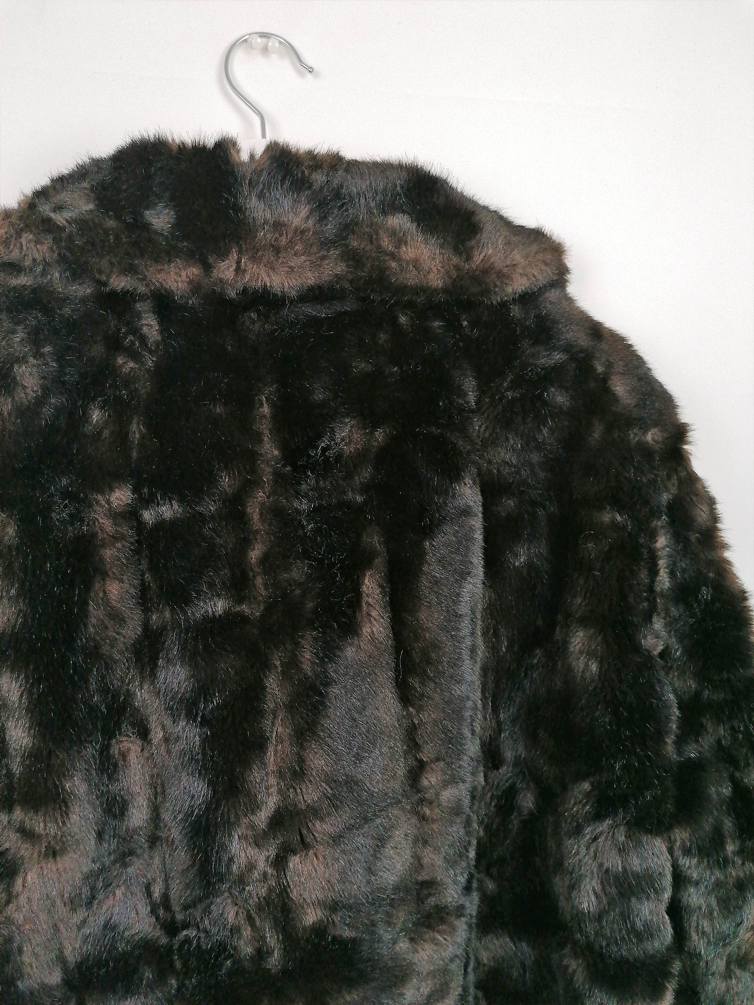 Stunning vintage 80's 90's faux fur coat, dark brown, hook-and-eye closure.